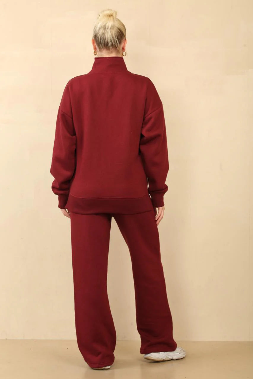 1/2 Zip Top & Jogger Fleece Co-Ord Burgundy