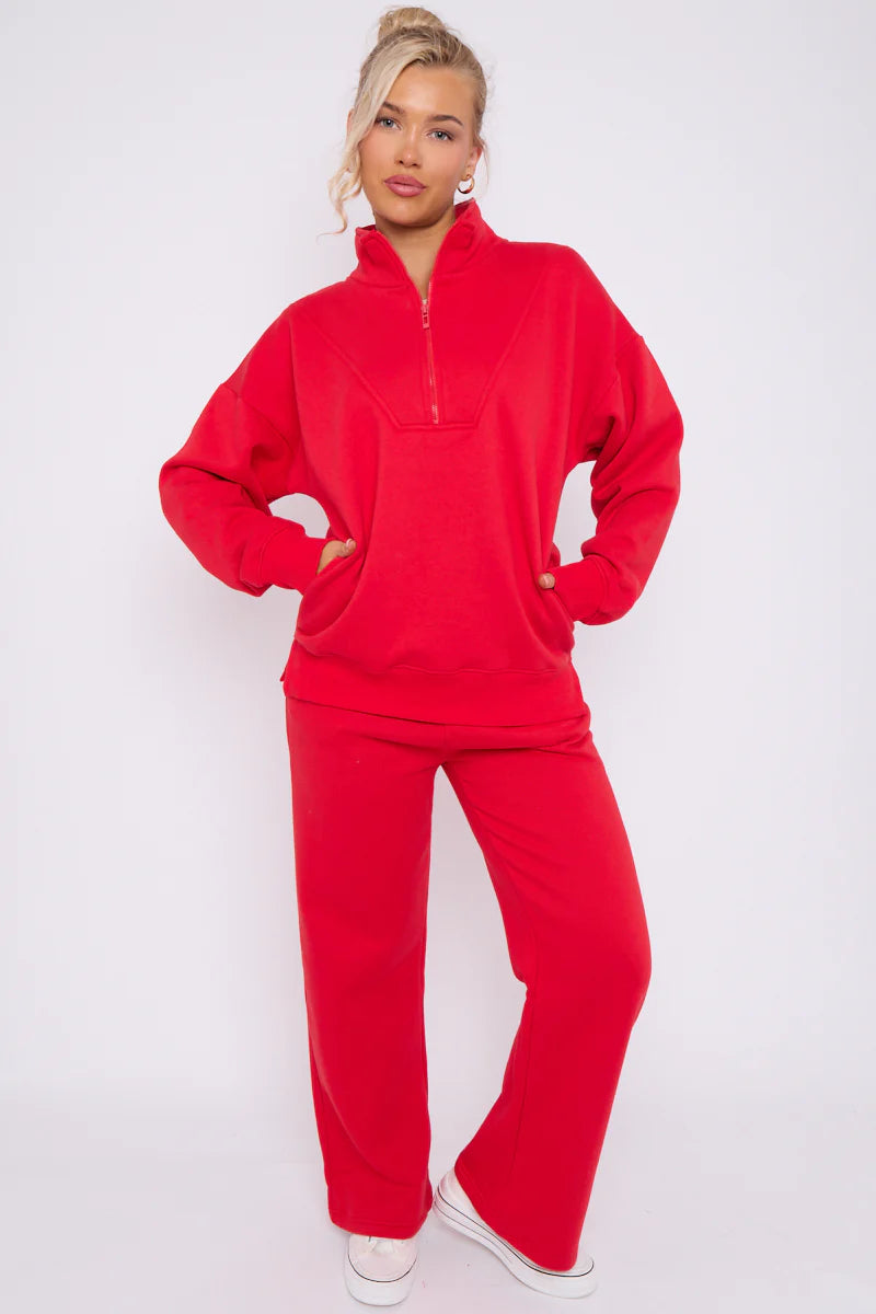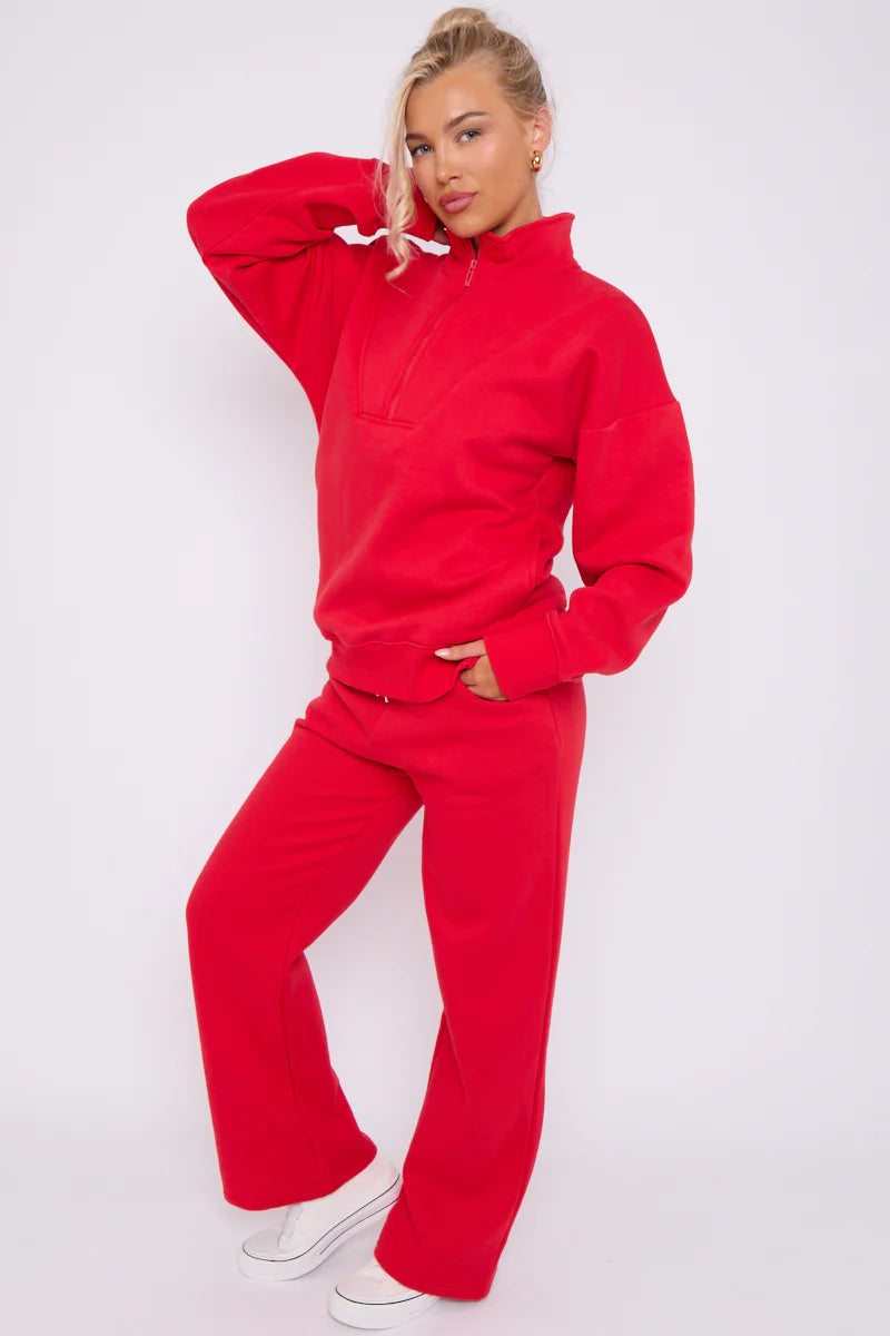 1/2 Zip Top & Jogger Fleece Co-Ord Red