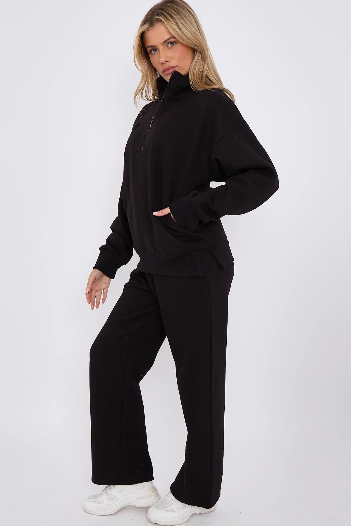 1/2 Zip Top & Jogger Fleece Co-Ord Black