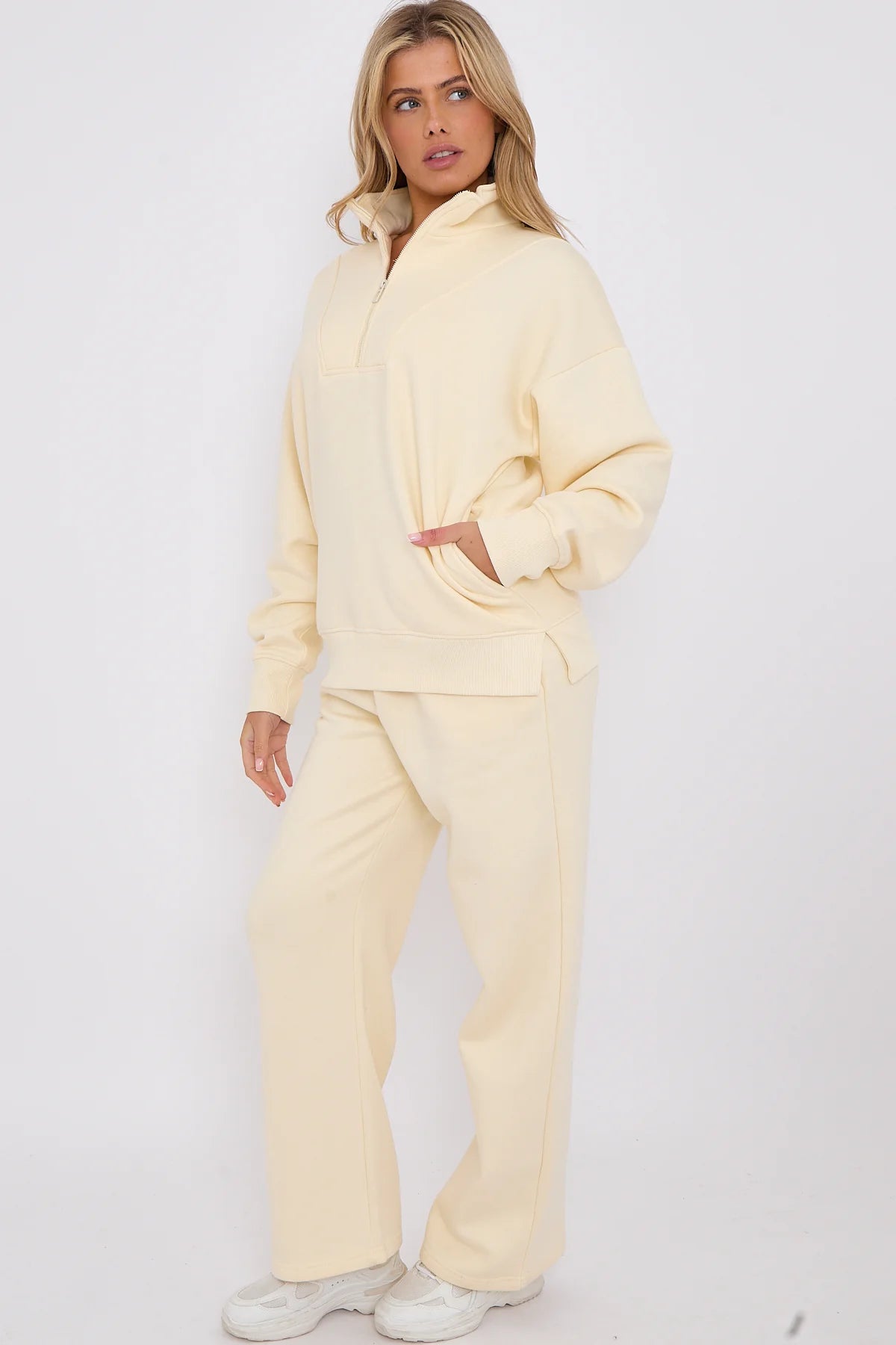 1/2 Zip Top & Jogger Fleece Co-Ord Cream