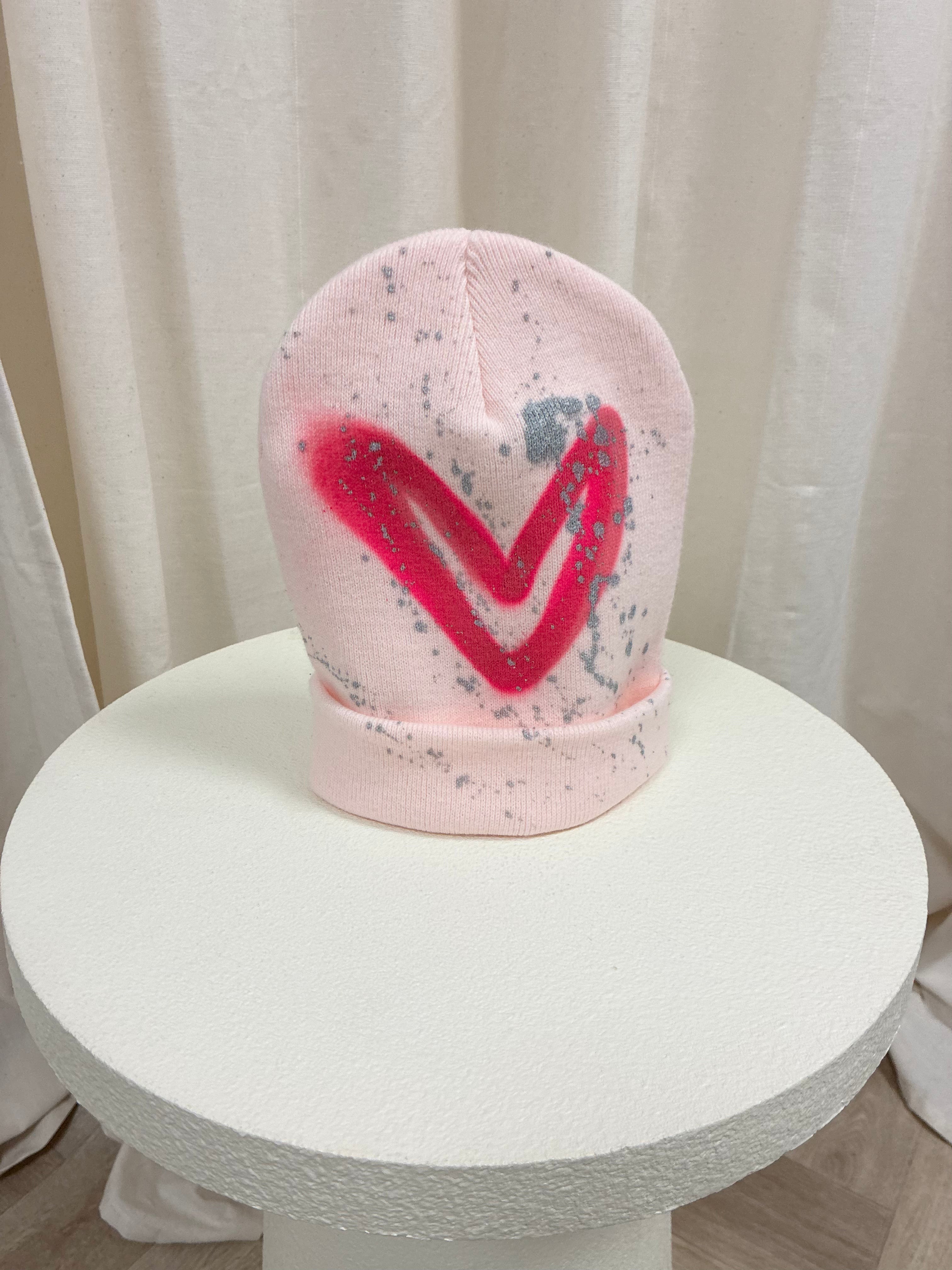 Hot Pink Heart Spray Painted Pink Hat