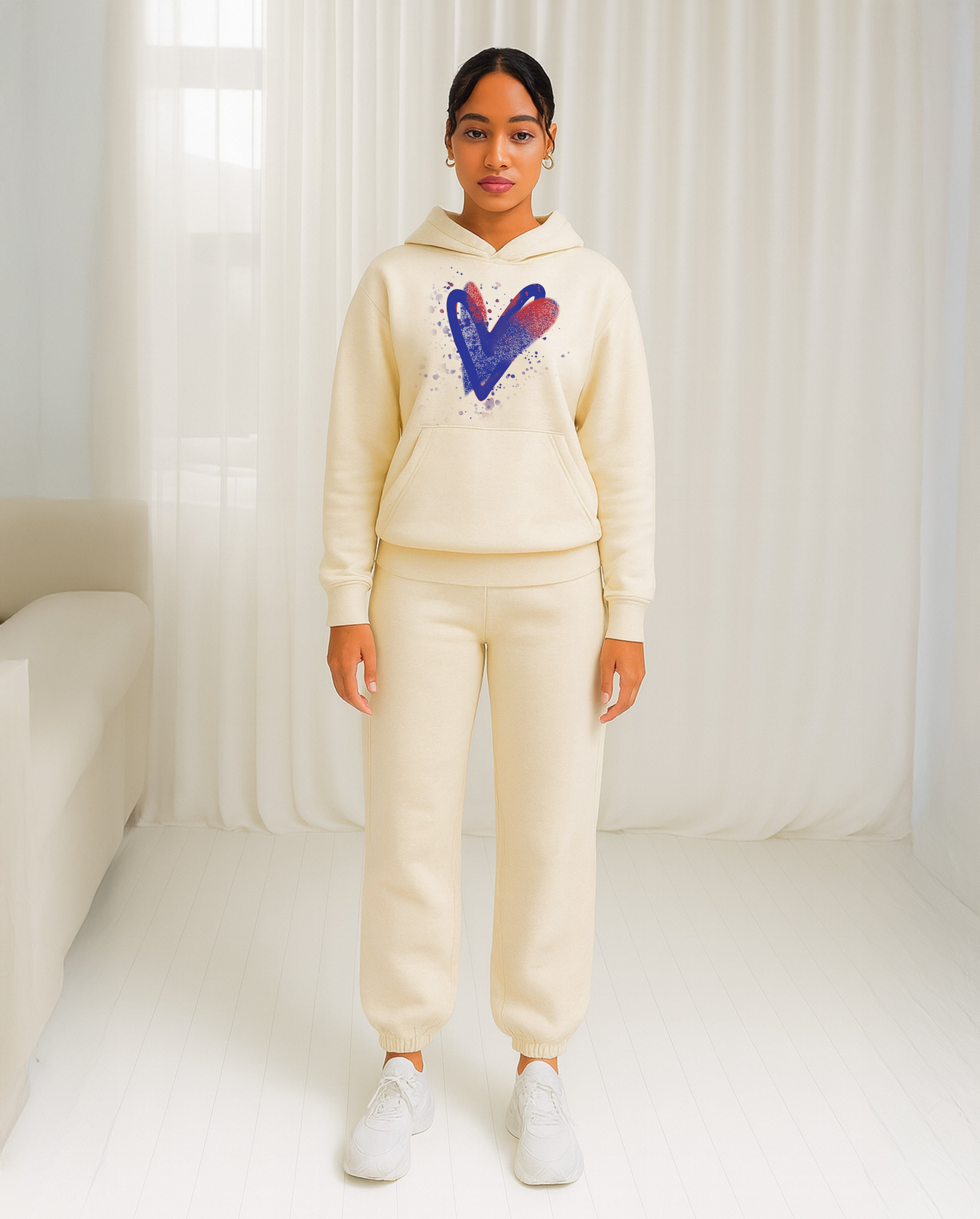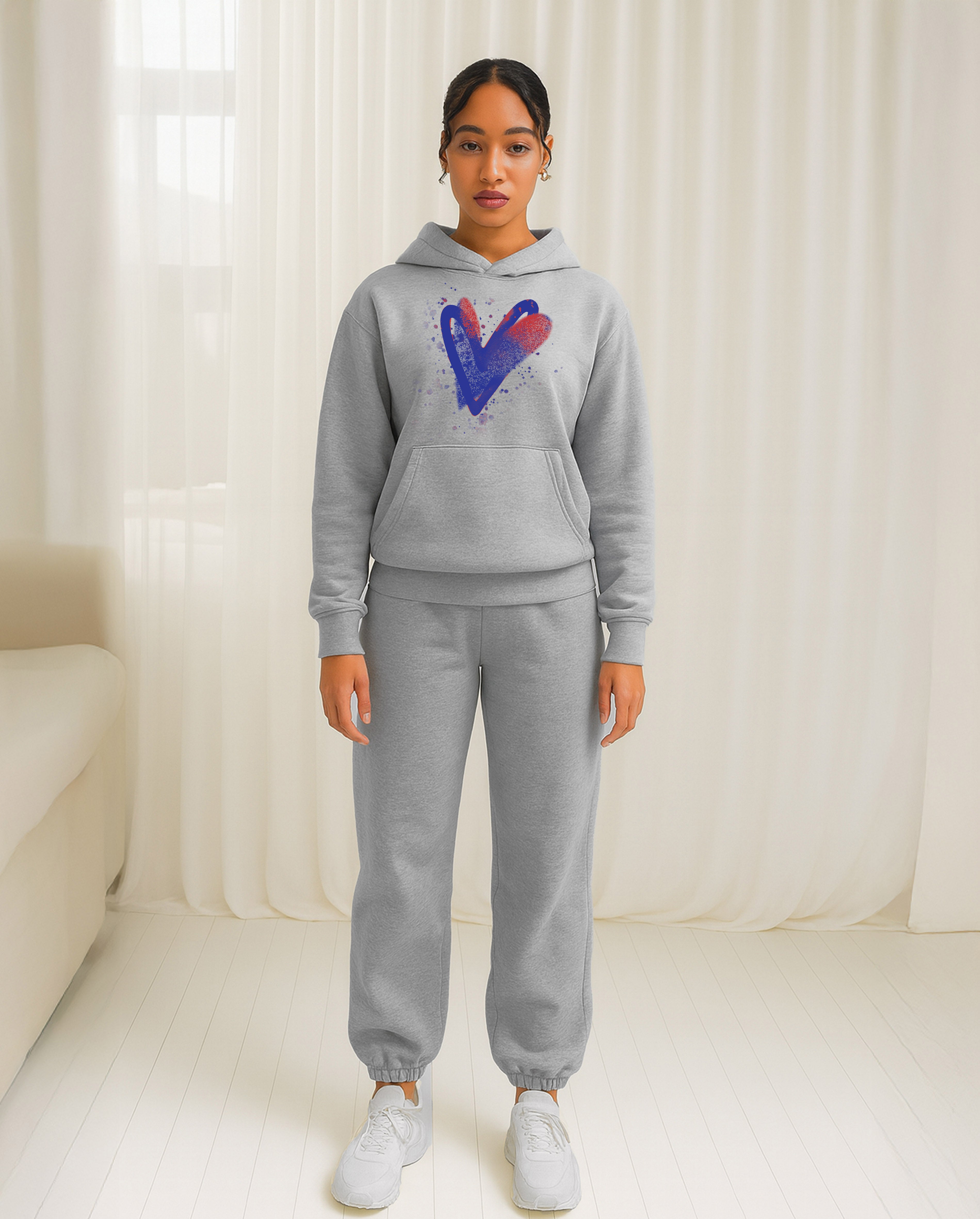 Blue/Red Scattered Hearts Printed Hooded Tracksuit Adult