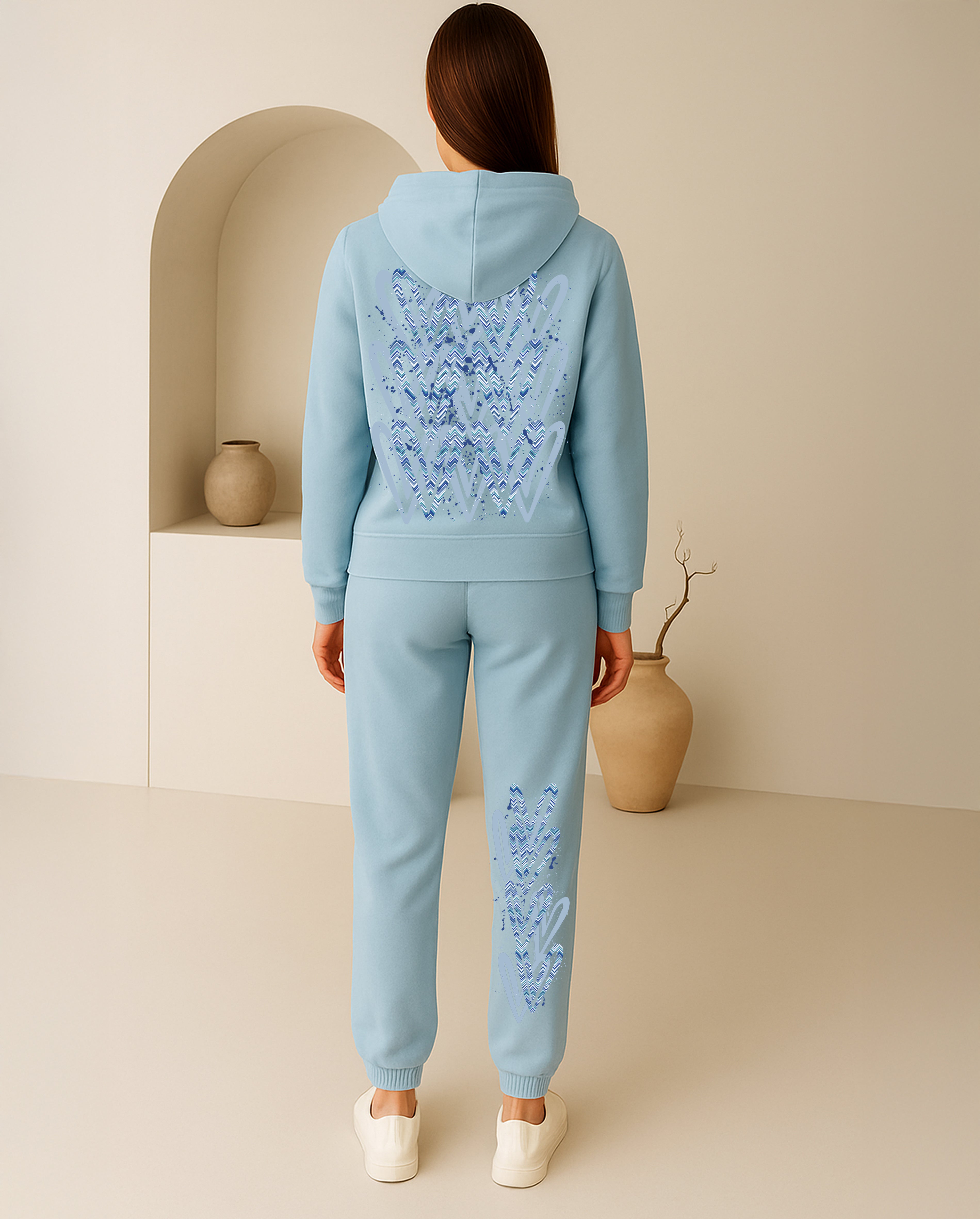 Blue Zig Zag Hearts Printed Hooded Tracksuit Adult
