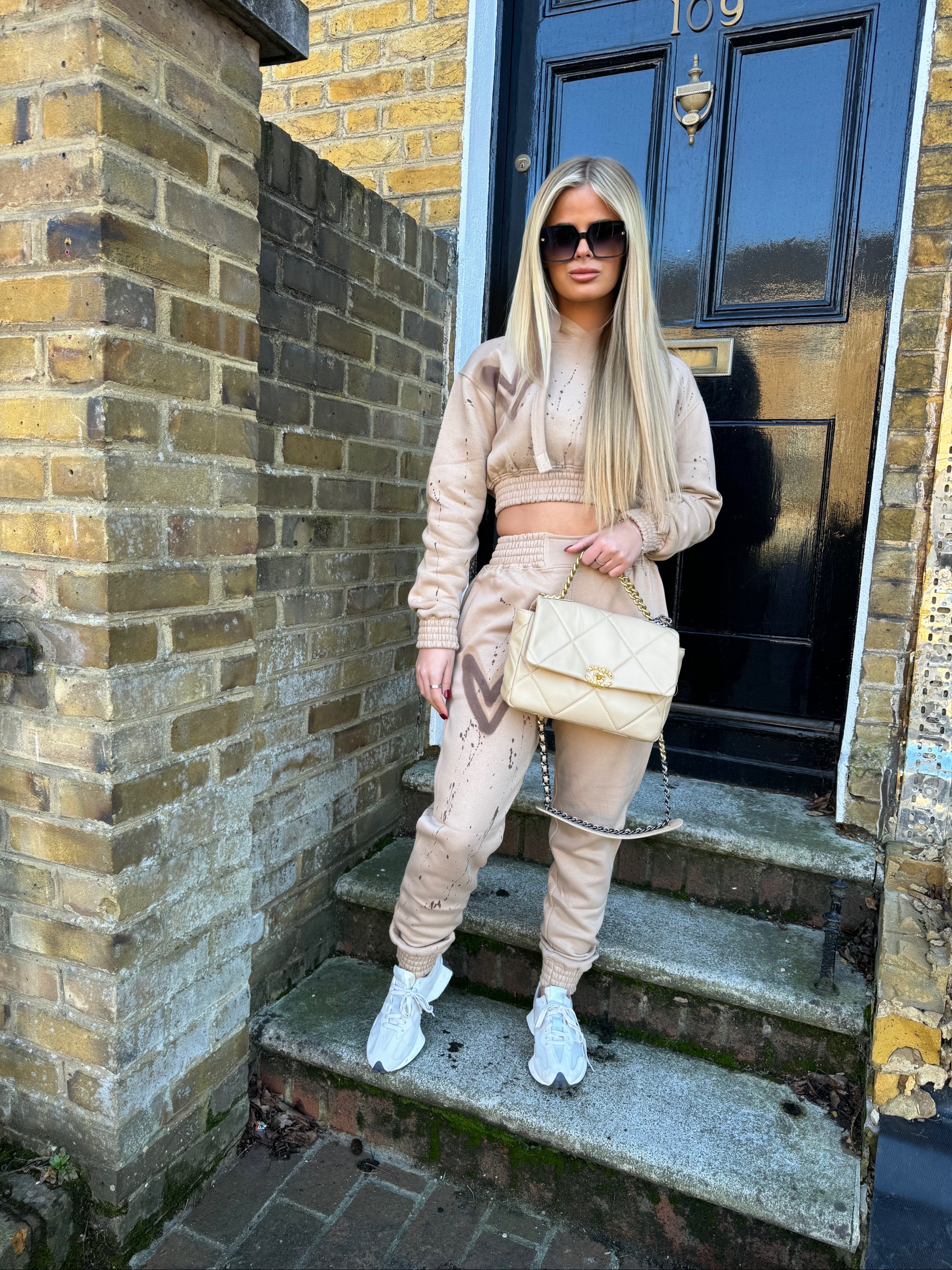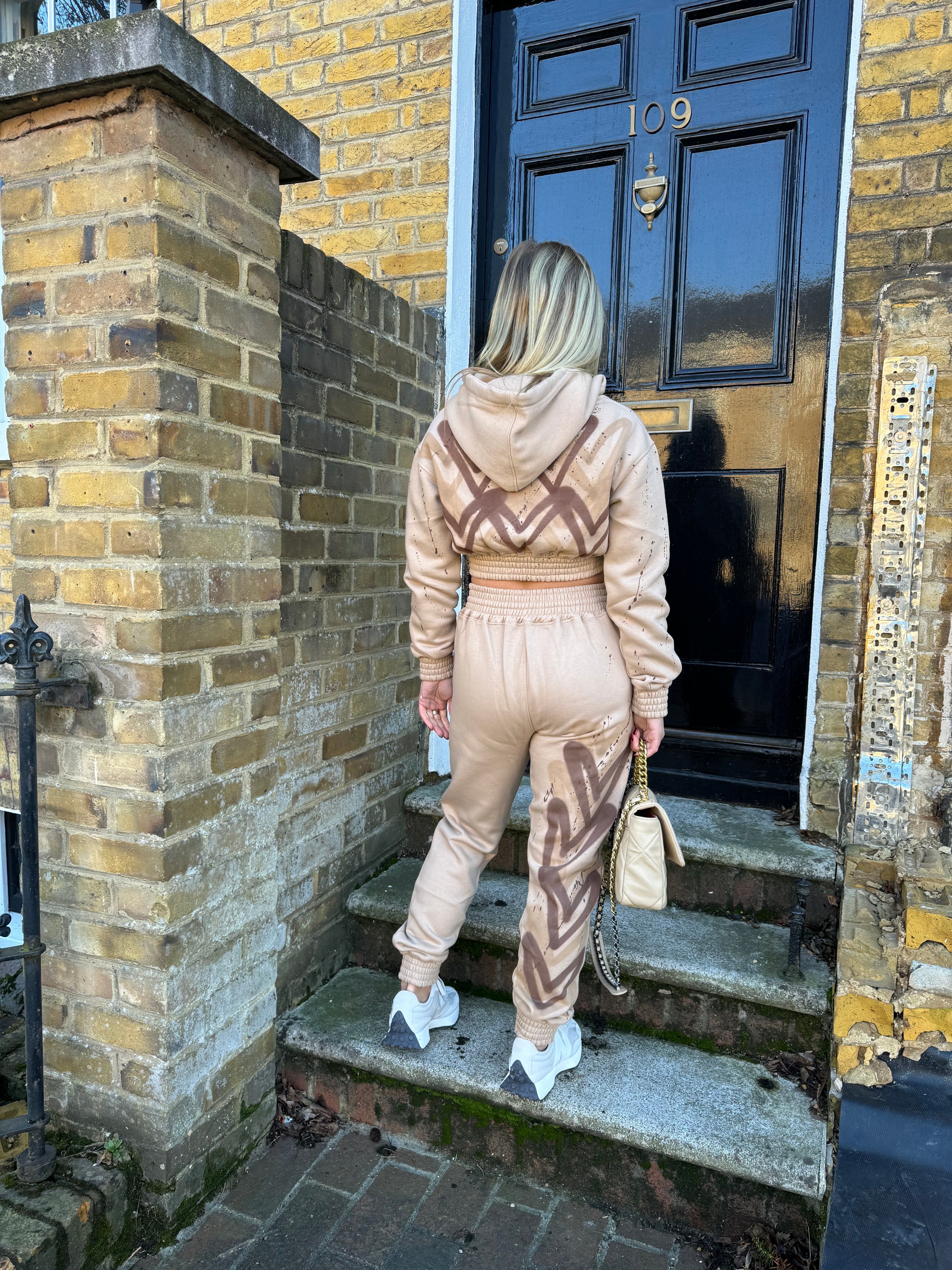 Brown Hearts Spray Painted Cropped Tracksuit Adult