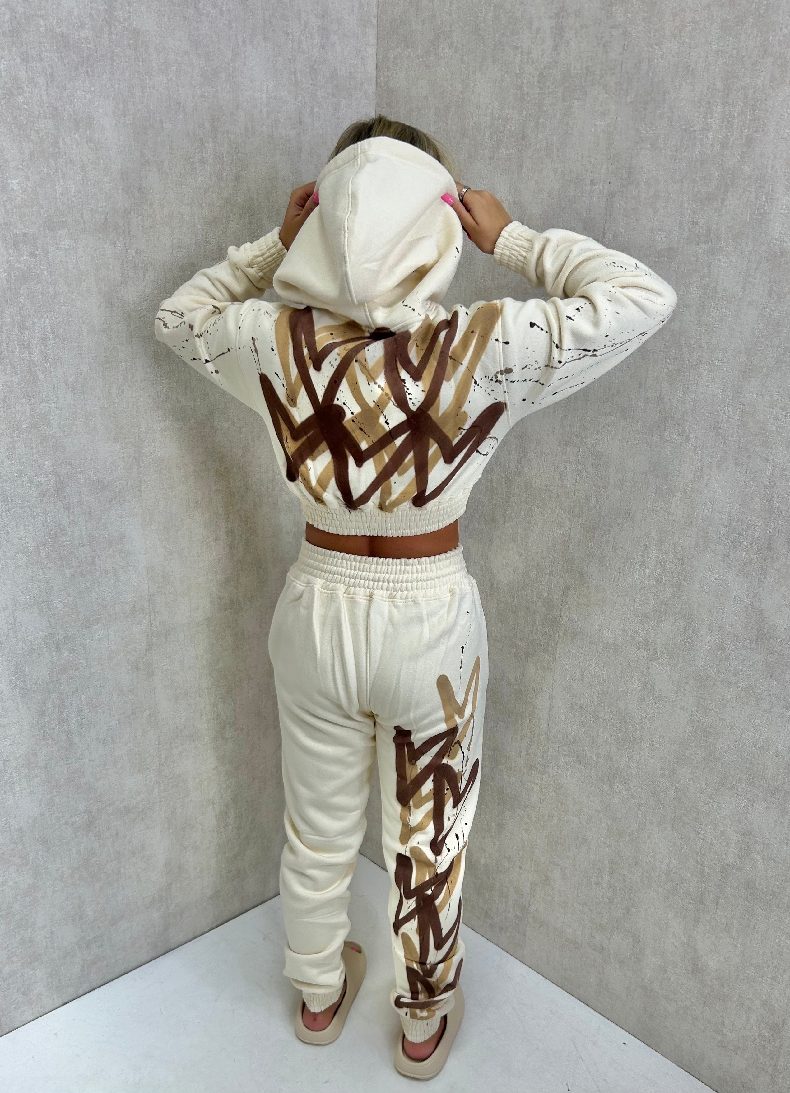 Brown Hearts Spray Painted Cropped Tracksuit Kids