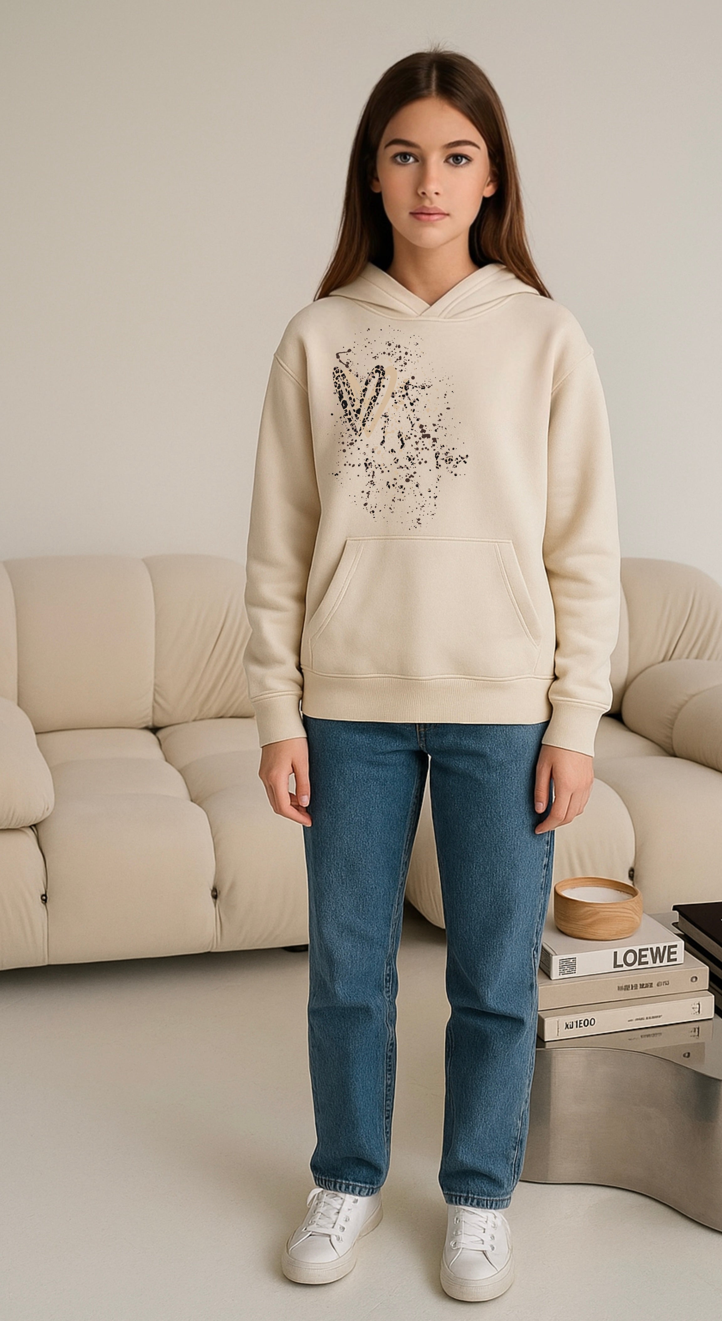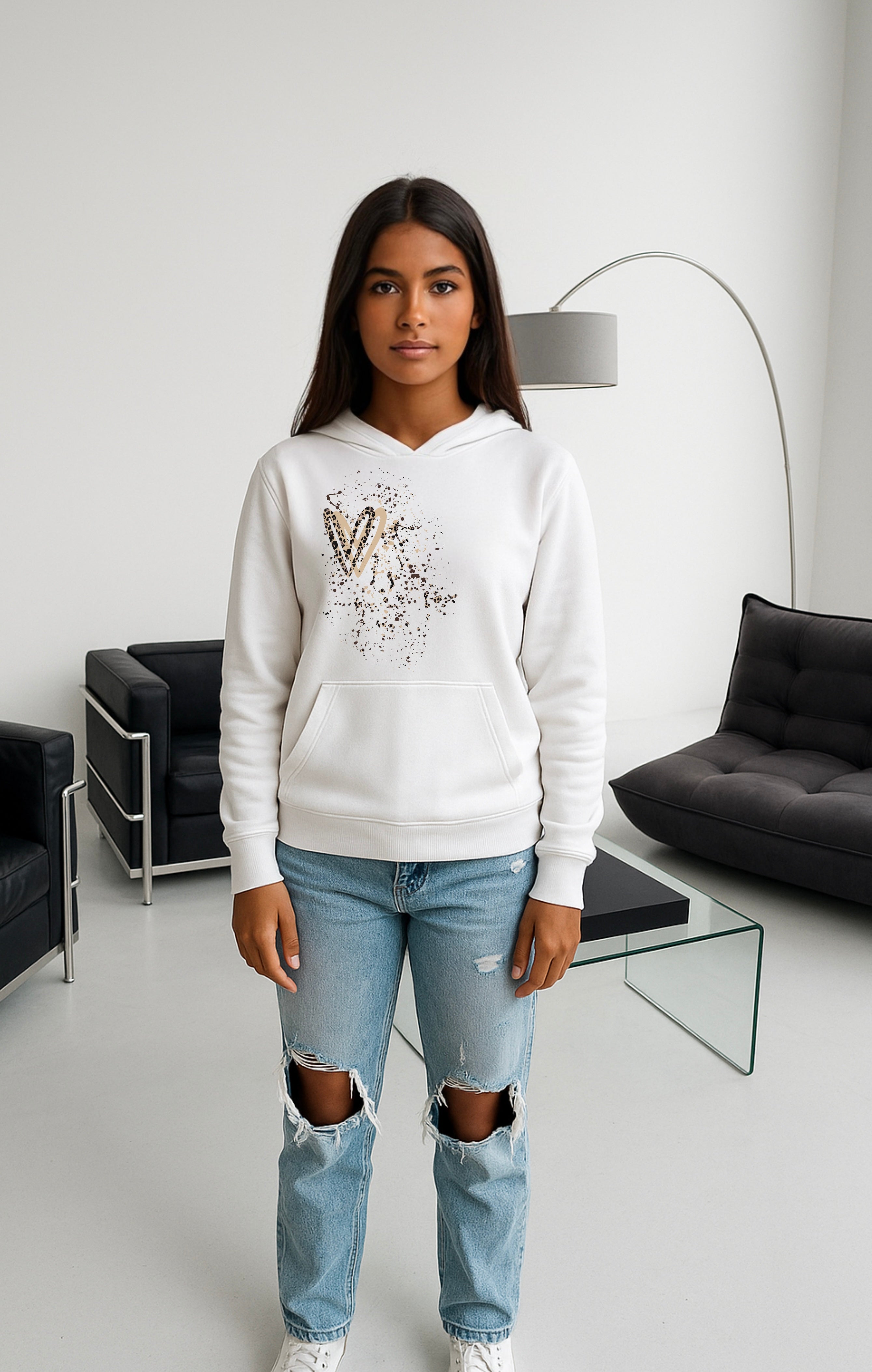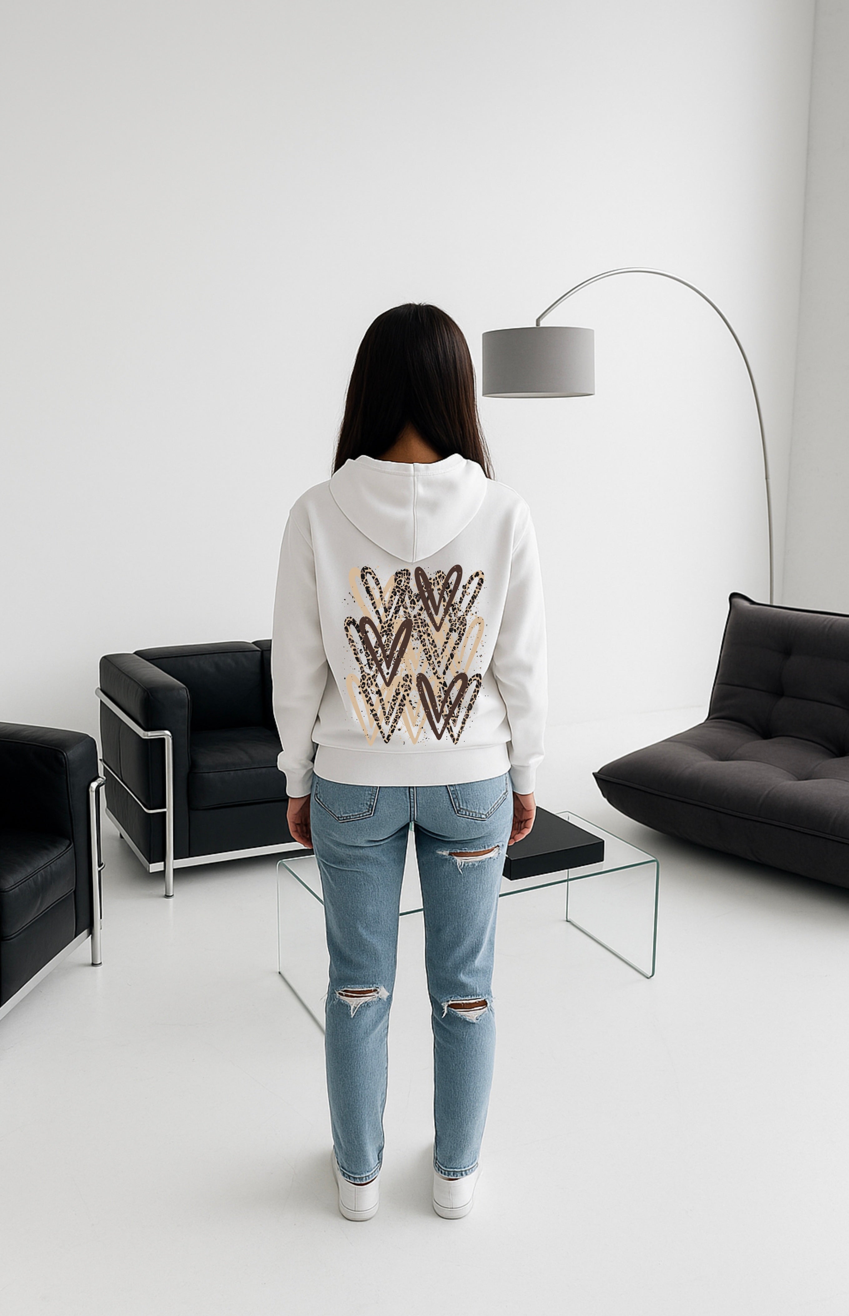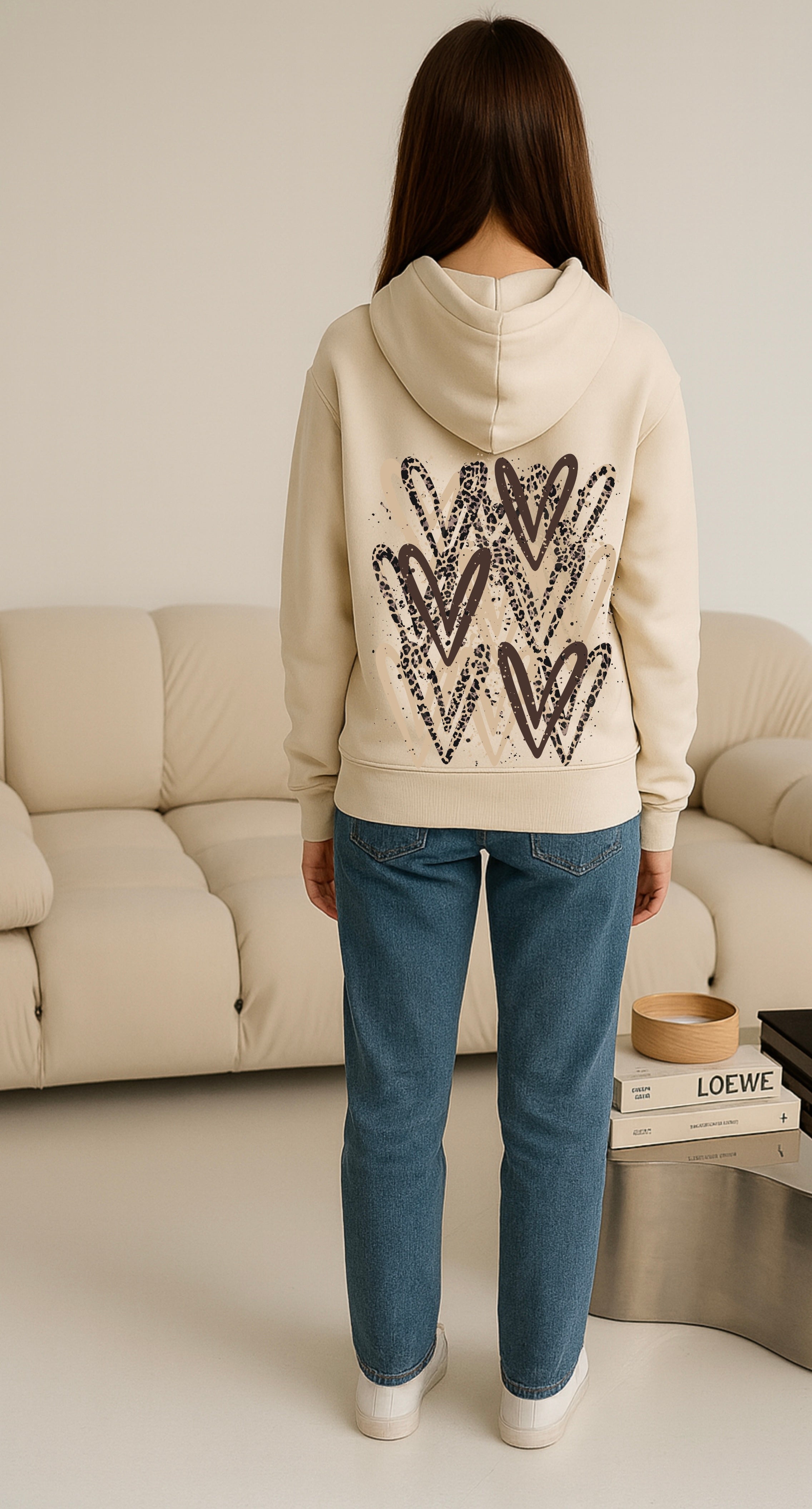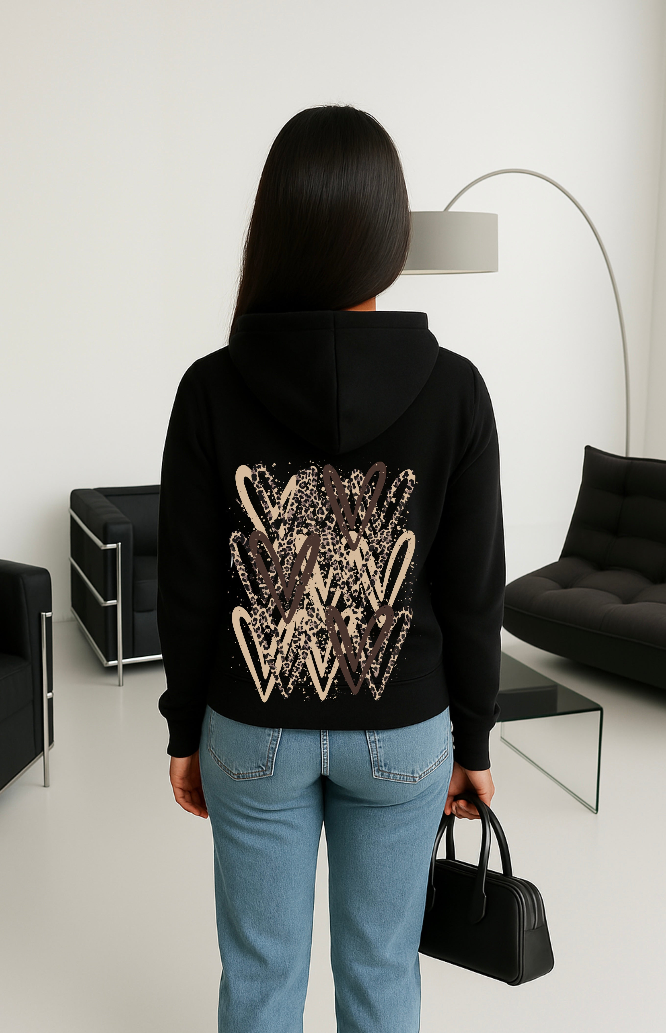 Introducing the Miss Runway graffiti Heart Hoodie, a unique and eye-catching addition to your wardrobe. This Hoodie features a one-of-a-kind design that is sure to turn heads. This Hoodie is perfect for those who want to make a statement with their fashion choices.