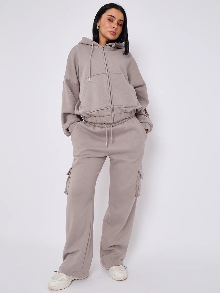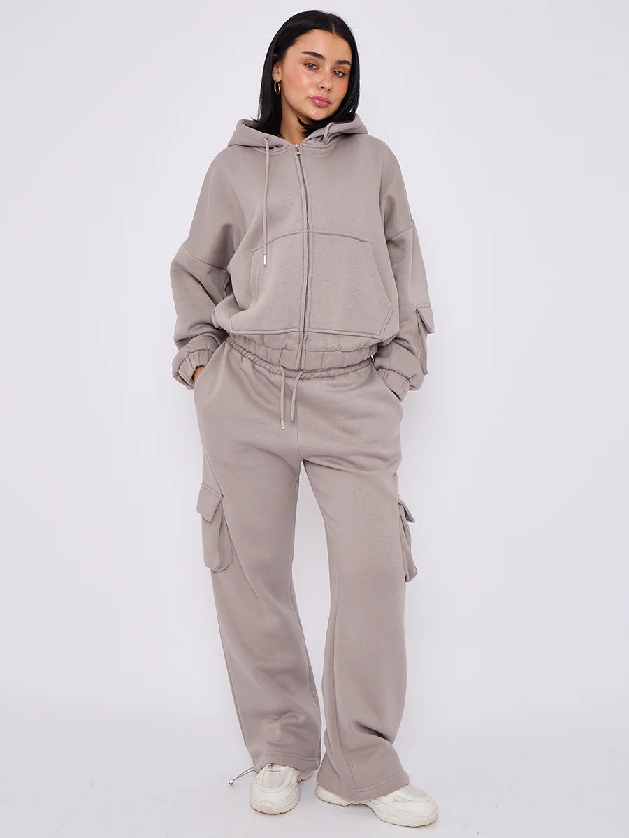 Cargo Style Zip Hooded Tracksuit Dove Grey
