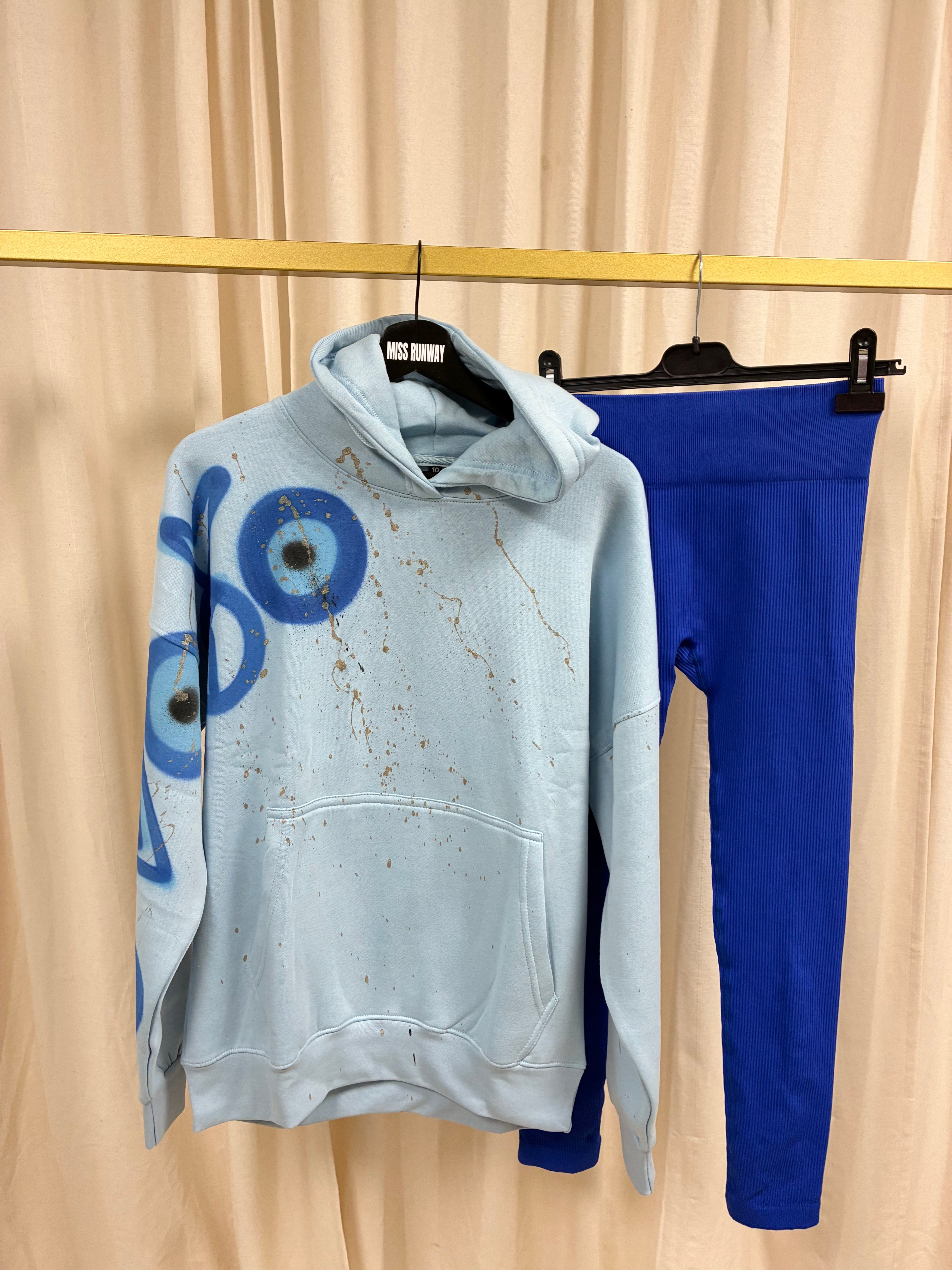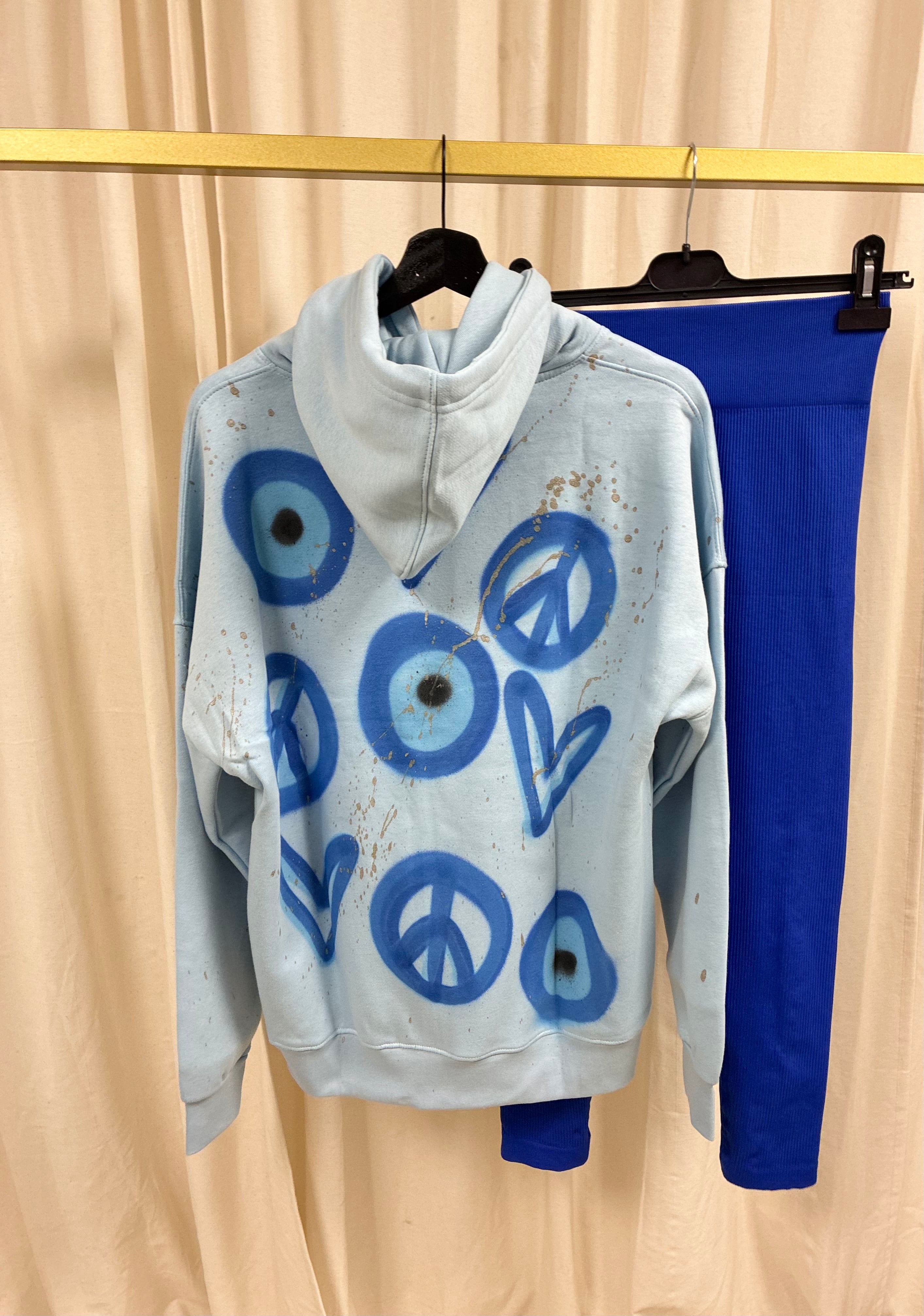 Evil Eye, Peace, Heart Spray Painted Blue Hoodie & Leggings Kids