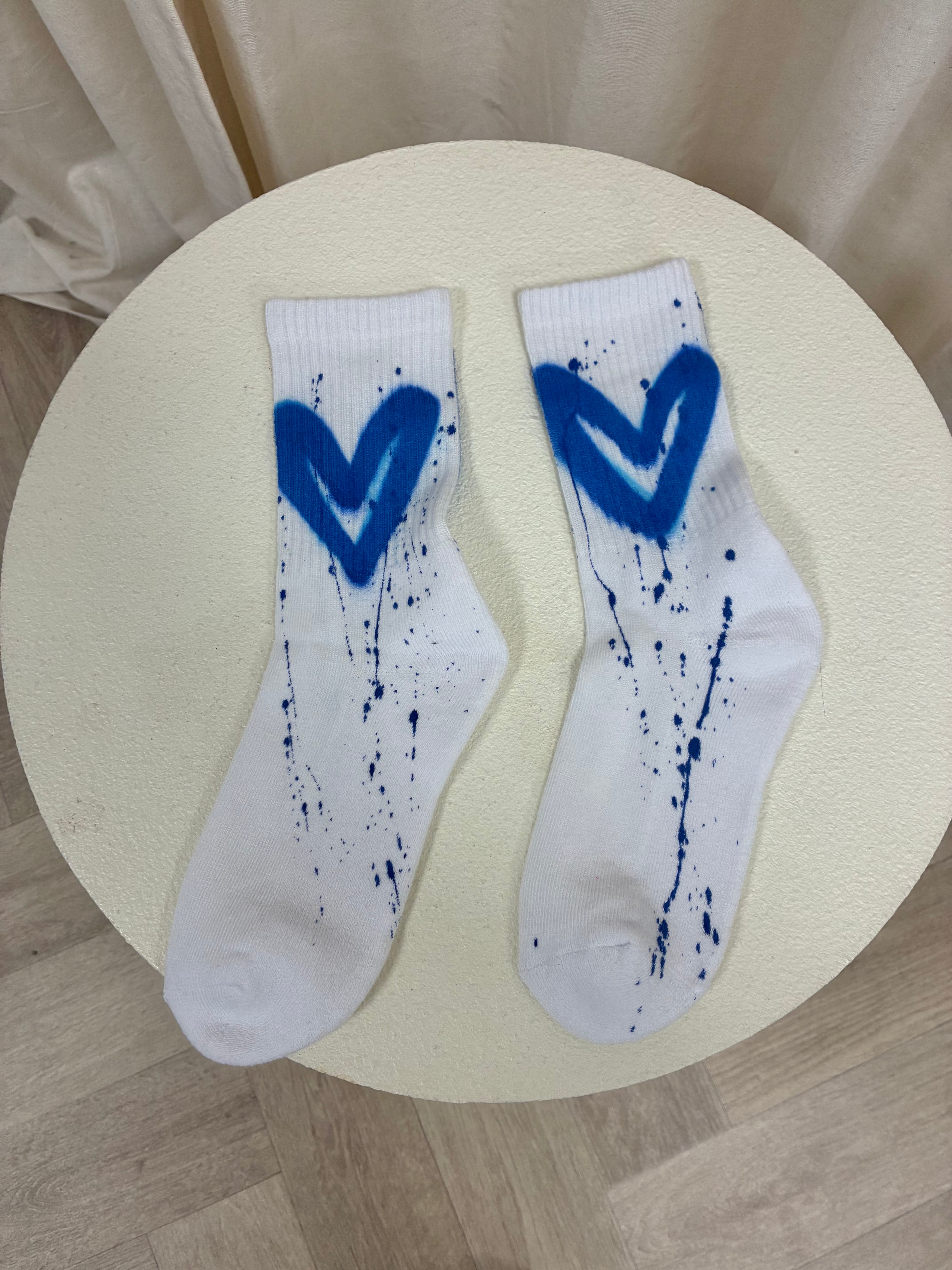 Royal Blue Heart Spray Painted Socks