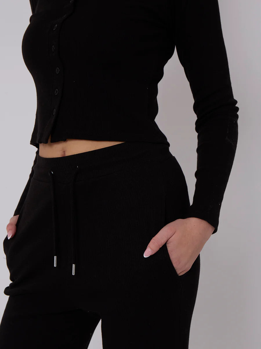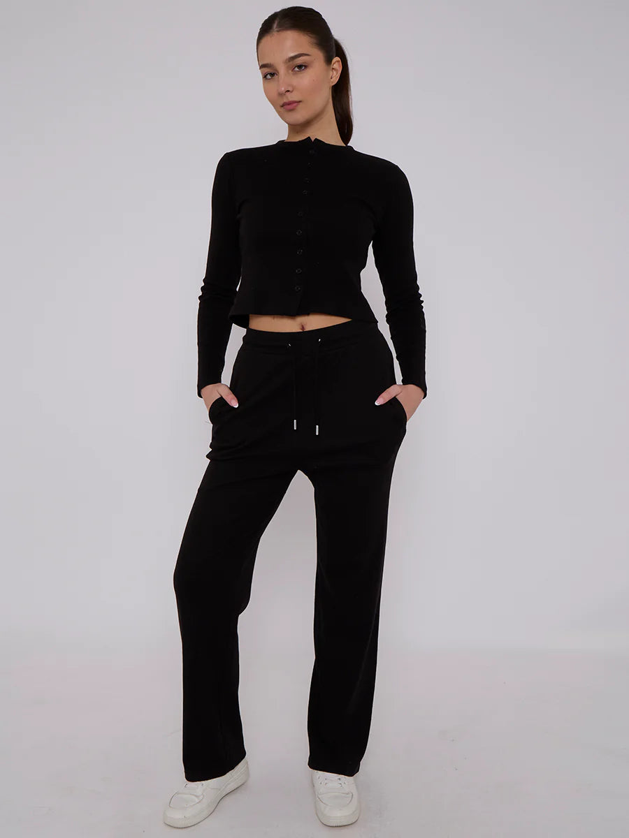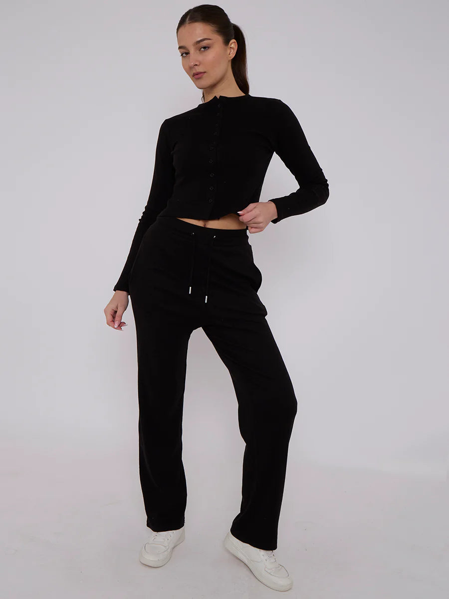 Ribbed Front Button Detail Top & Wide Leg Trouser Co-ord Ribbed Button Detail Crop Top Long Sleeves Wide Leg Trousers...