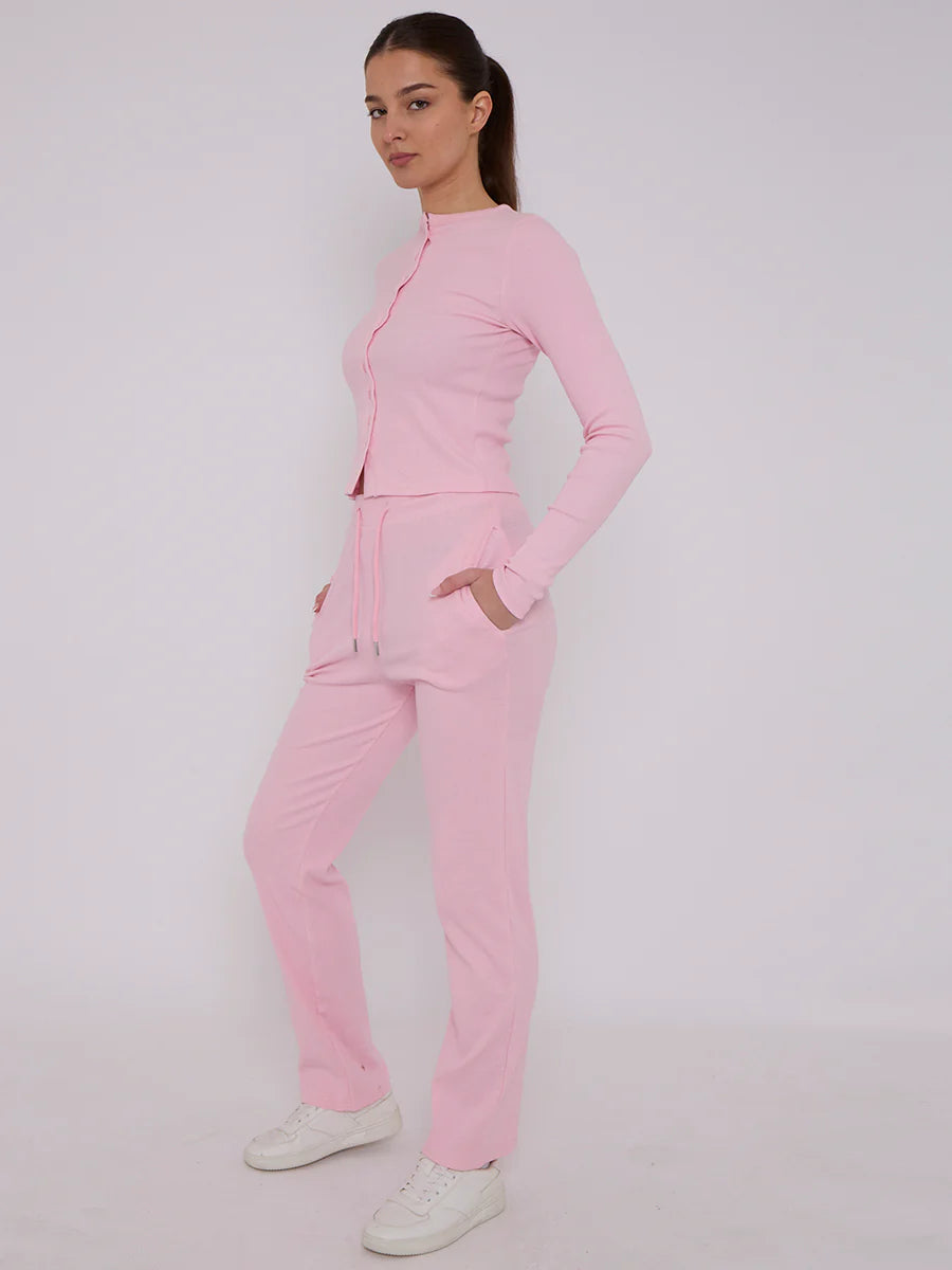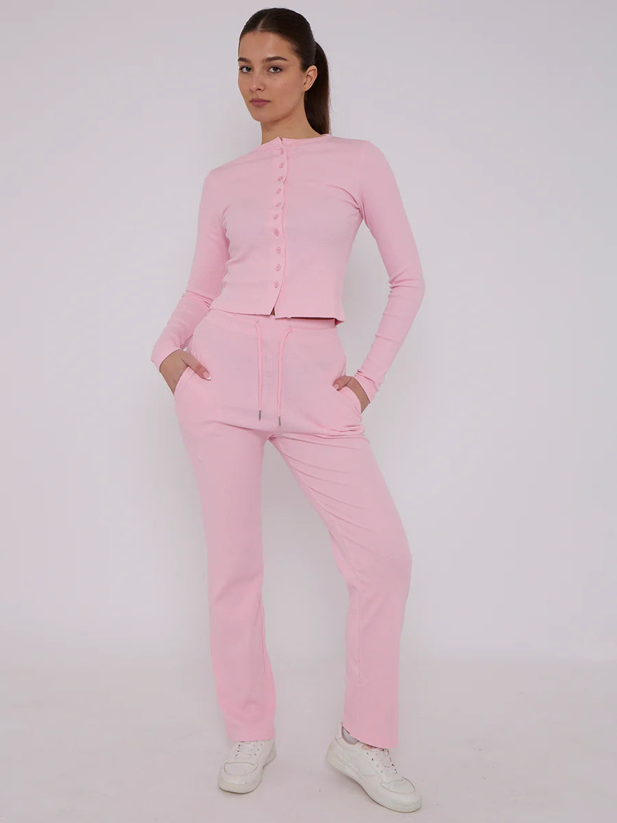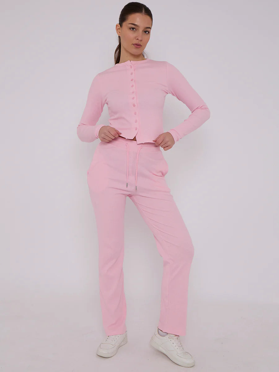 Ribbed Front Button Detail Top & Wide Leg Trouser Co-ord Ribbed Button Detail Crop Top Long Sleeves Wide Leg Trousers...