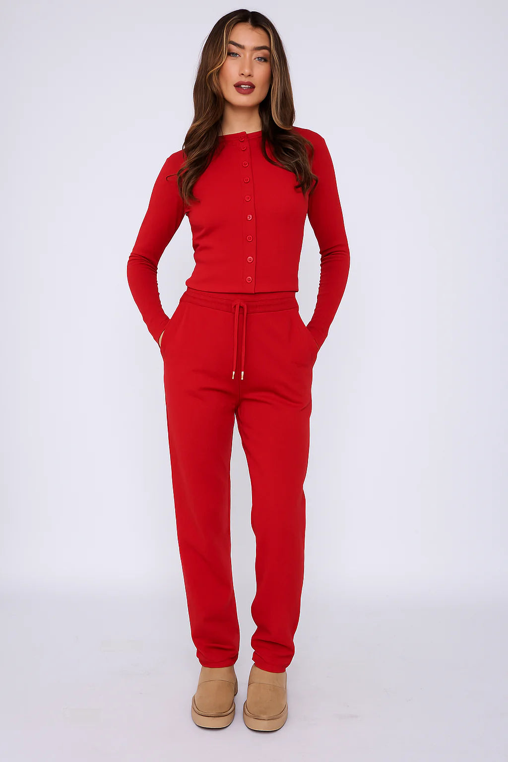 Ribbed Front Button Detail Top & Wide Leg Trouser Co-ord Ribbed Button Detail Crop Top Long Sleeves Wide Leg Trousers...