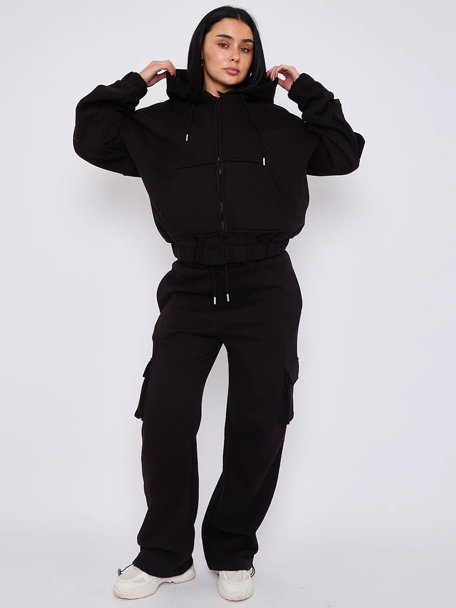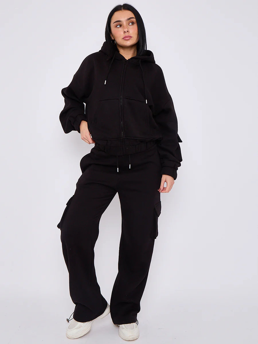 Cargo Style Zip Hoodie Set Cargo Style Zip Hoodie Functional Drawstring Hood Straight Leg Jogger Elasticated Waist With Functional Drawstring...