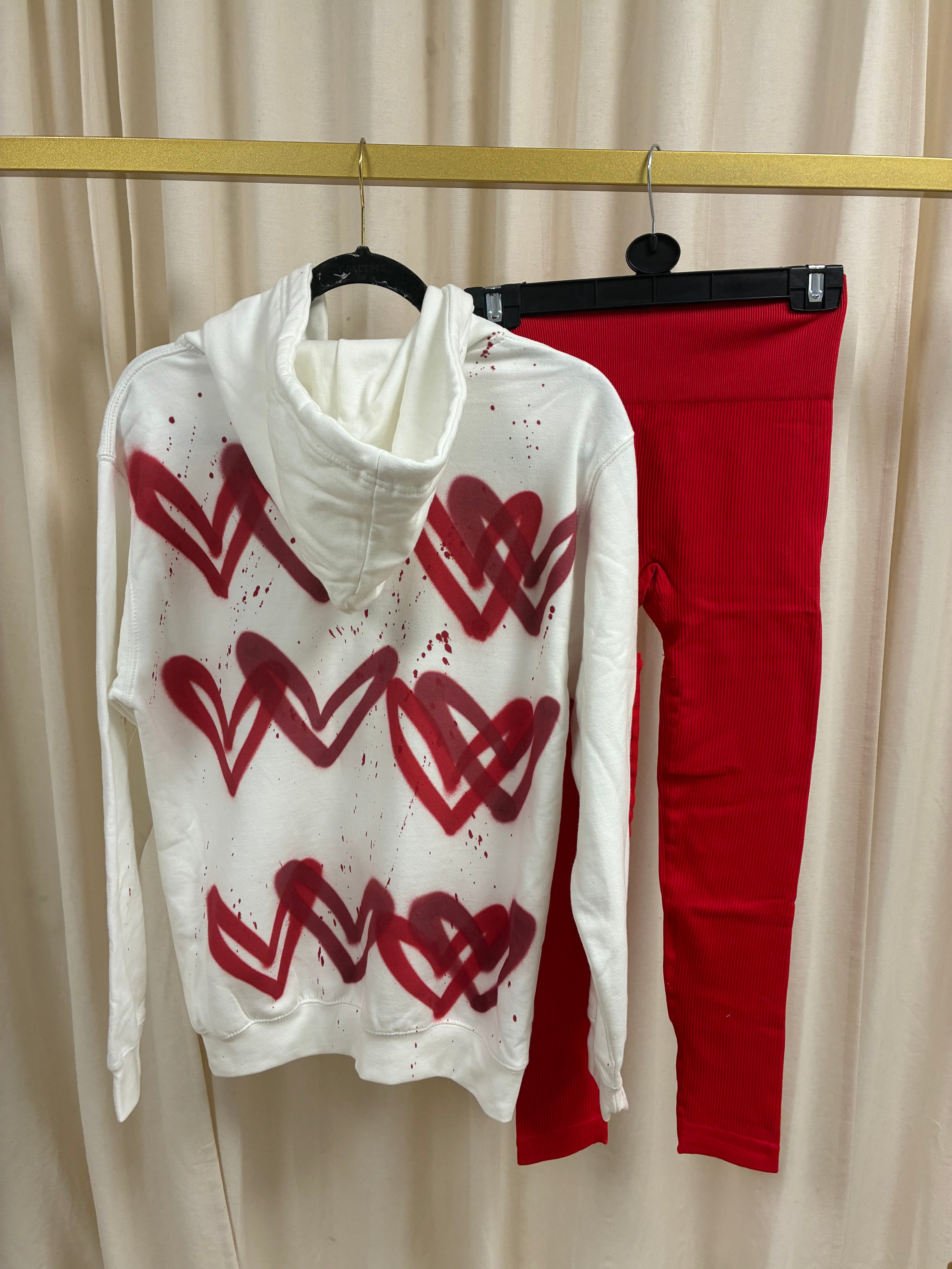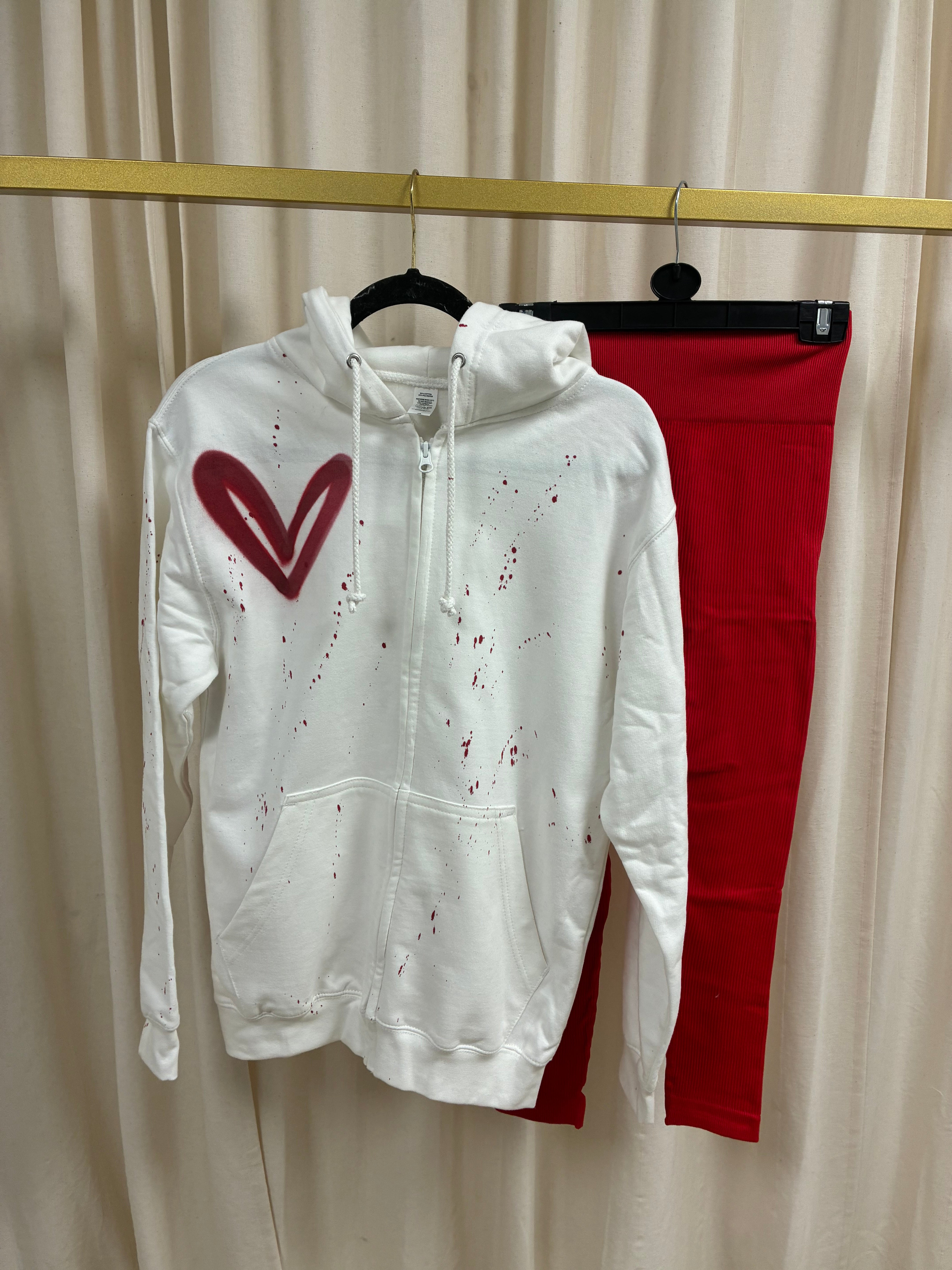Red Heart Spray Painted Zip Up Hoodie & Leggings Kids