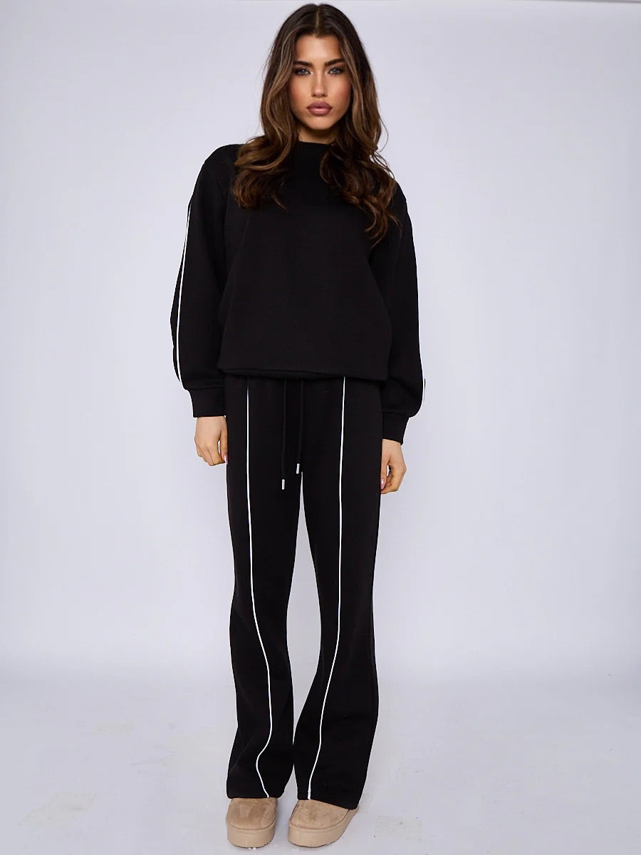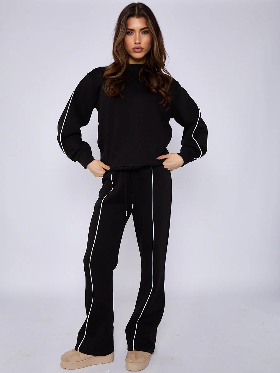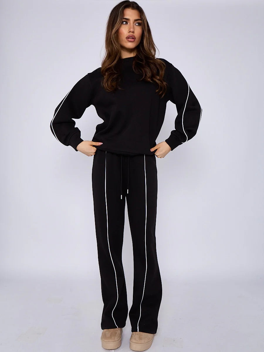 Sleeve Piping Sweatshirt & Jogger Set Long Sleeve Round Neck Piping Detail Wide Leg Elasticated Waist Co-ordinate 50% Cotton &...
