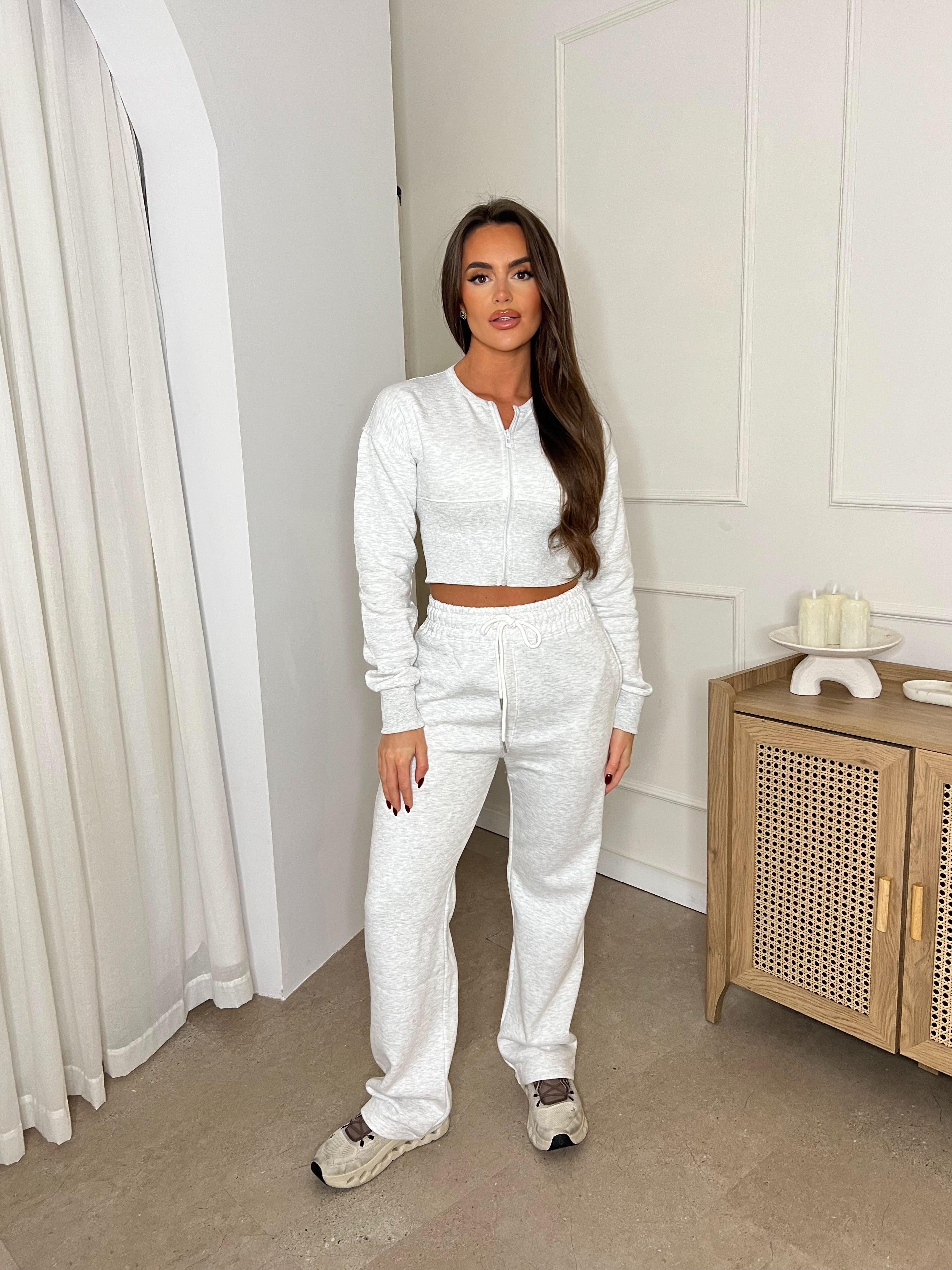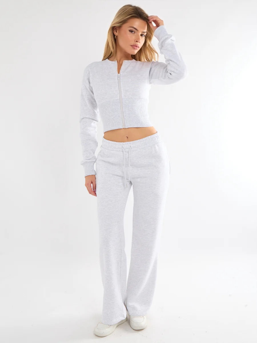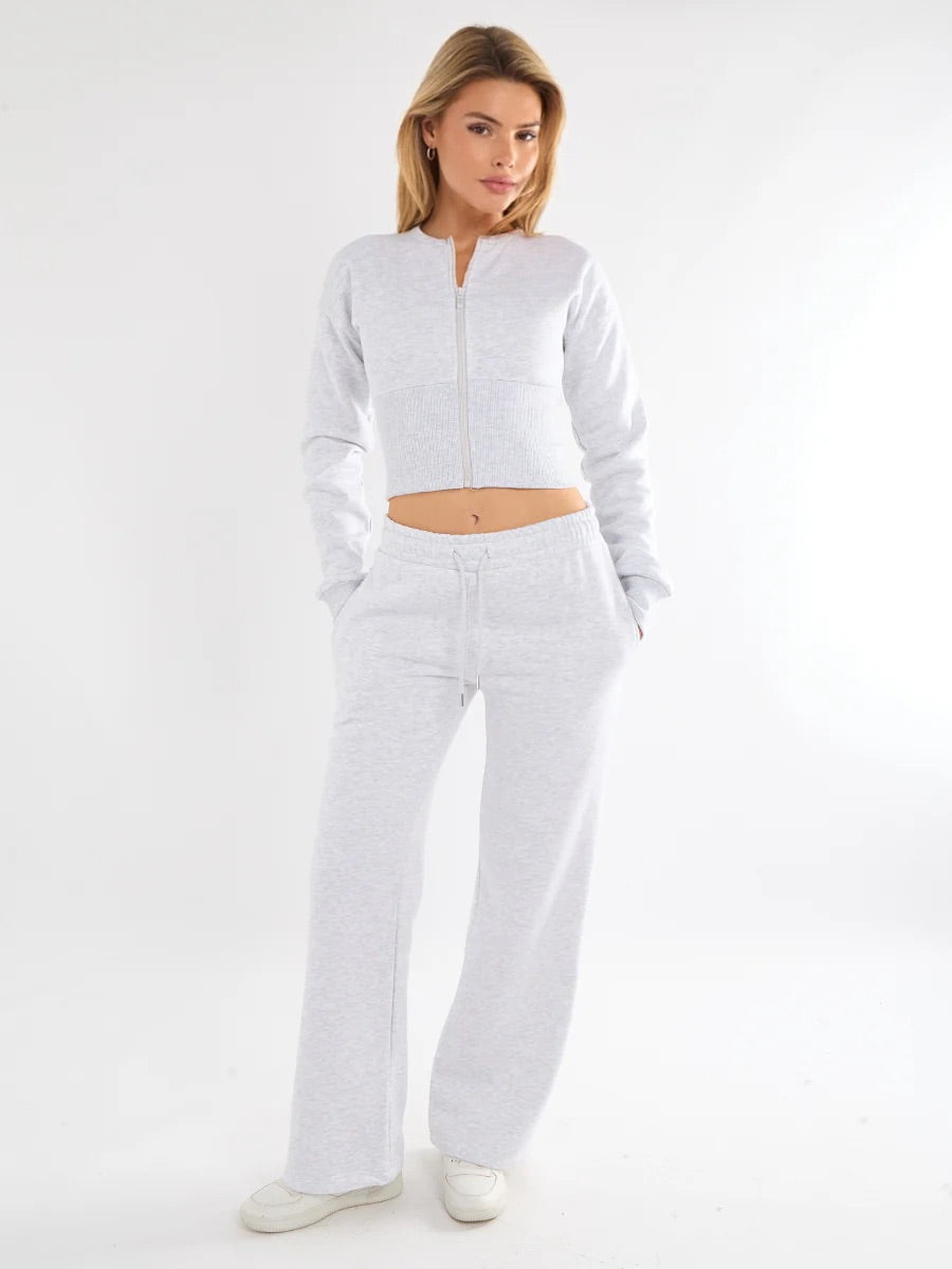 Cropped Zip Up Sweatshirt & Wide Leg Trouser Tracksuit Ash Grey