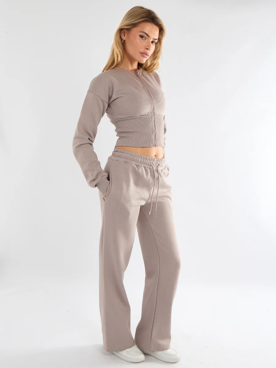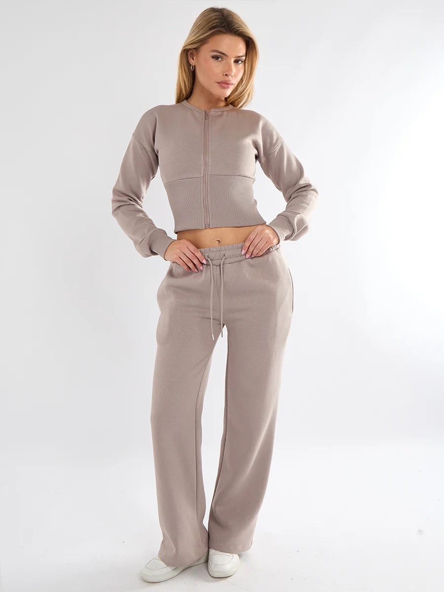 Cropped Zip Up Sweatshirt & Wide Leg Trouser Tracksuit Dove Grey