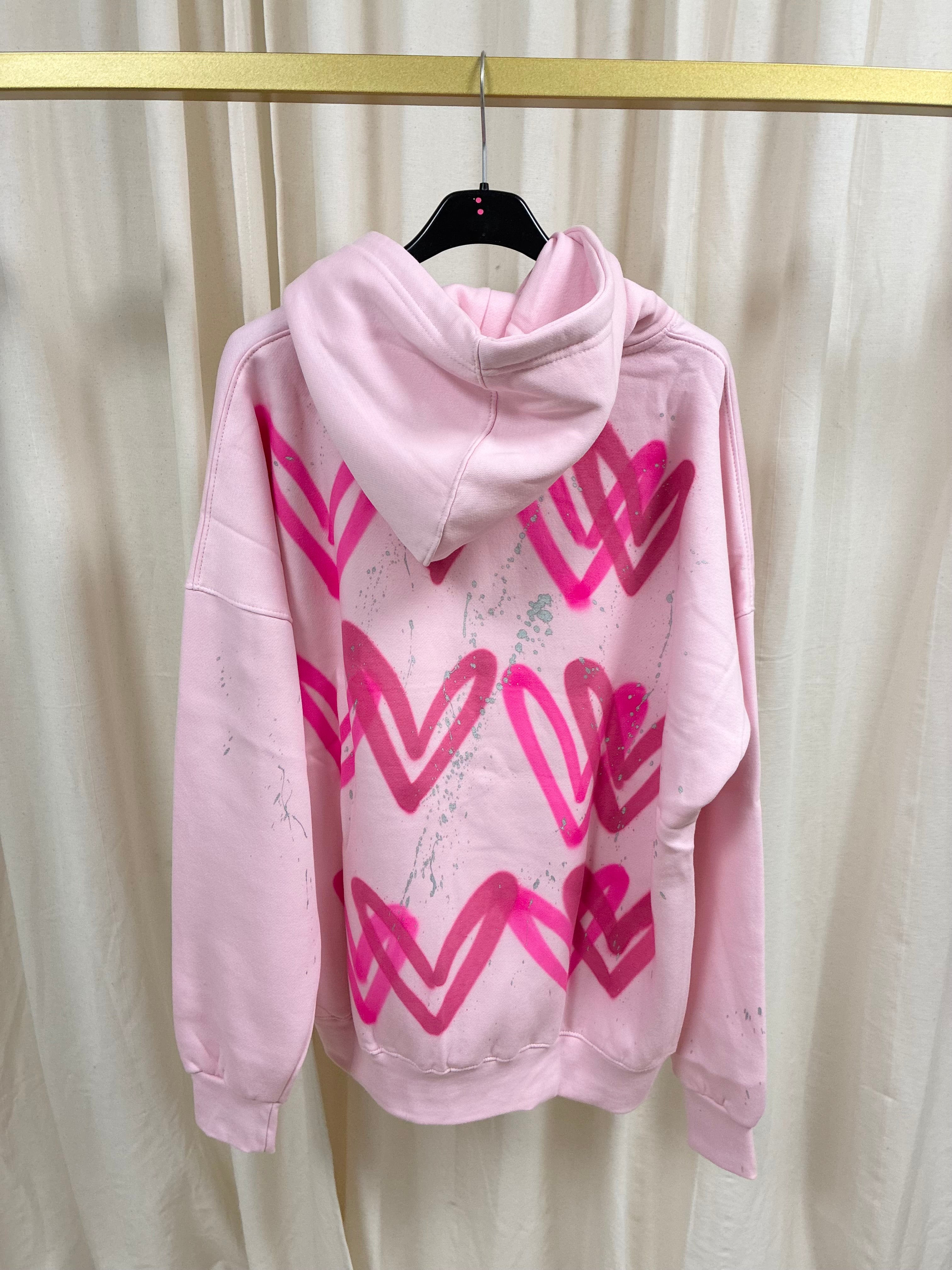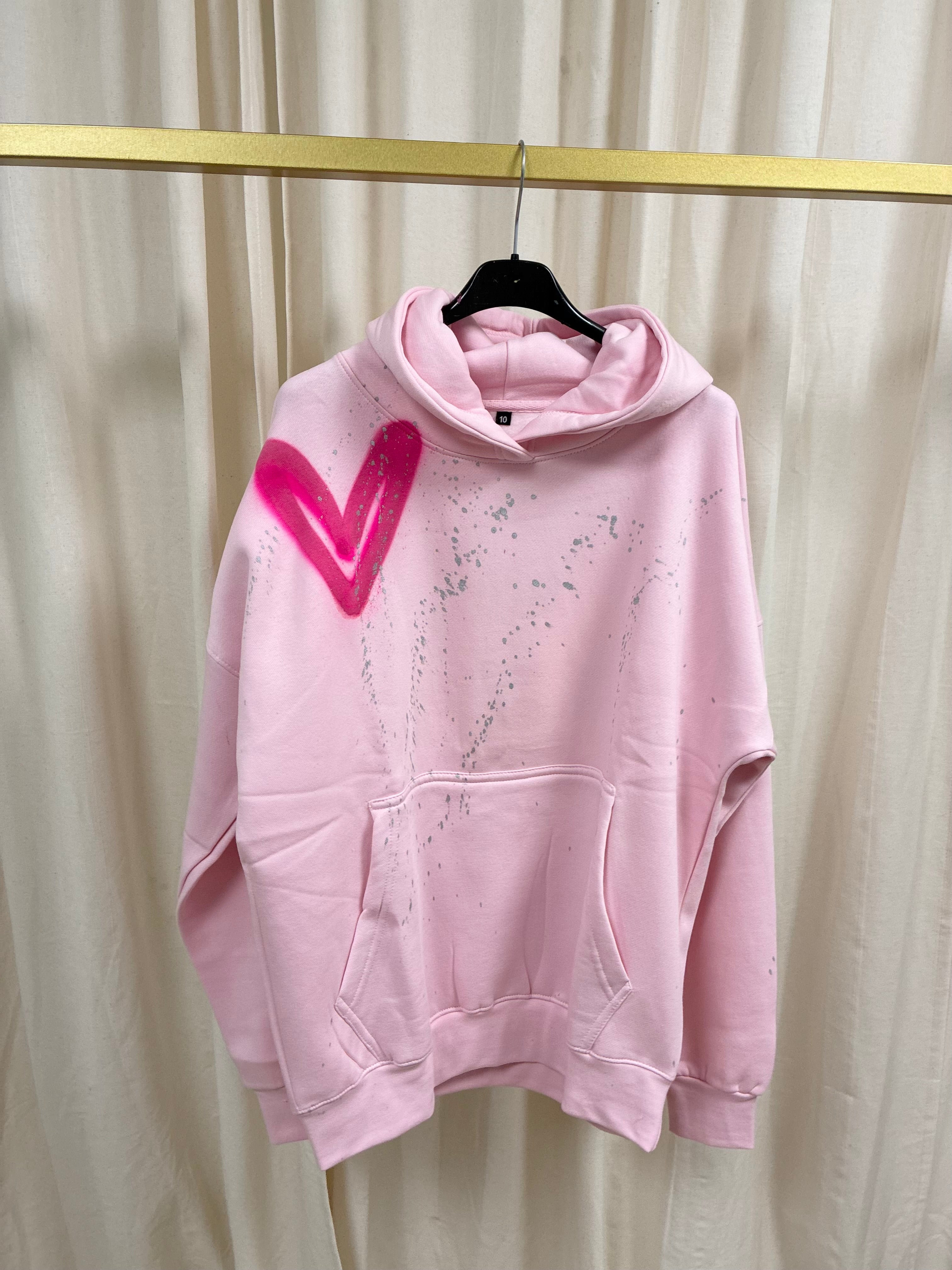 Hot Pink Heart Spray Painted Pink Hoodie Adults