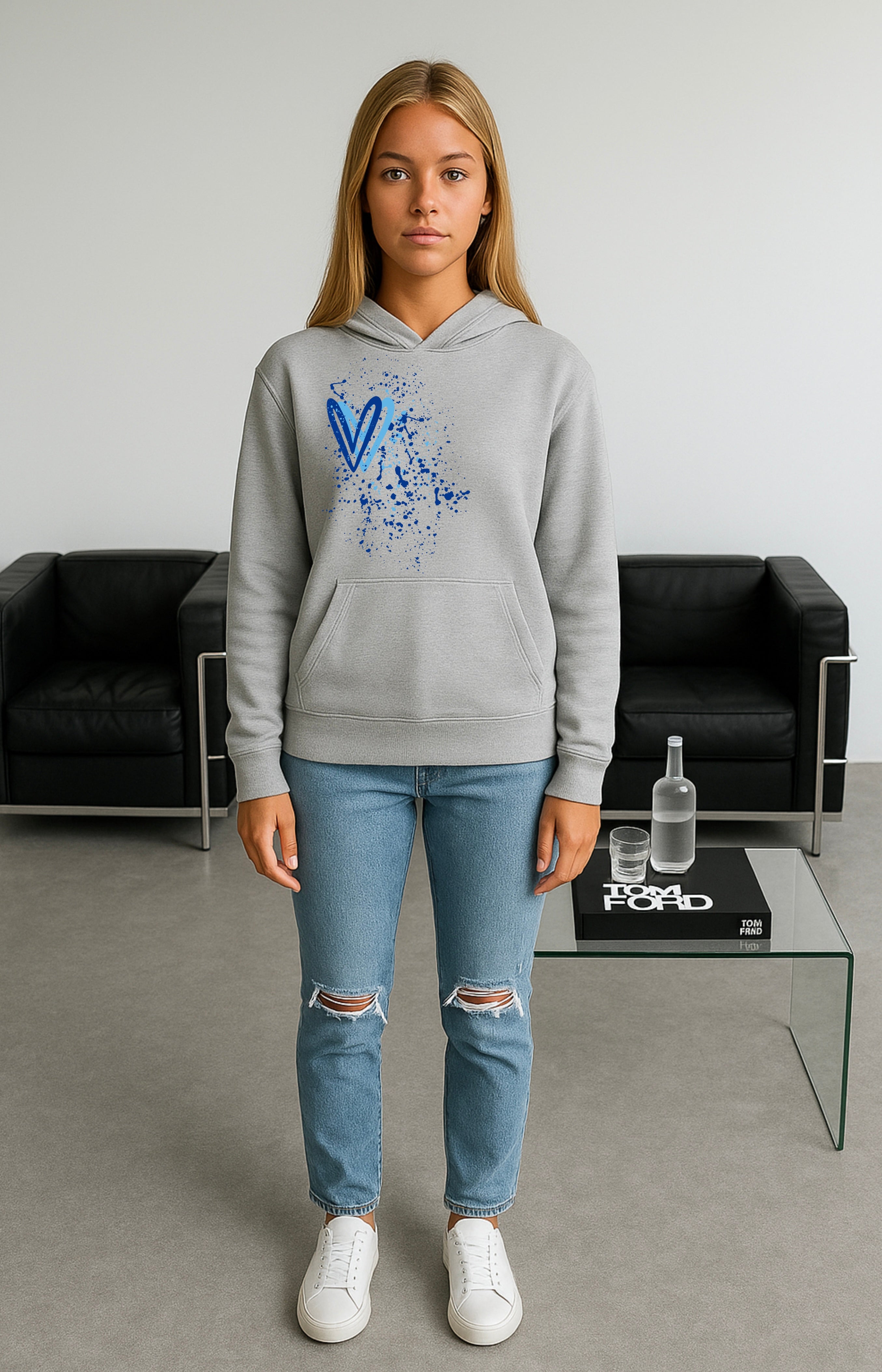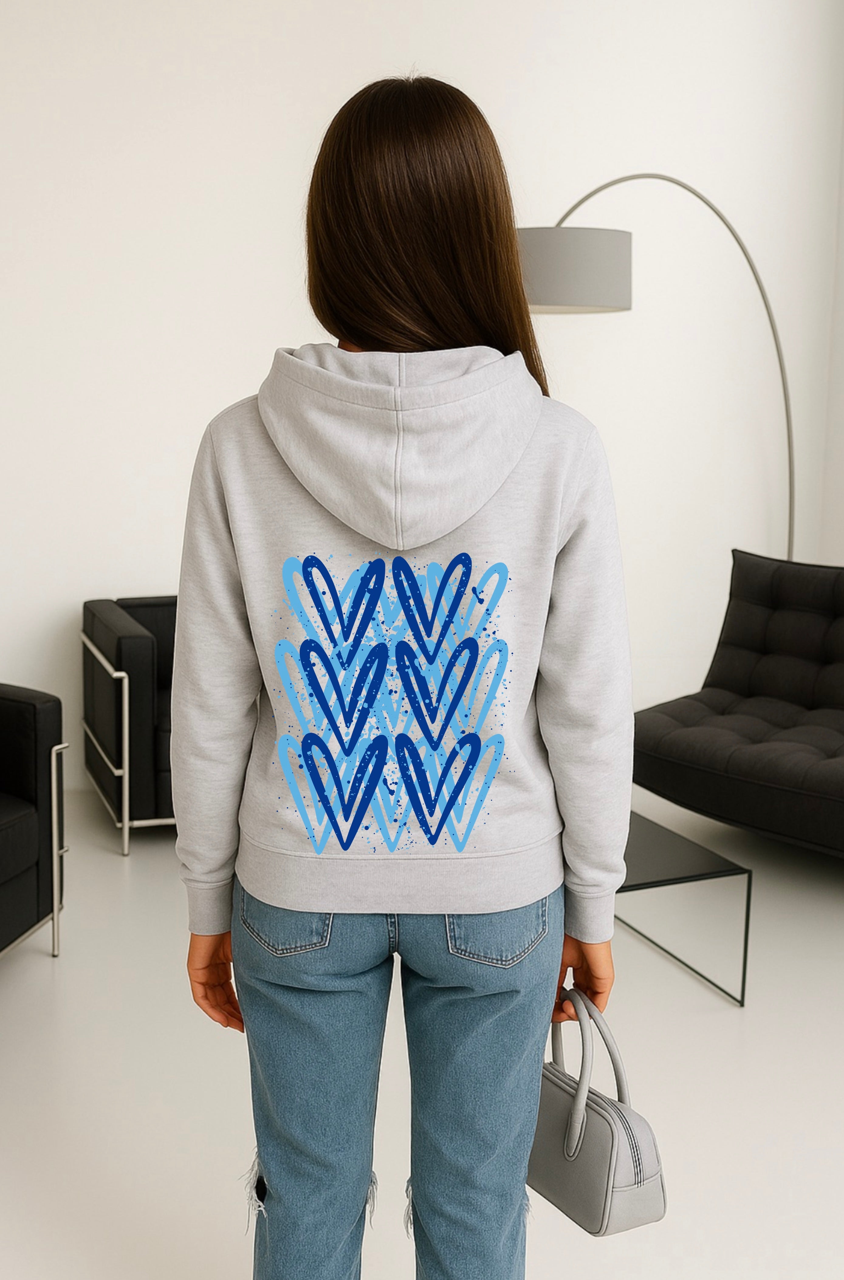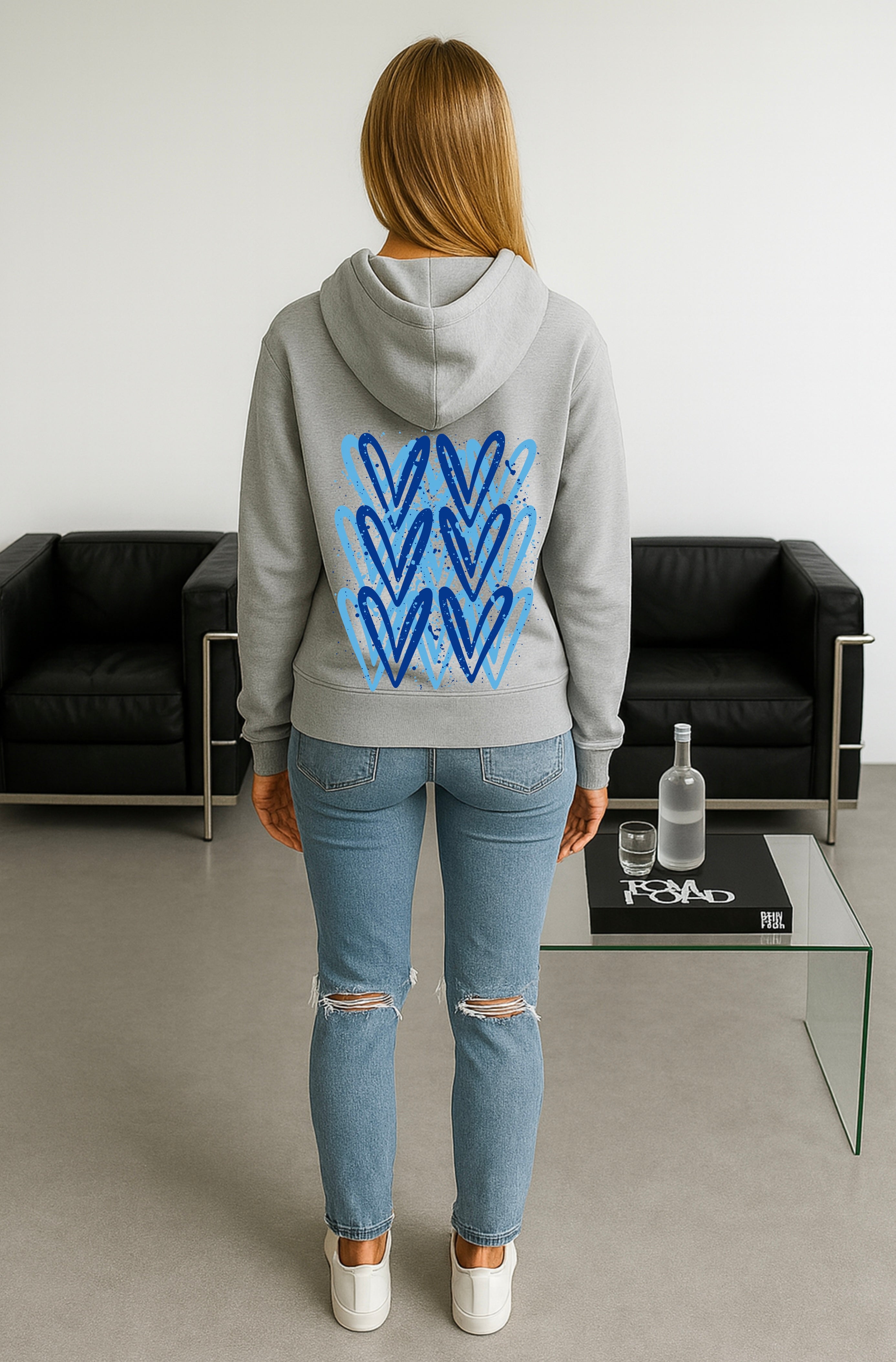 Introducing the Miss Runway graffiti Heart Hoodie, a unique and eye-catching addition to your wardrobe. This Hoodie features a one-of-a-kind design that is sure to turn heads. This Hoodie is perfect for those who want to make a statement with their fashion choices.