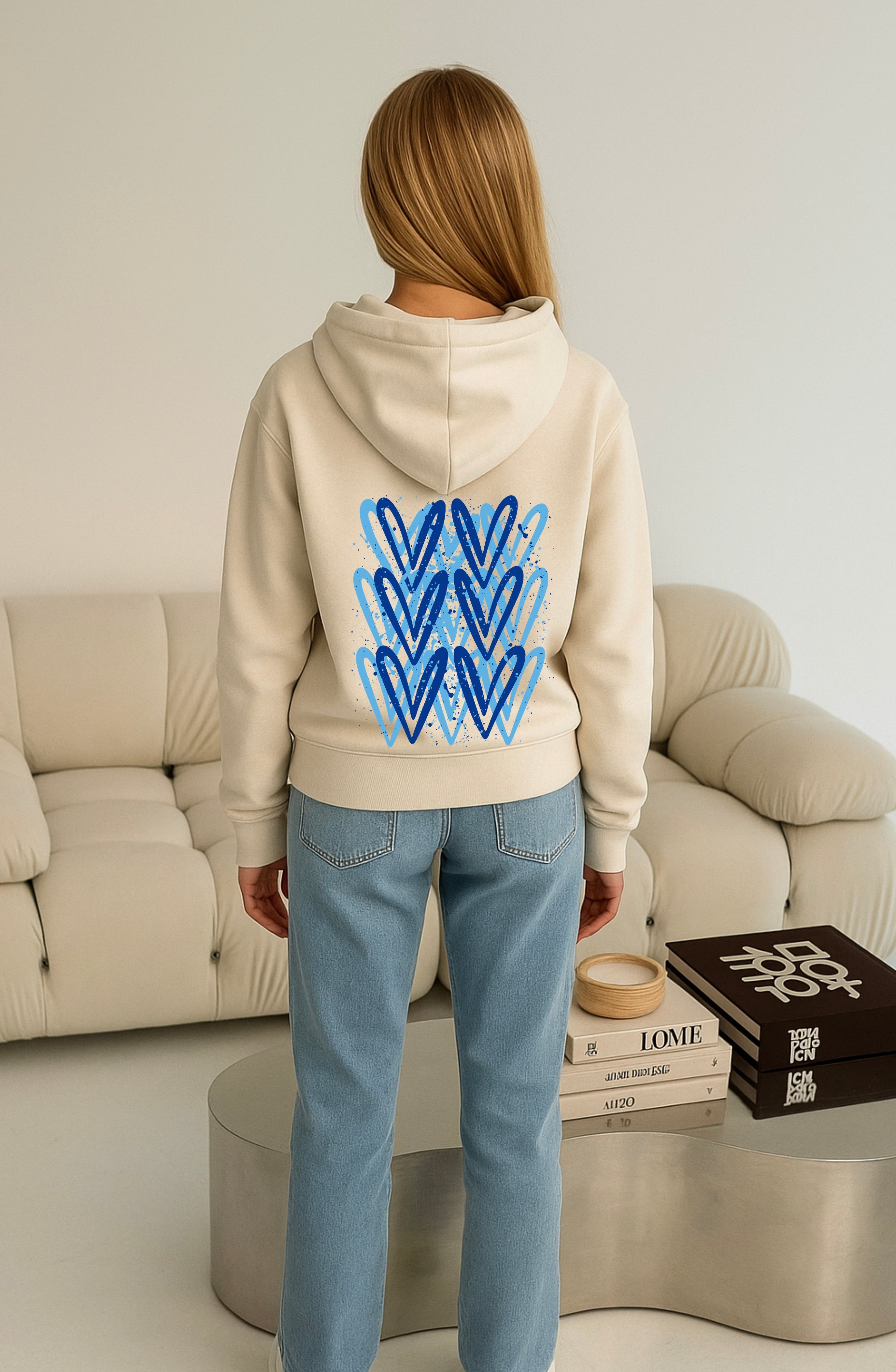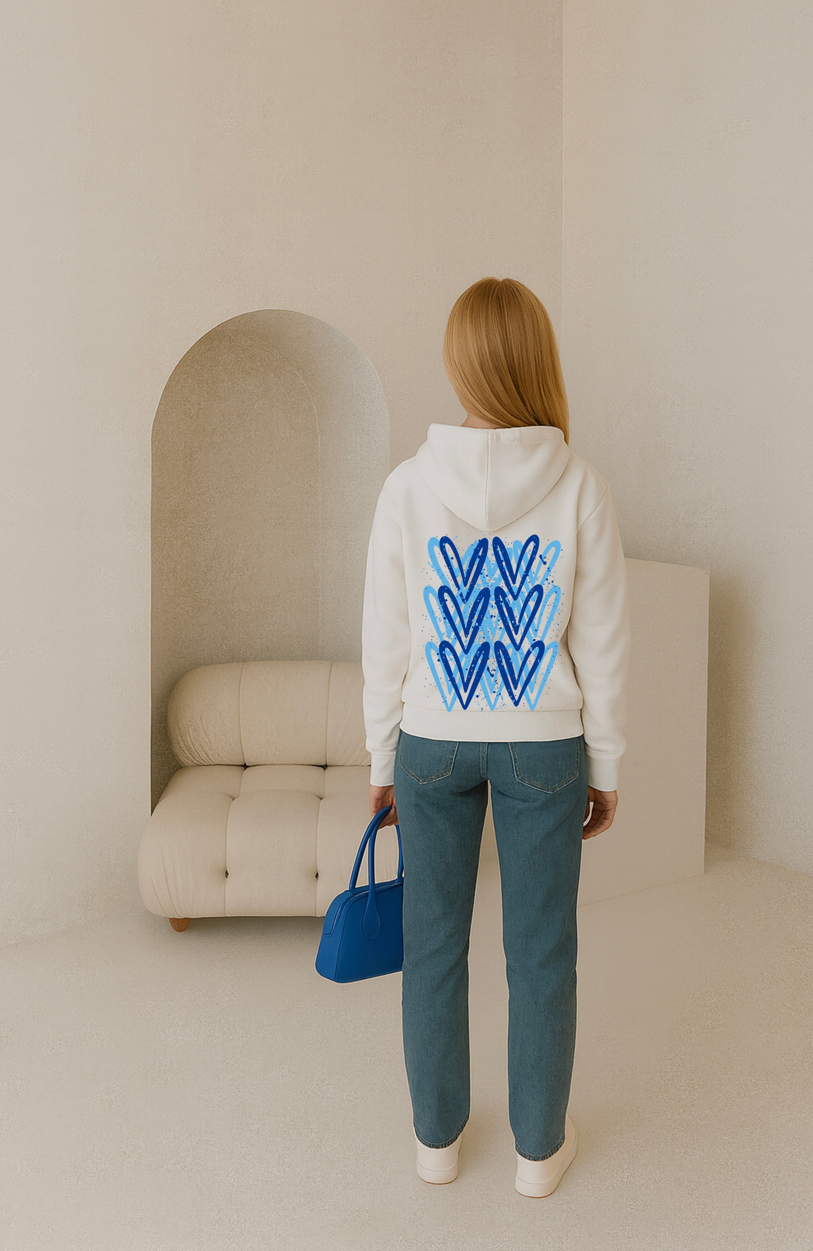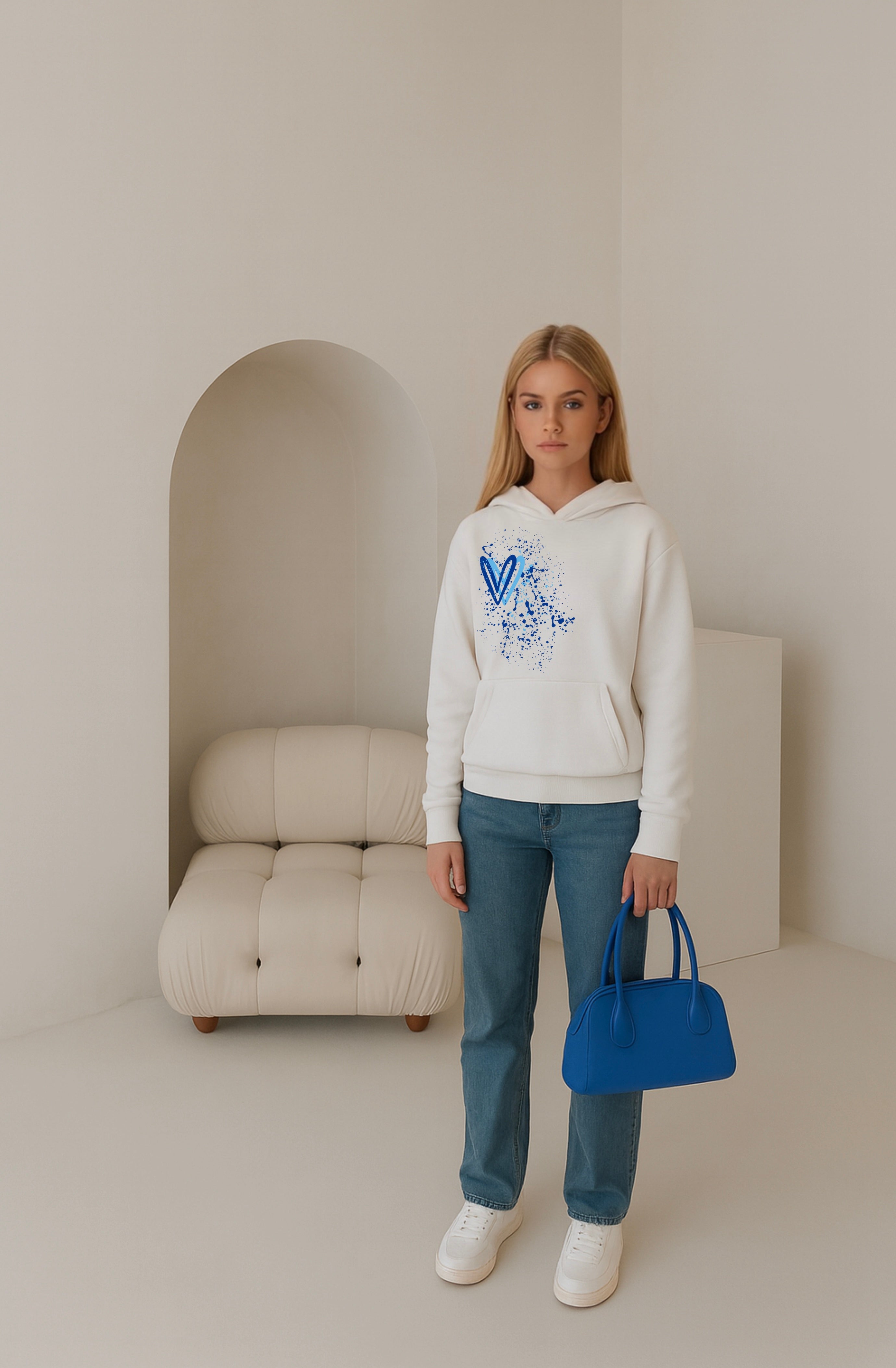 Introducing the Miss Runway graffiti Heart Hoodie, a unique and eye-catching addition to your wardrobe. This Hoodie features a one-of-a-kind design that is sure to turn heads. This Hoodie is perfect for those who want to make a statement with their fashion choices.