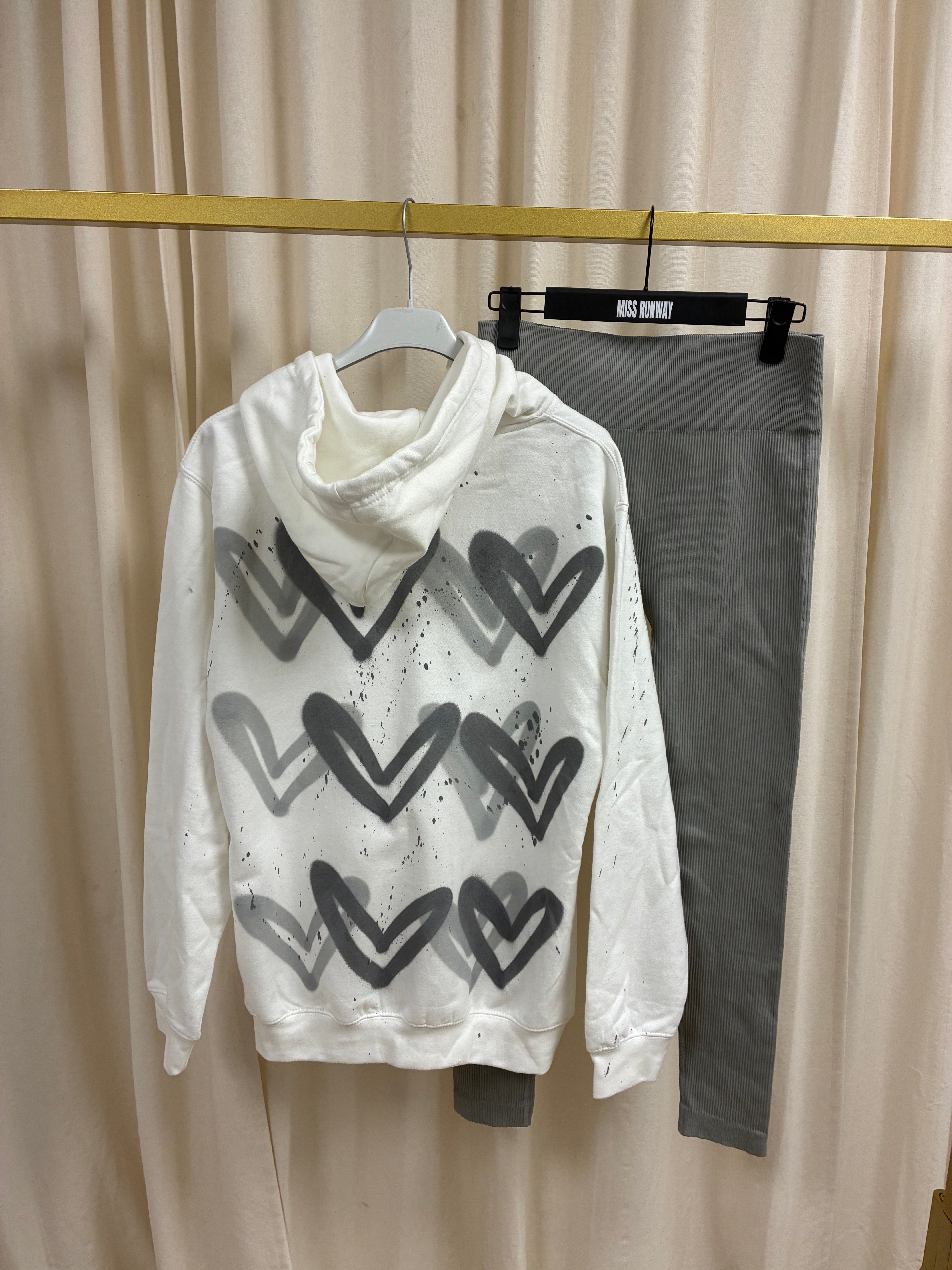 Grey Hearts Spray Painted Zip Up Hoodie & Leggings Adults