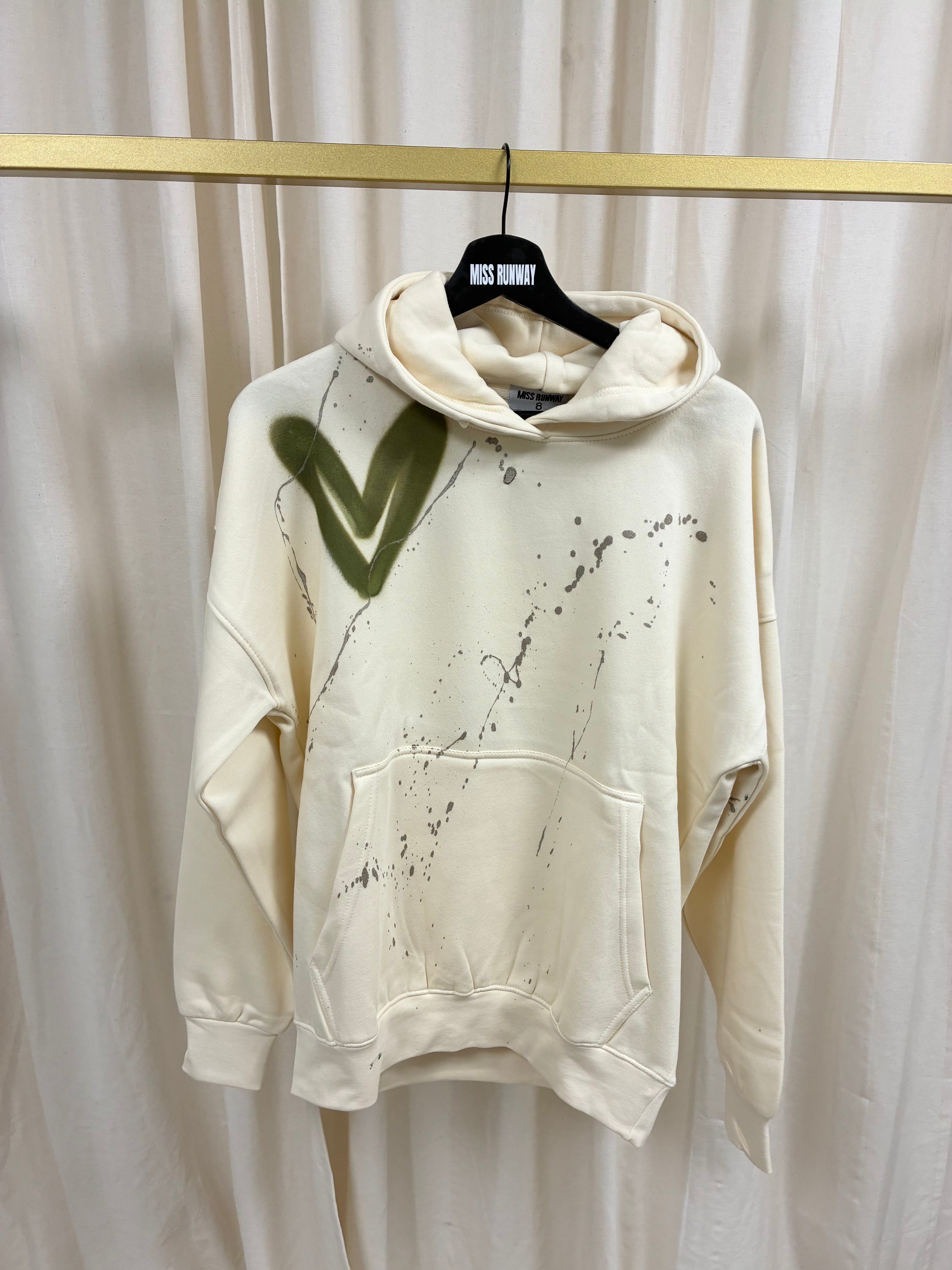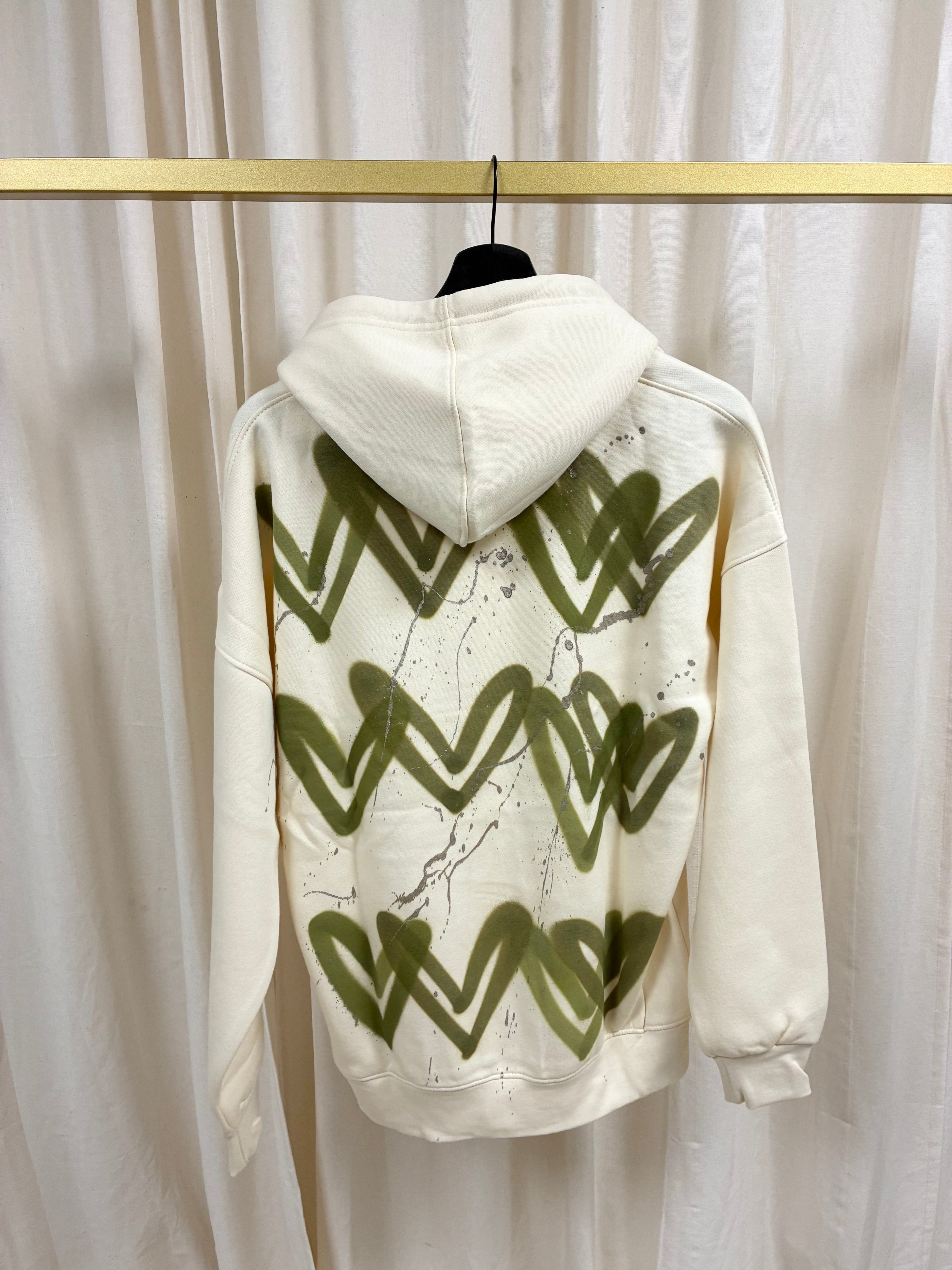 Khaki Heart Spray Painted Cream Hoodie Adults