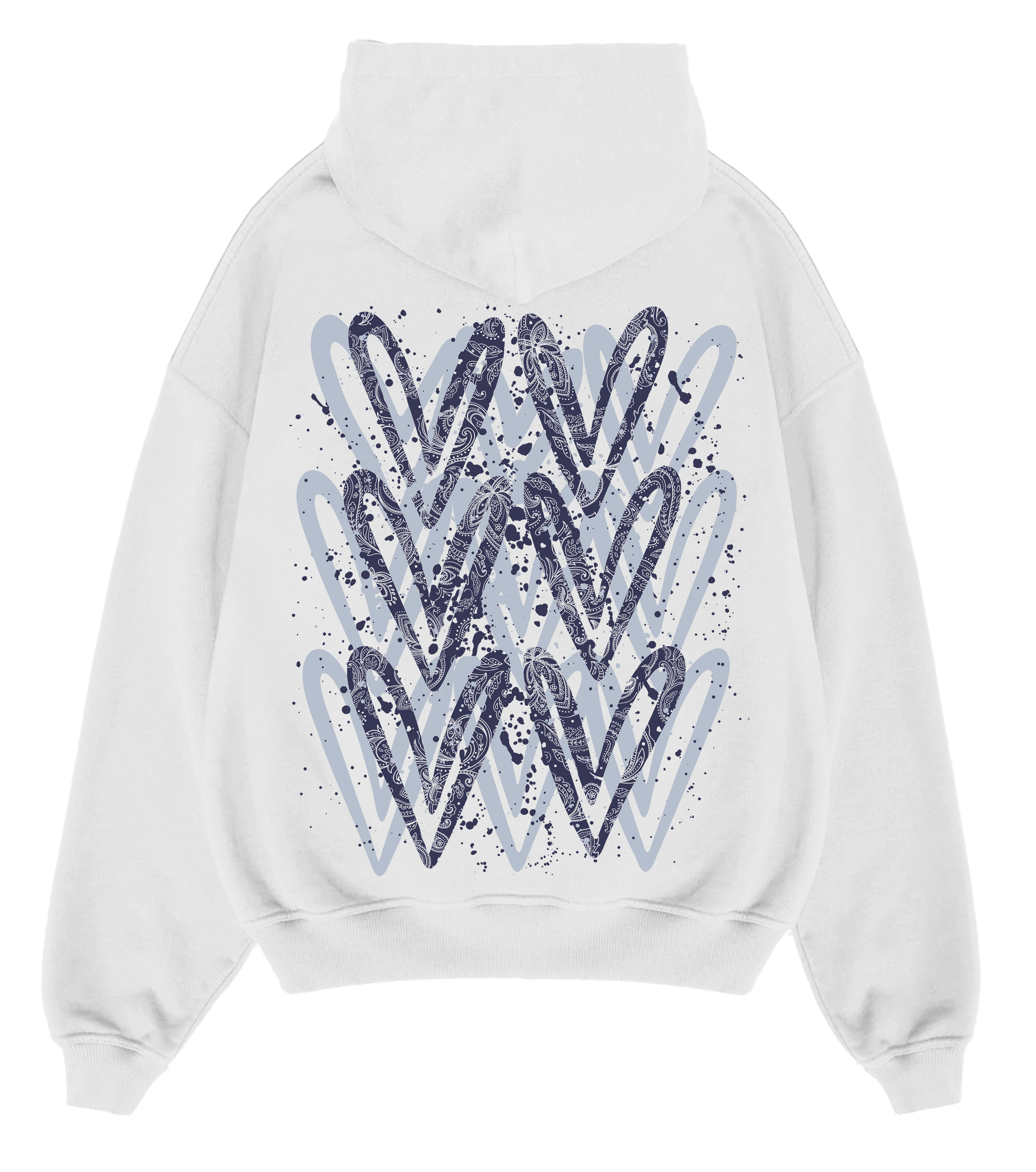 Navy Paisley Heart Printed Hoodie Adults