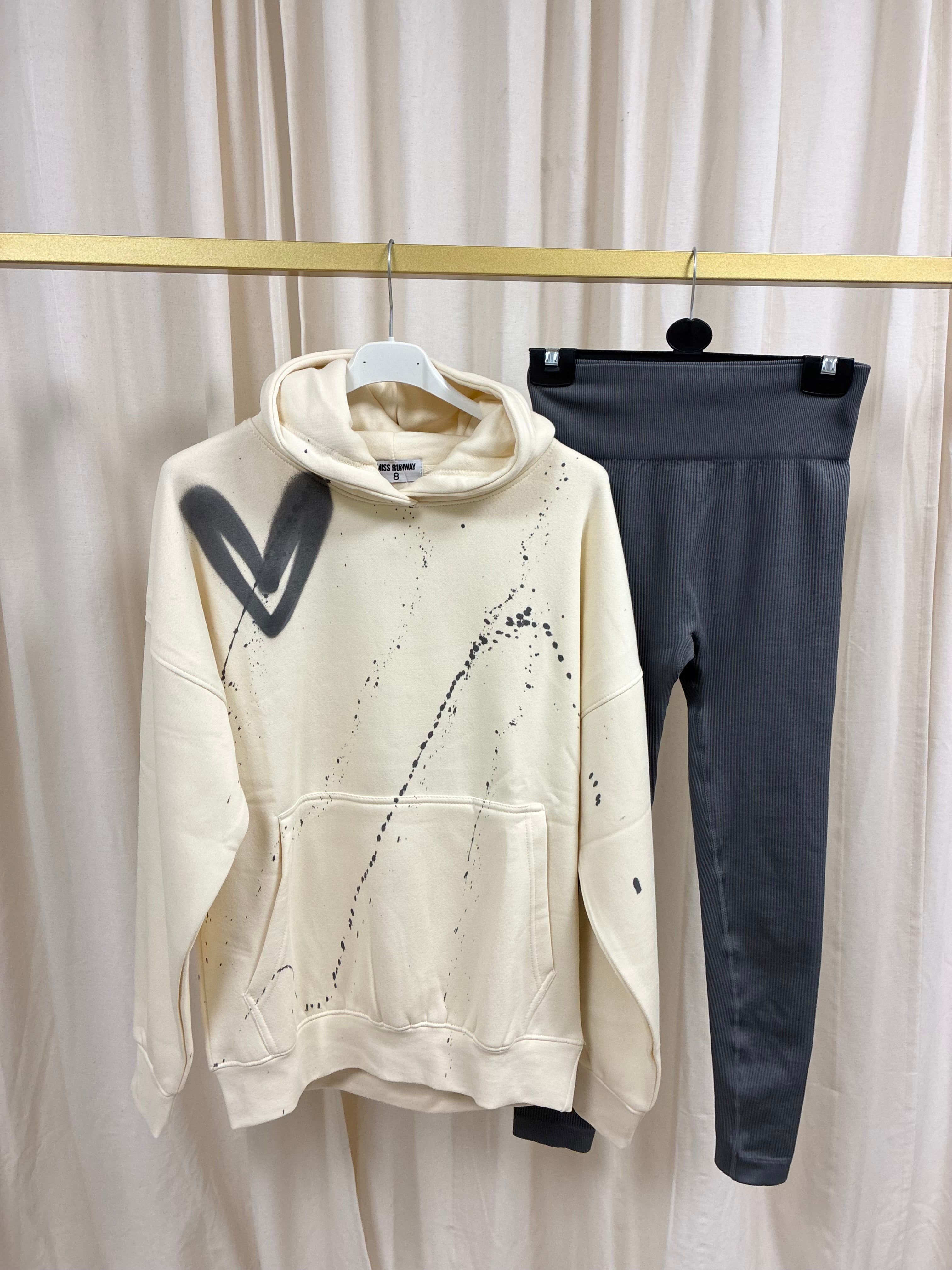 Charcoal Grey Heart Cream Hoodie & Leggings Adults