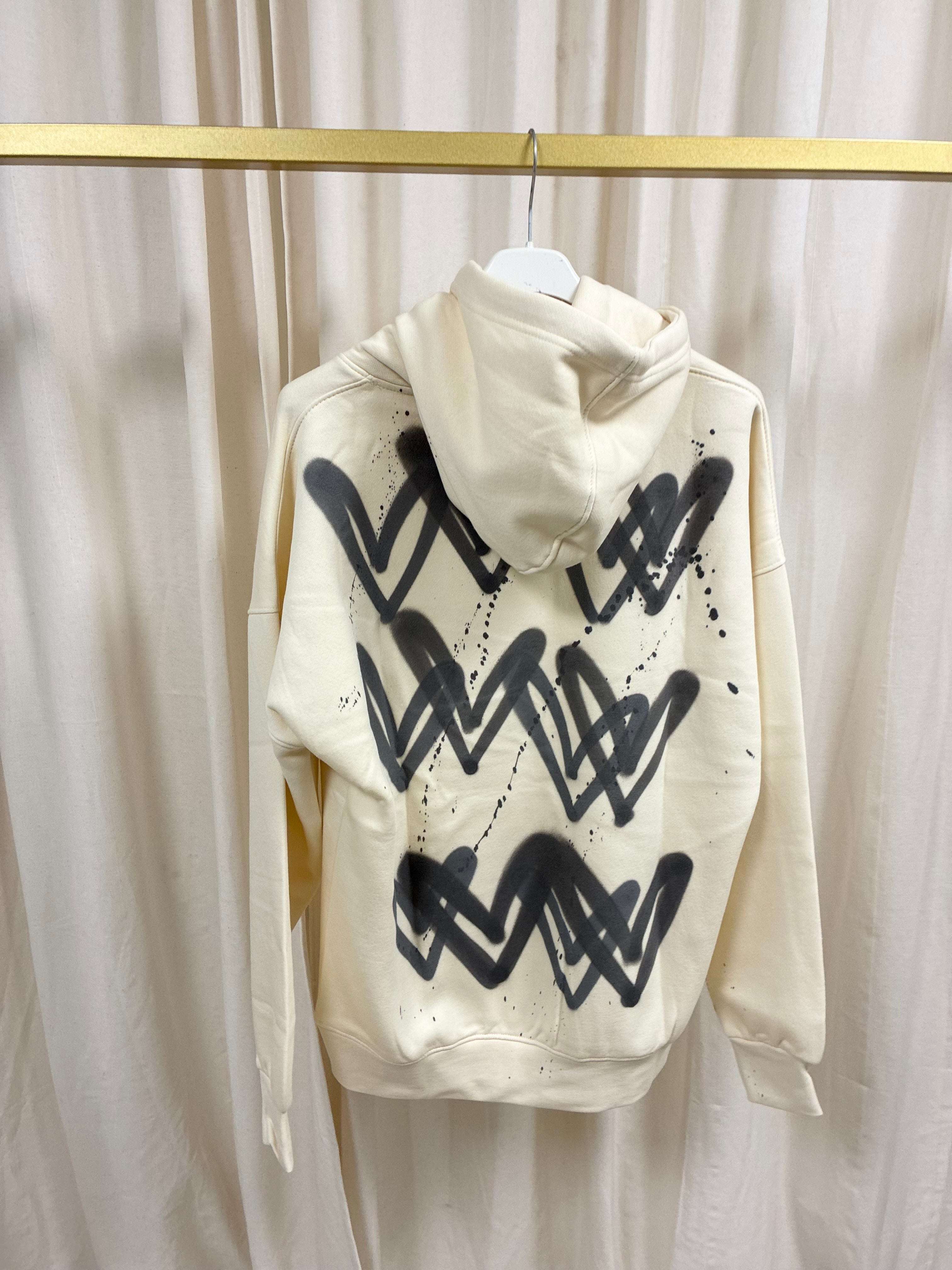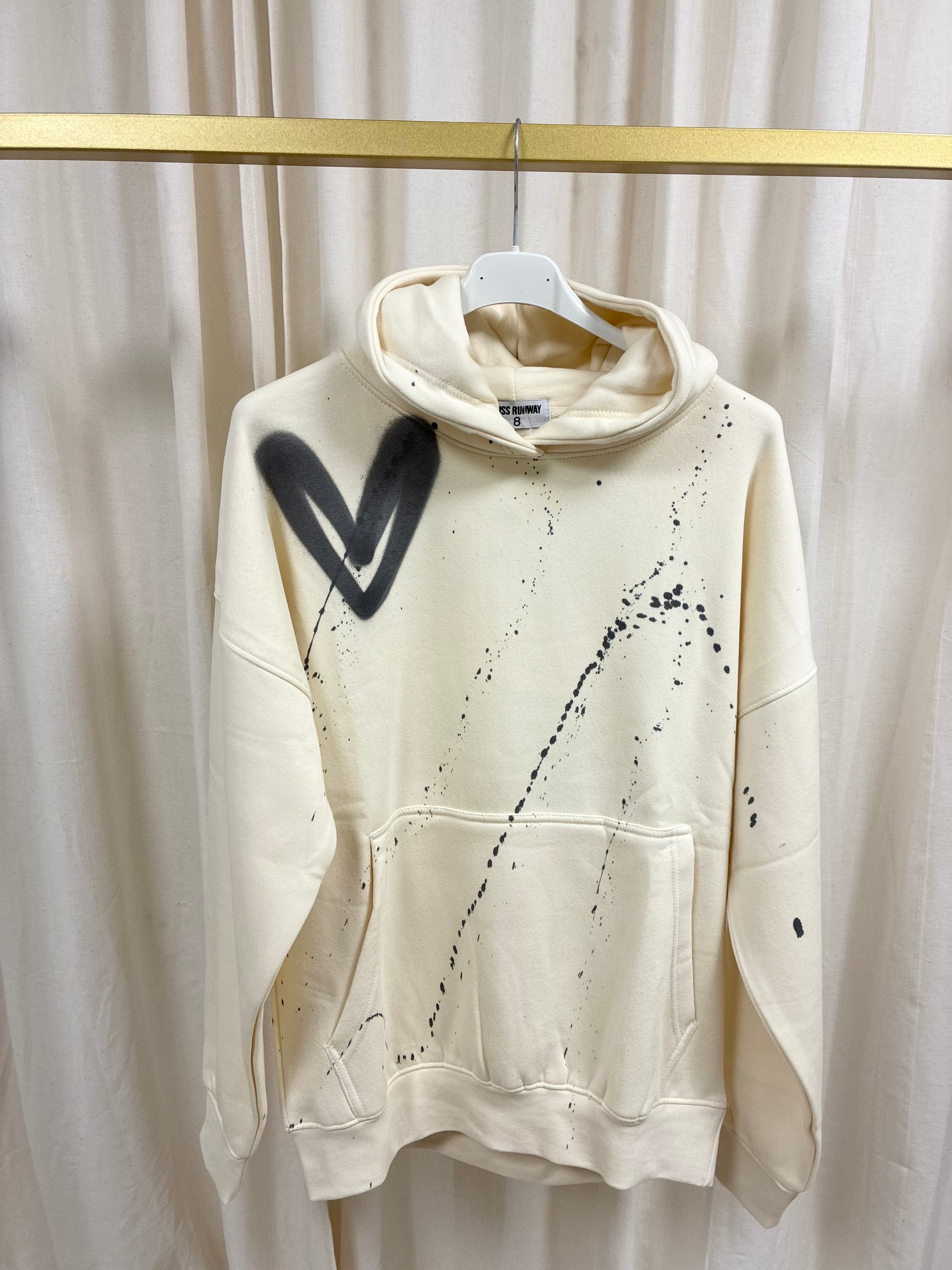 Charcoal Grey Heart Spray Painted Cream Hoodie Adults