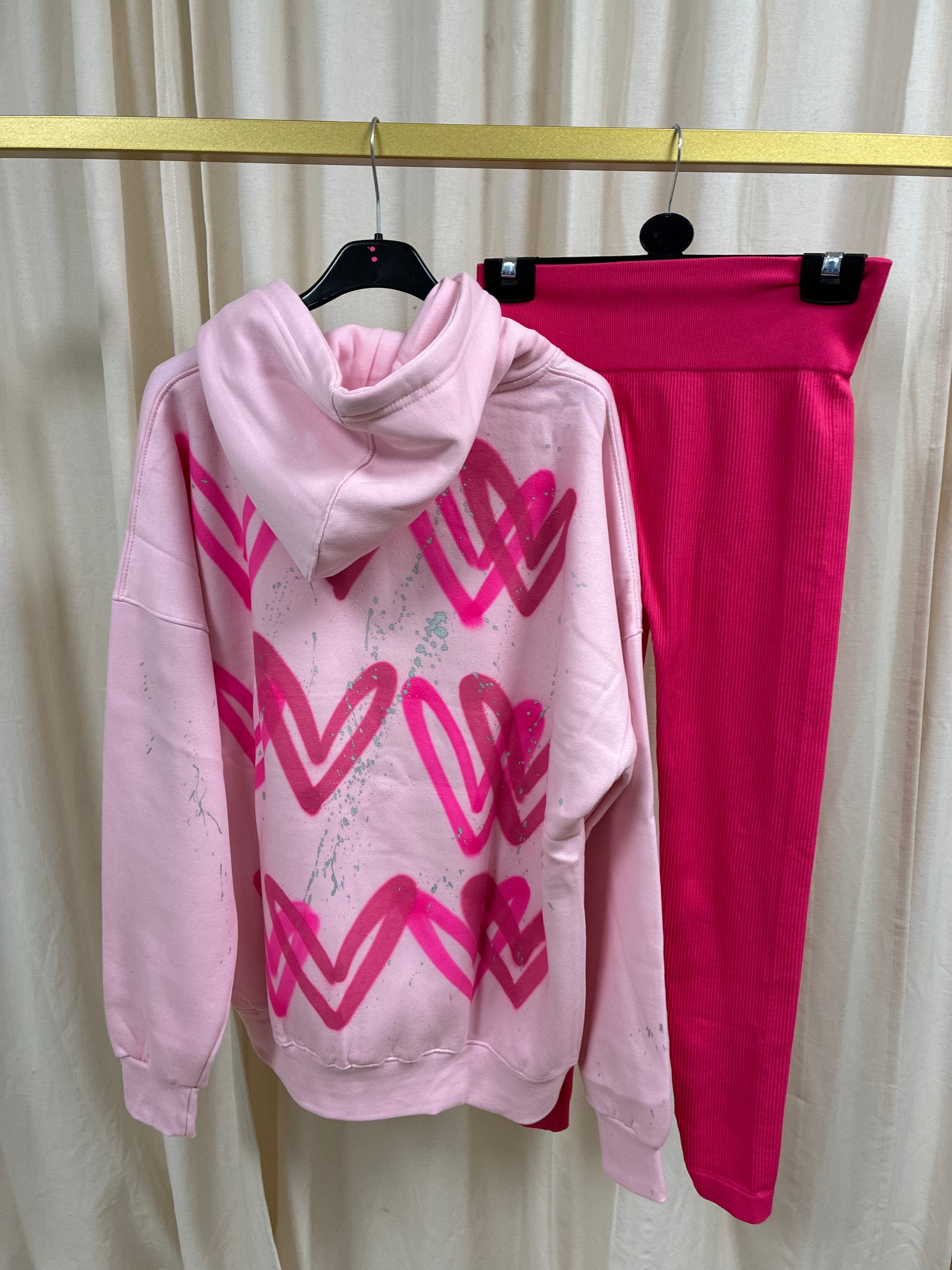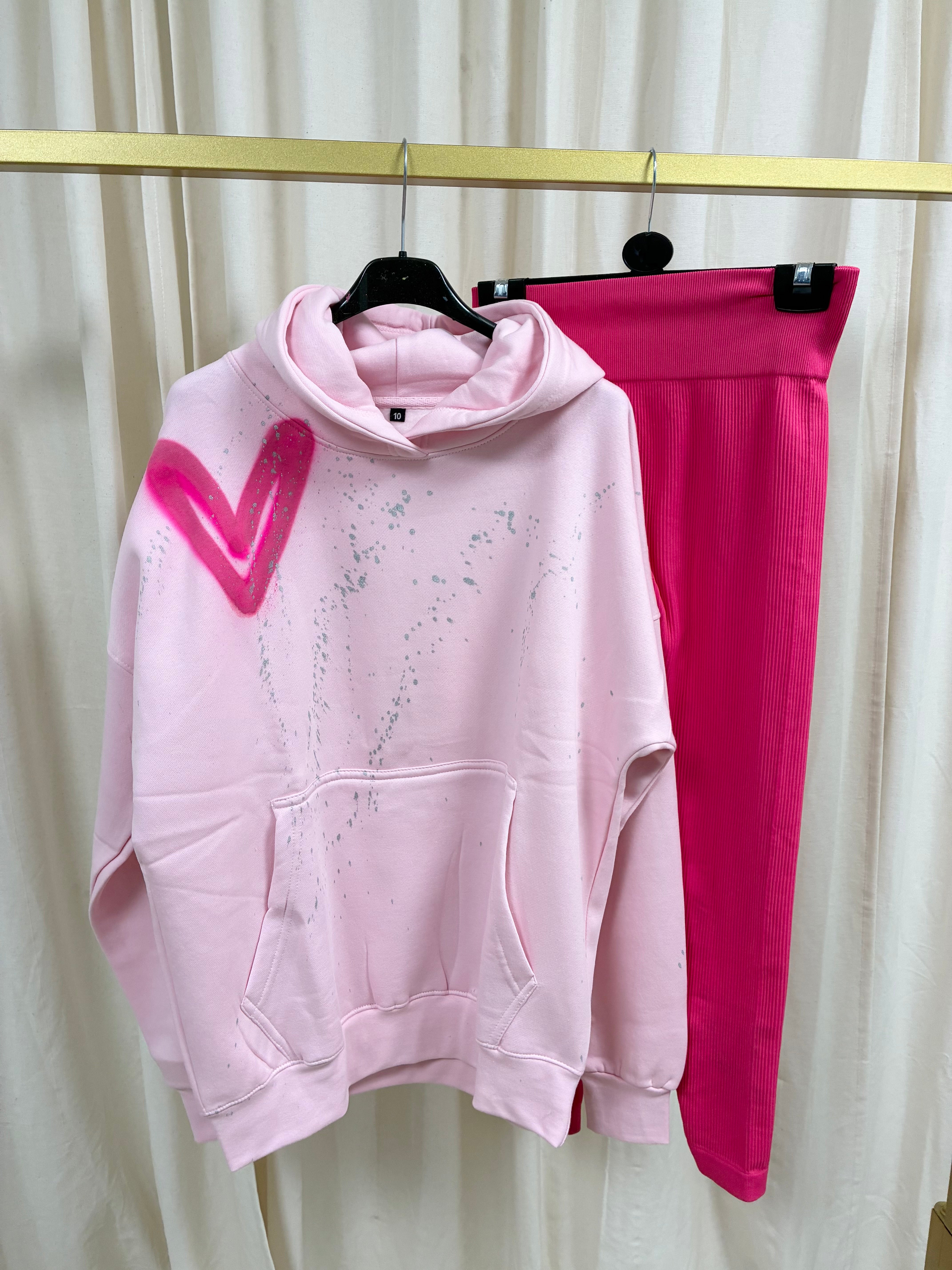 Hot Pink Heart Spray Painted Pink Hoodie & Leggings Kids