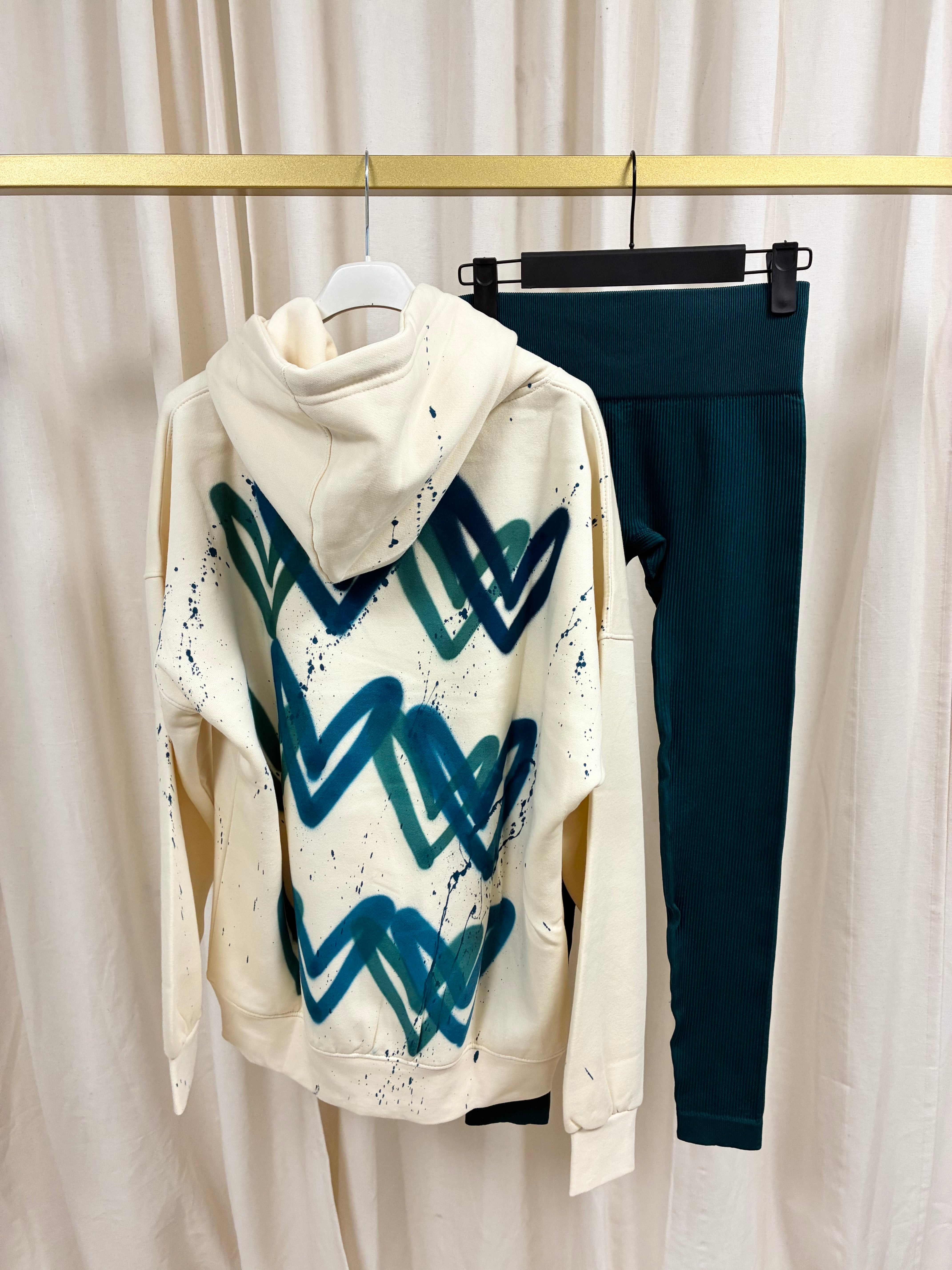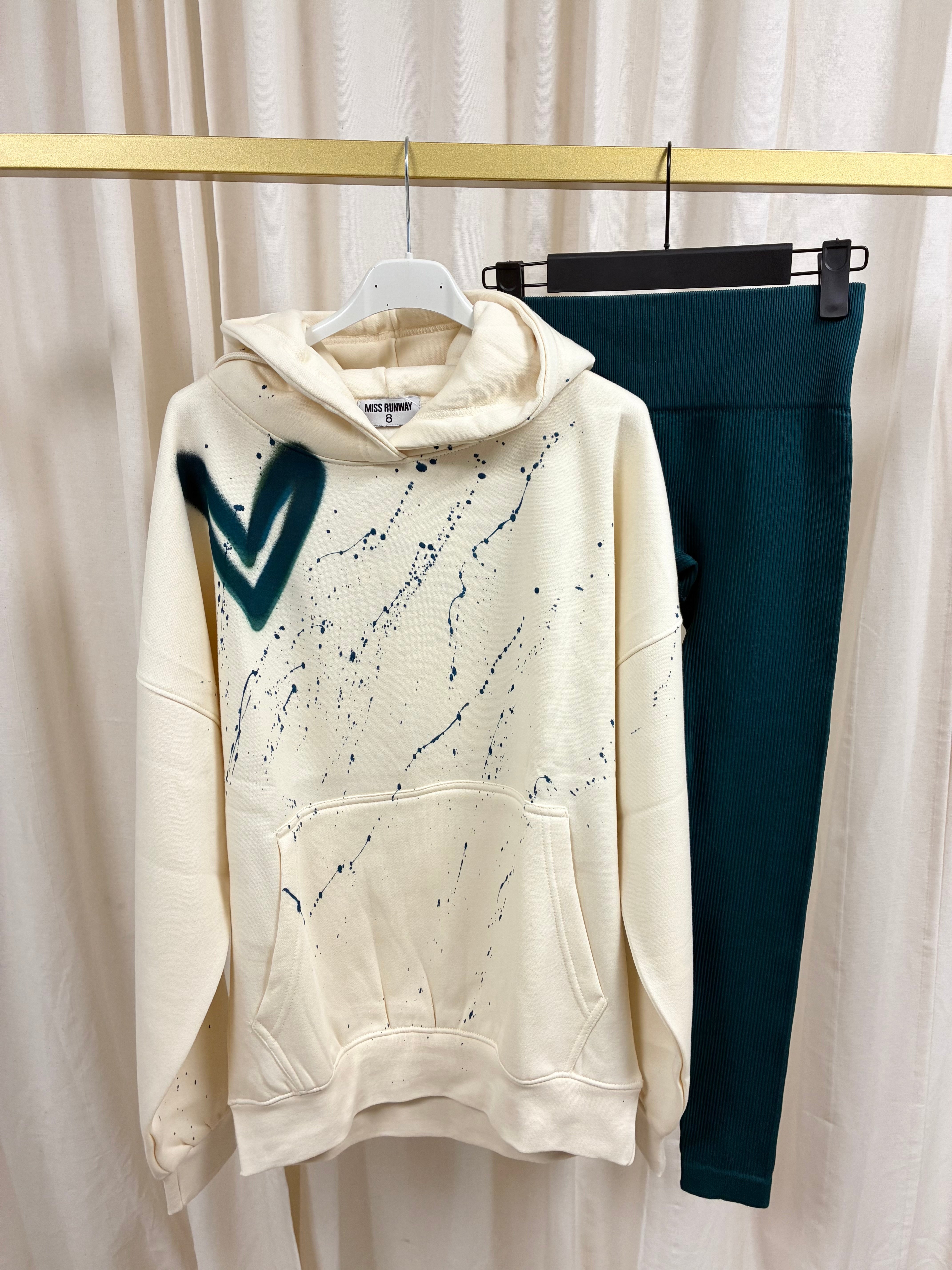 Teal Heart Cream Hoodie & Leggings Adults