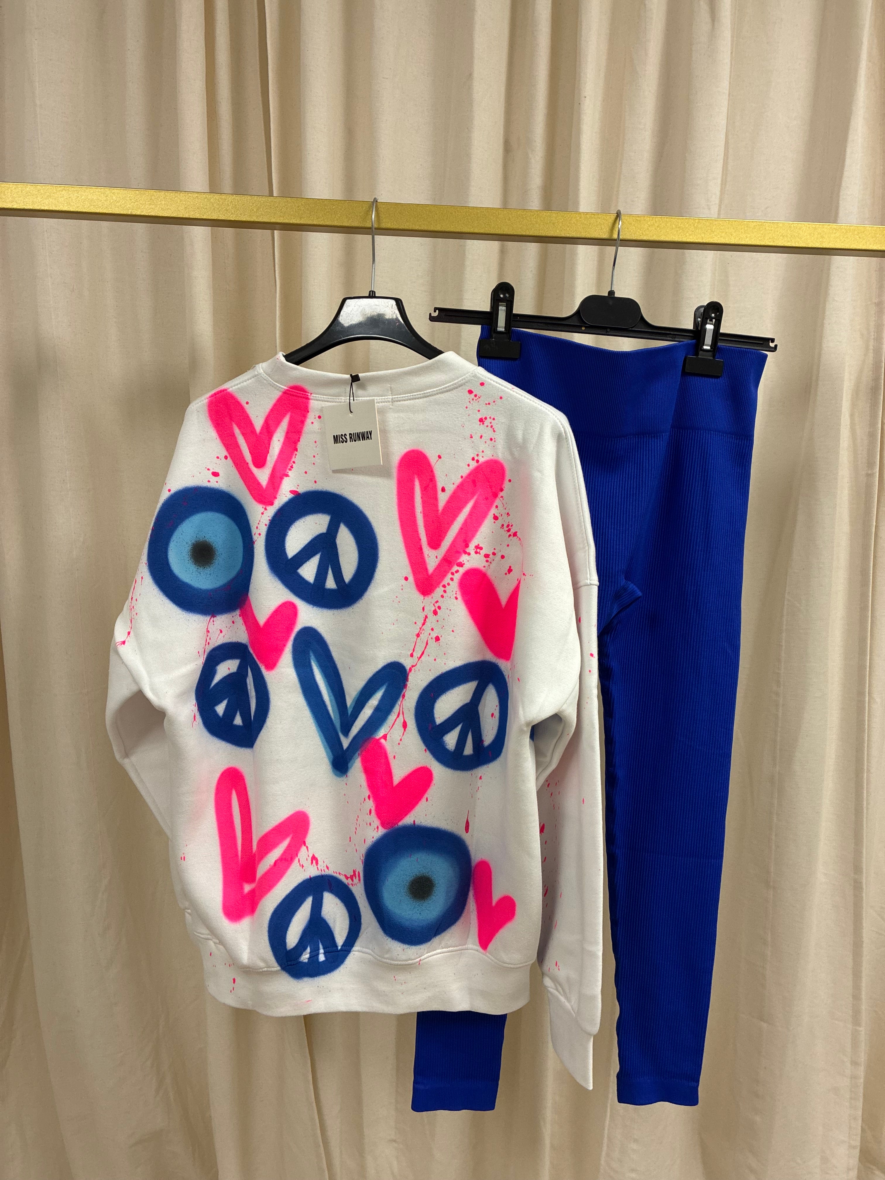 Neon Pink Heart, Peace, Evil Eye Sweatshirt Legging Set Adults