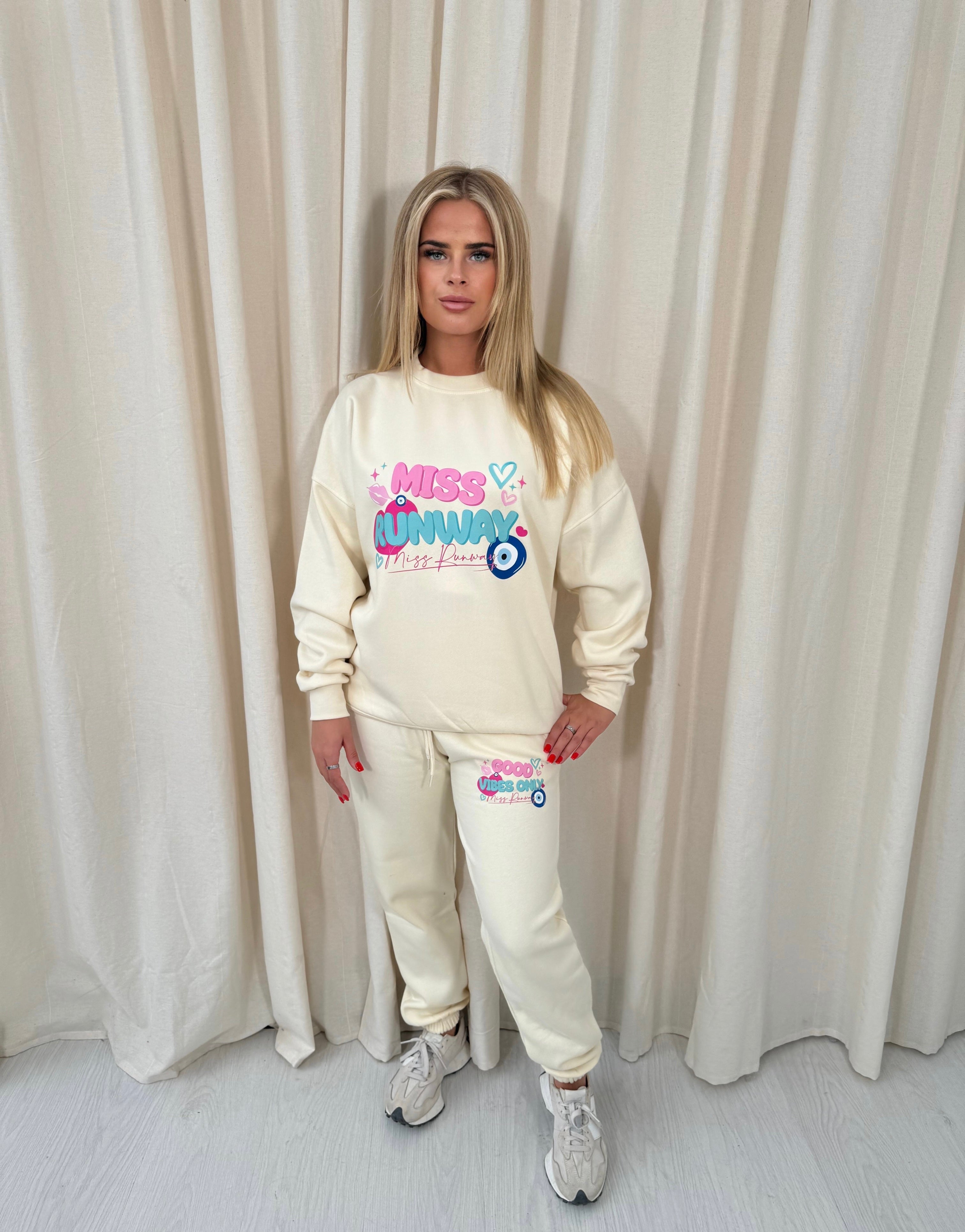 Miss Runway Sweatshirt Tracksuit Cream