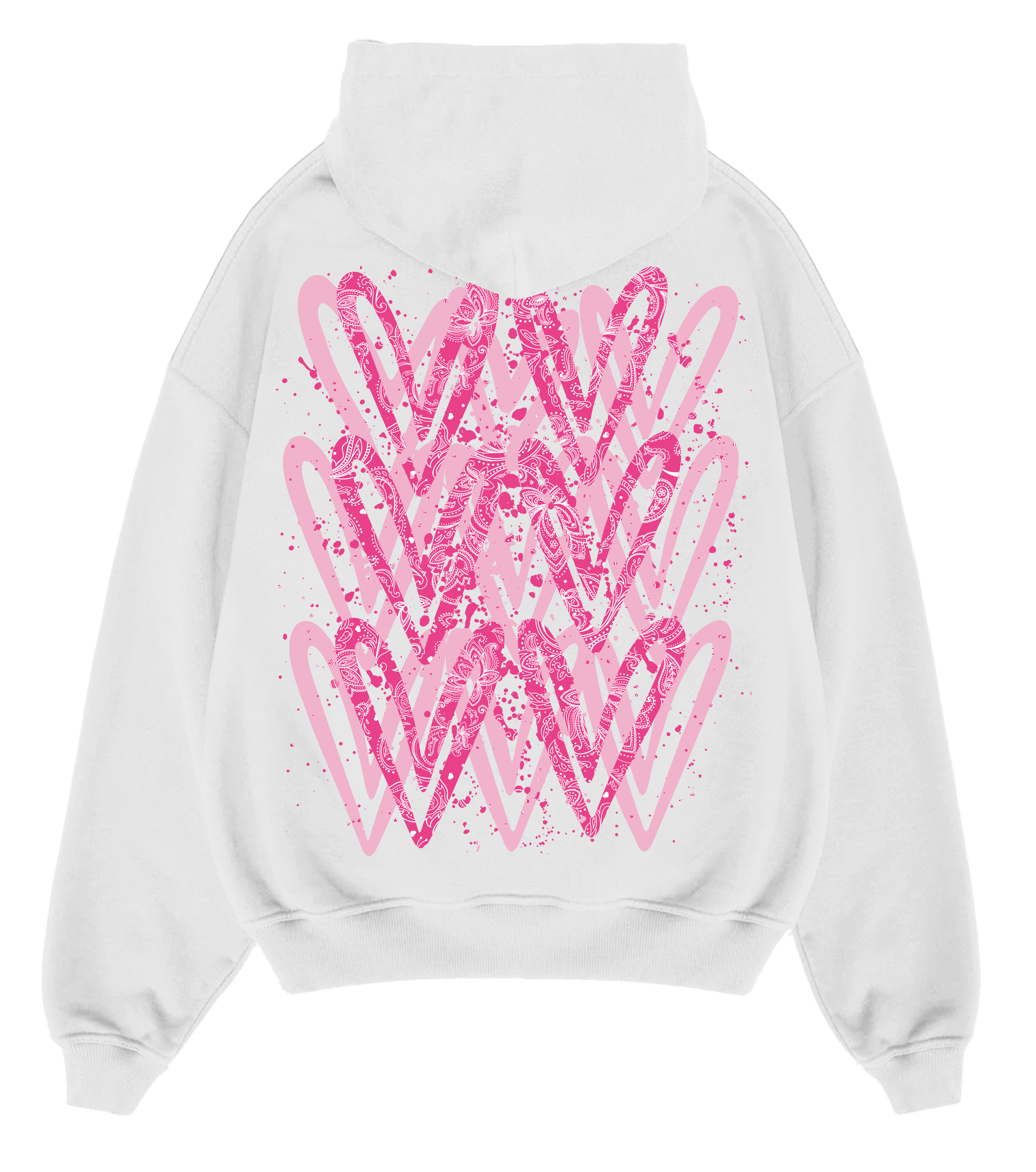 Hot Pink Paisley Heart Printed Hoodie Adults