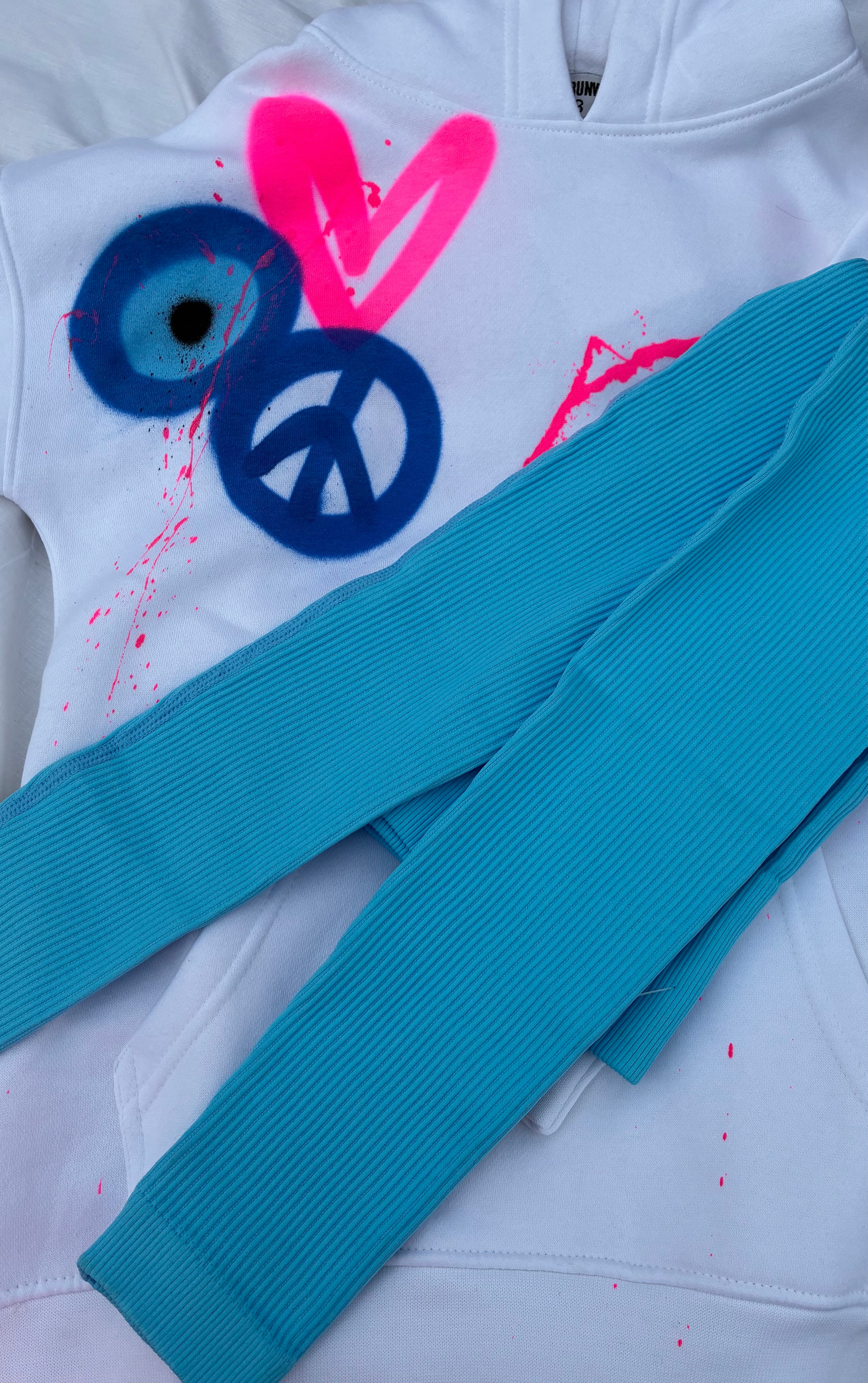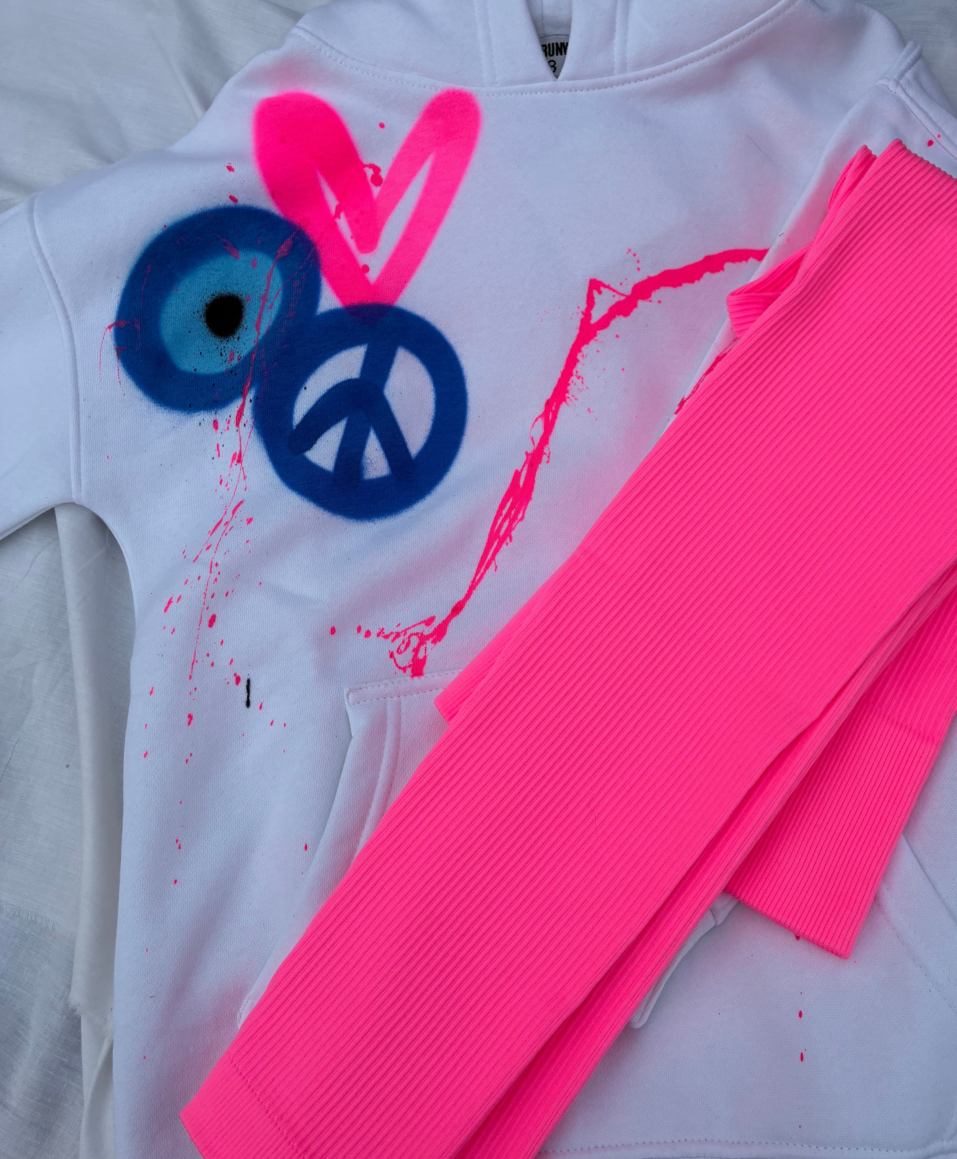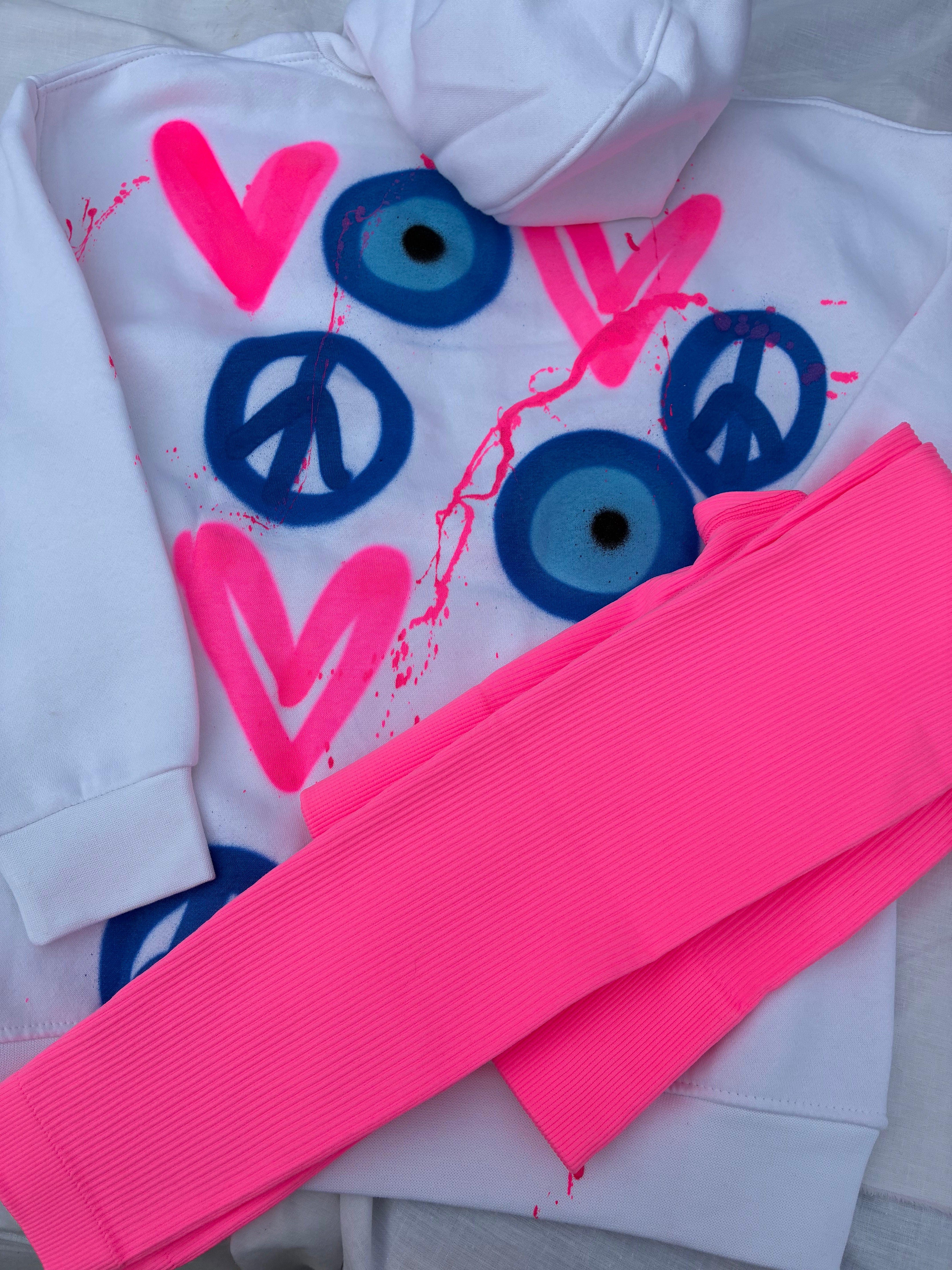 Pink Neon Heart Evil Eye Spray Painted Hoodie & Leggings Adults
