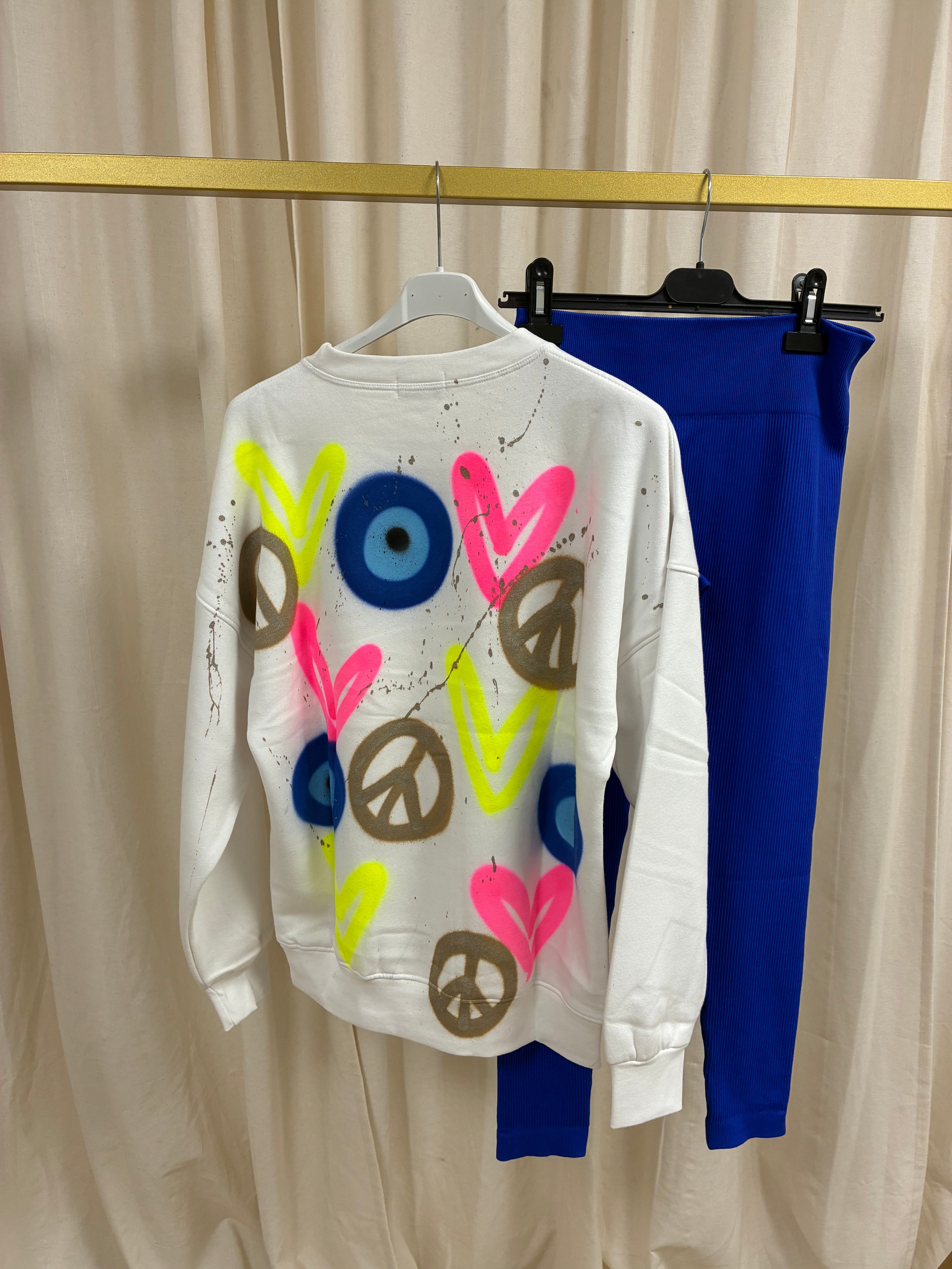 Neon Heart, Gold Peace, Evil Eye Spray Painted Sweatshirt & Leggings Kids