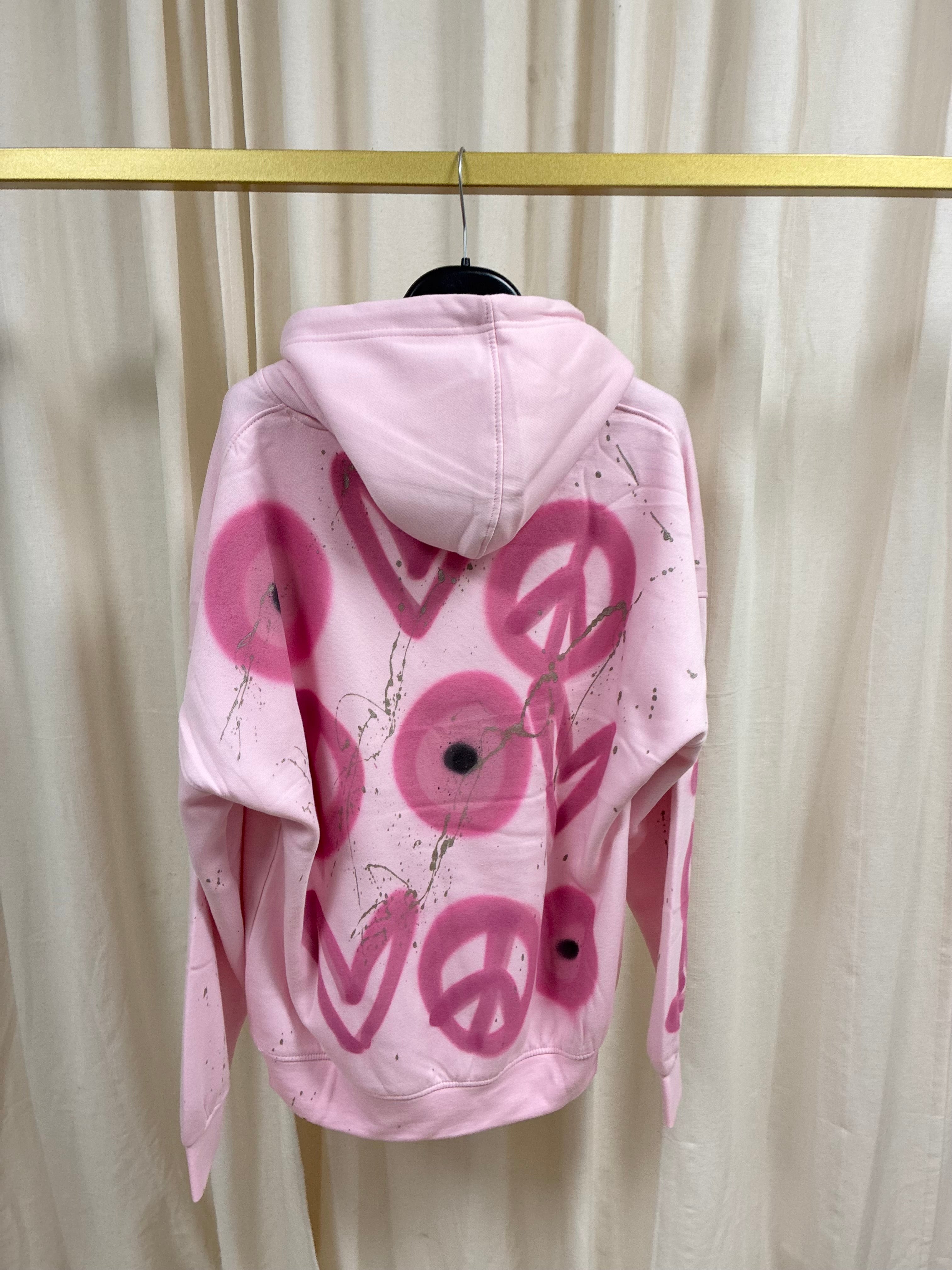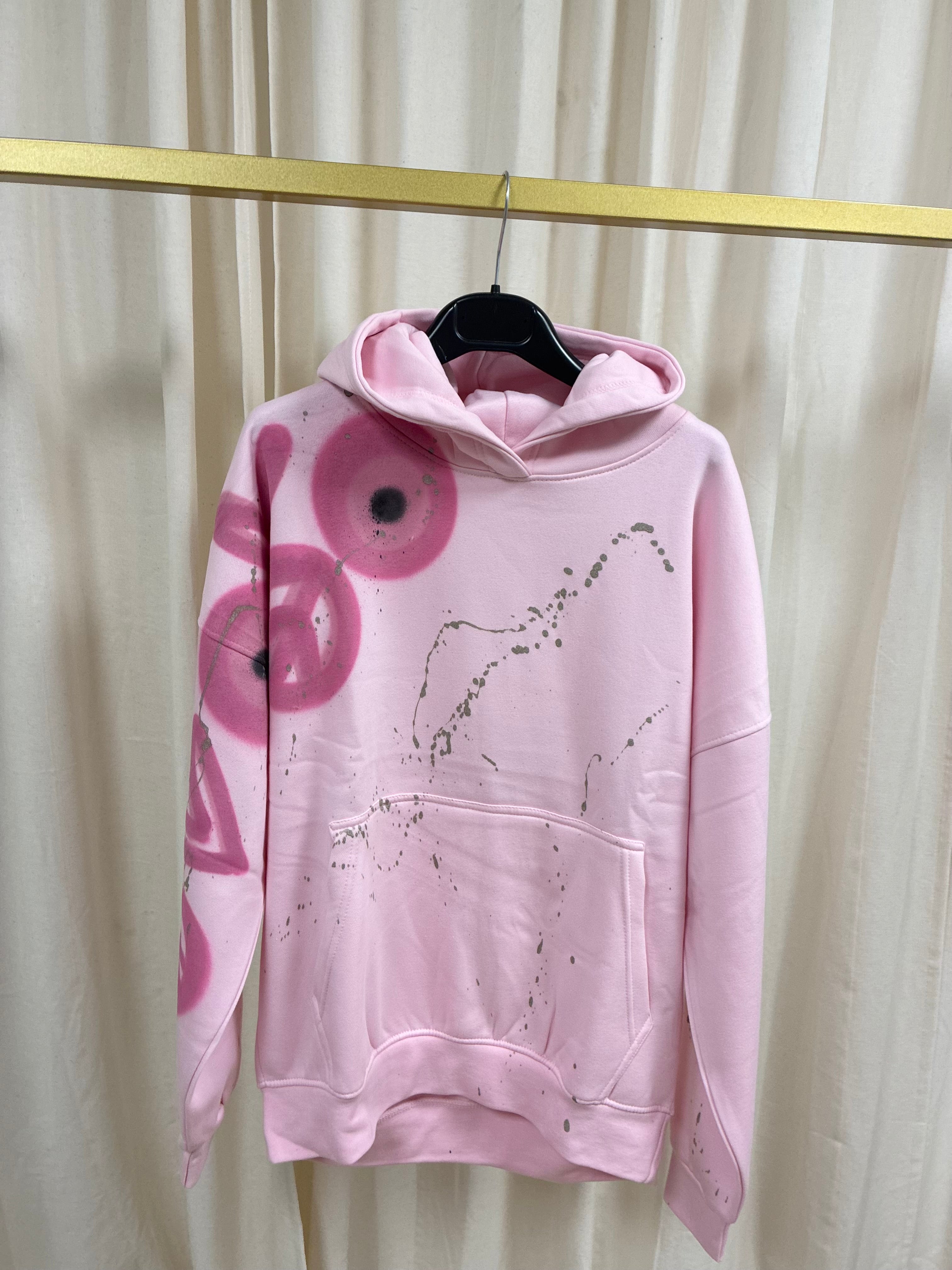 Evil Eye, Peace Spray Painted Pink Hoodie Adults