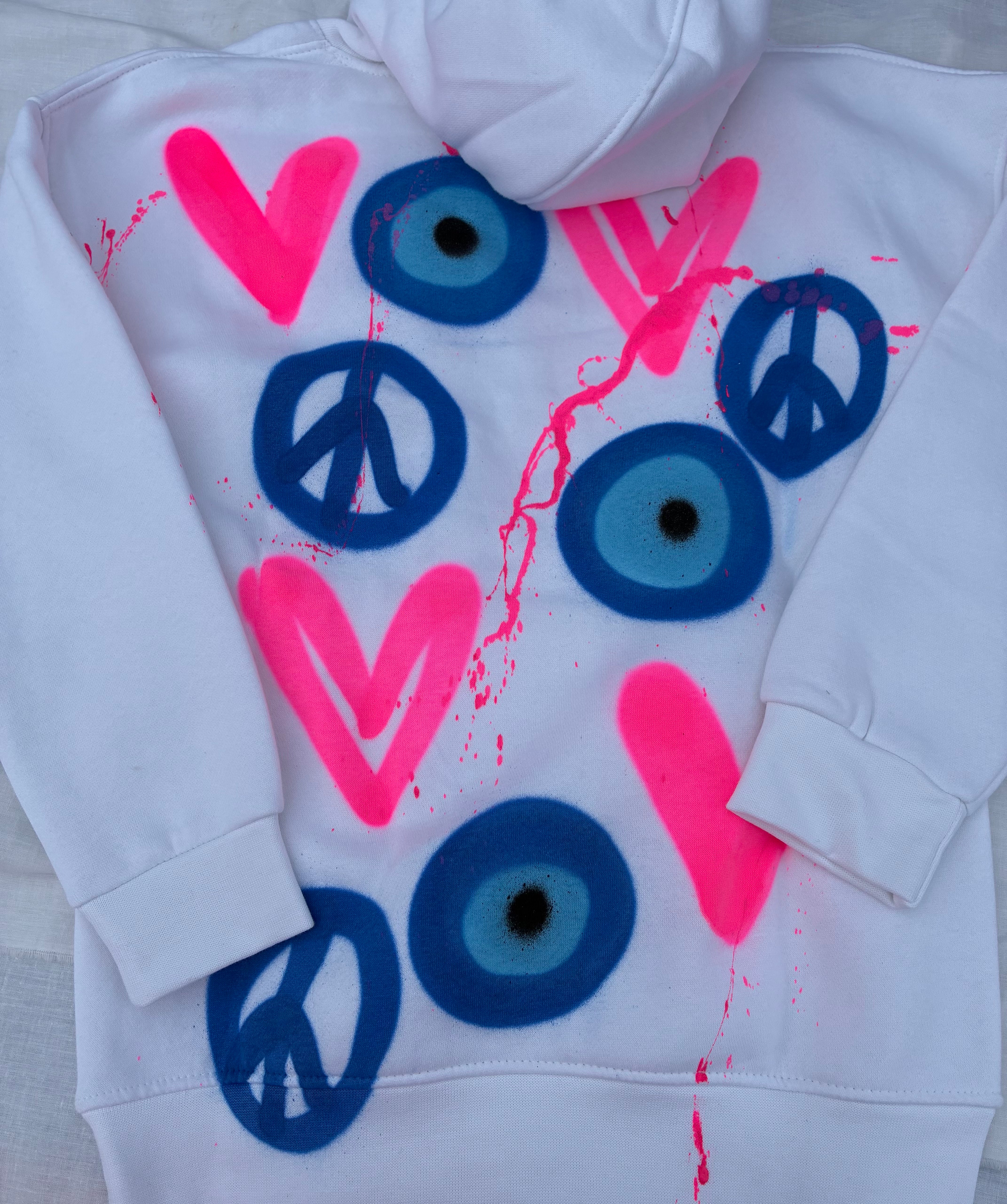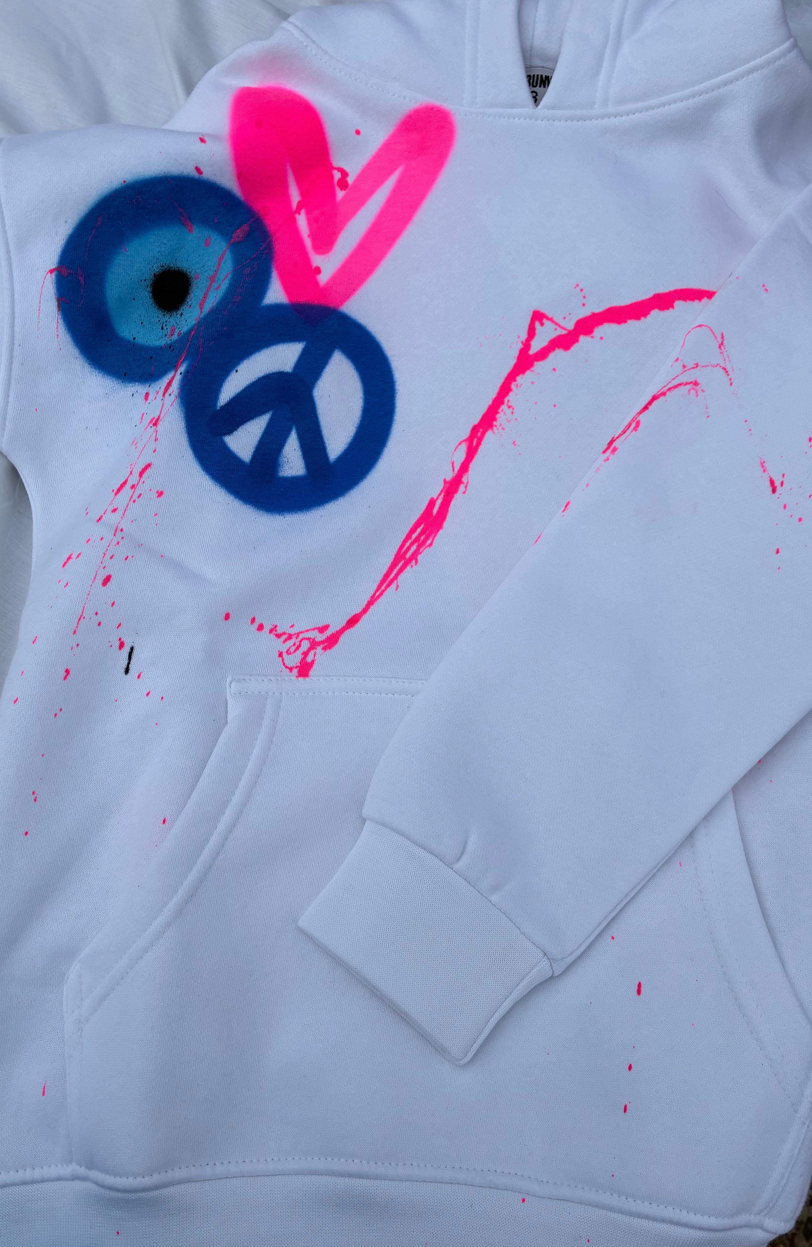 Pink Neon Heart Evil Eye Spray Painted Hoodie Kids