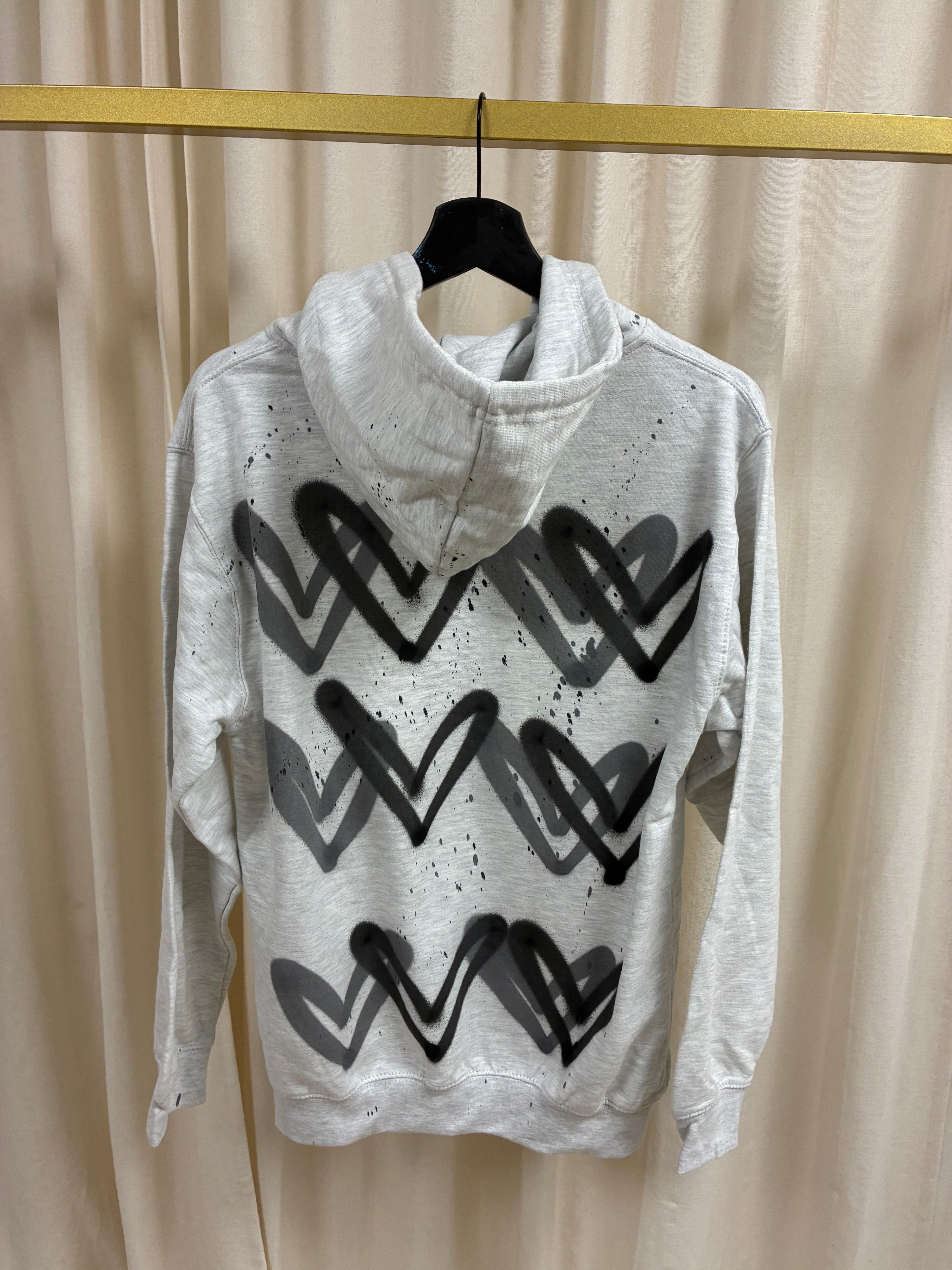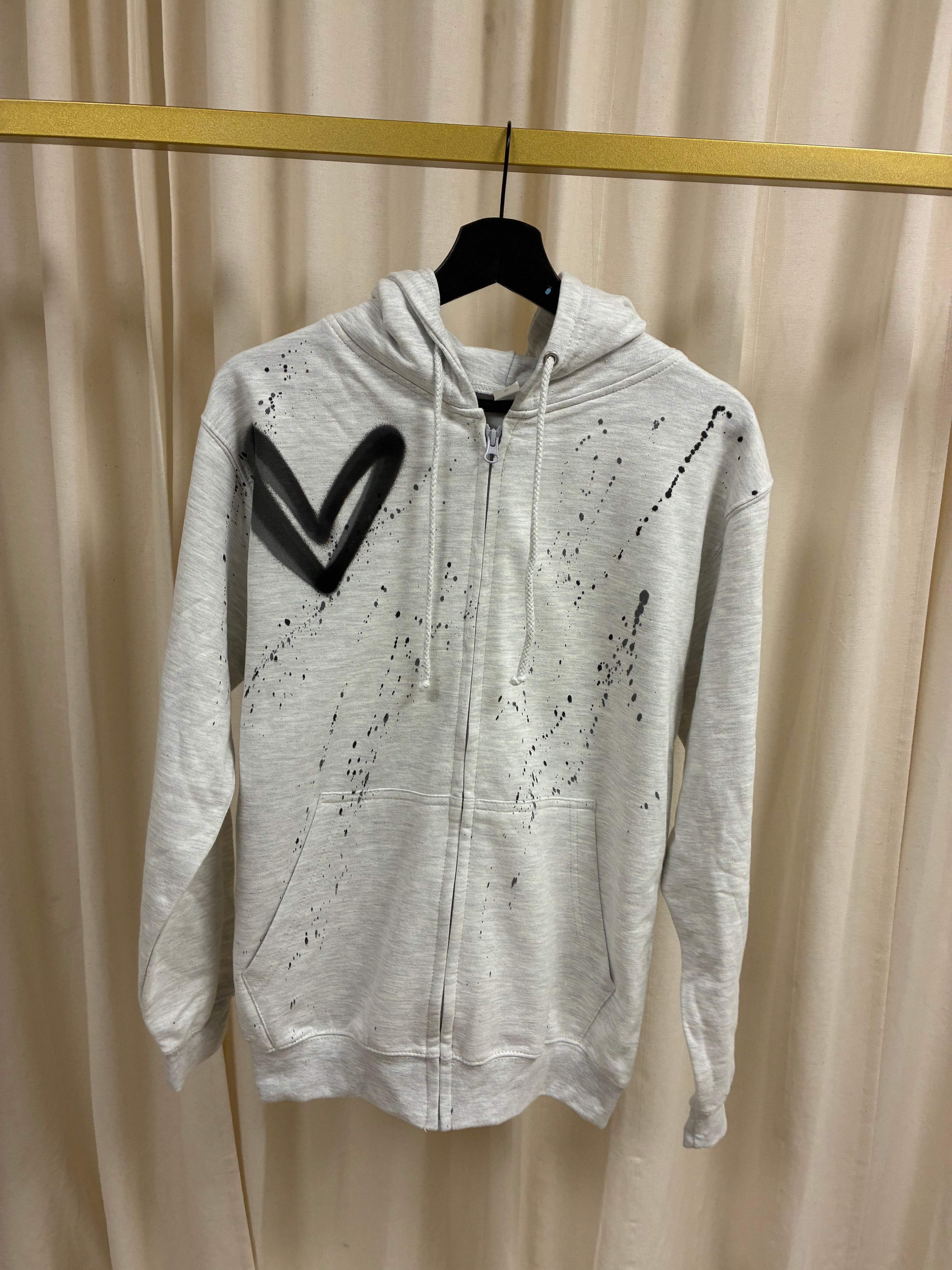 Charcoal Grey Hearts Spray Painted Zip Up Ash Grey Hoodie Adults