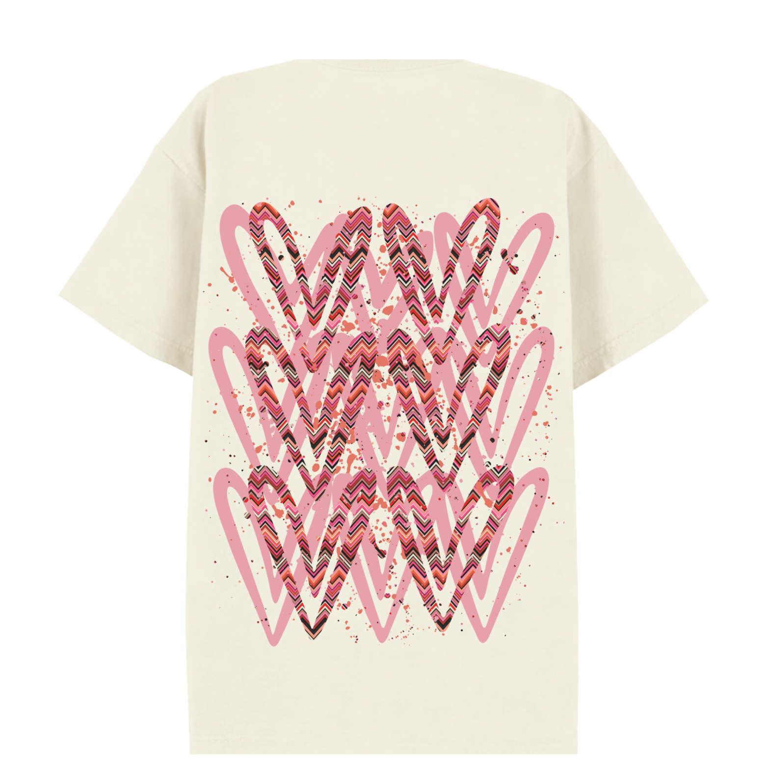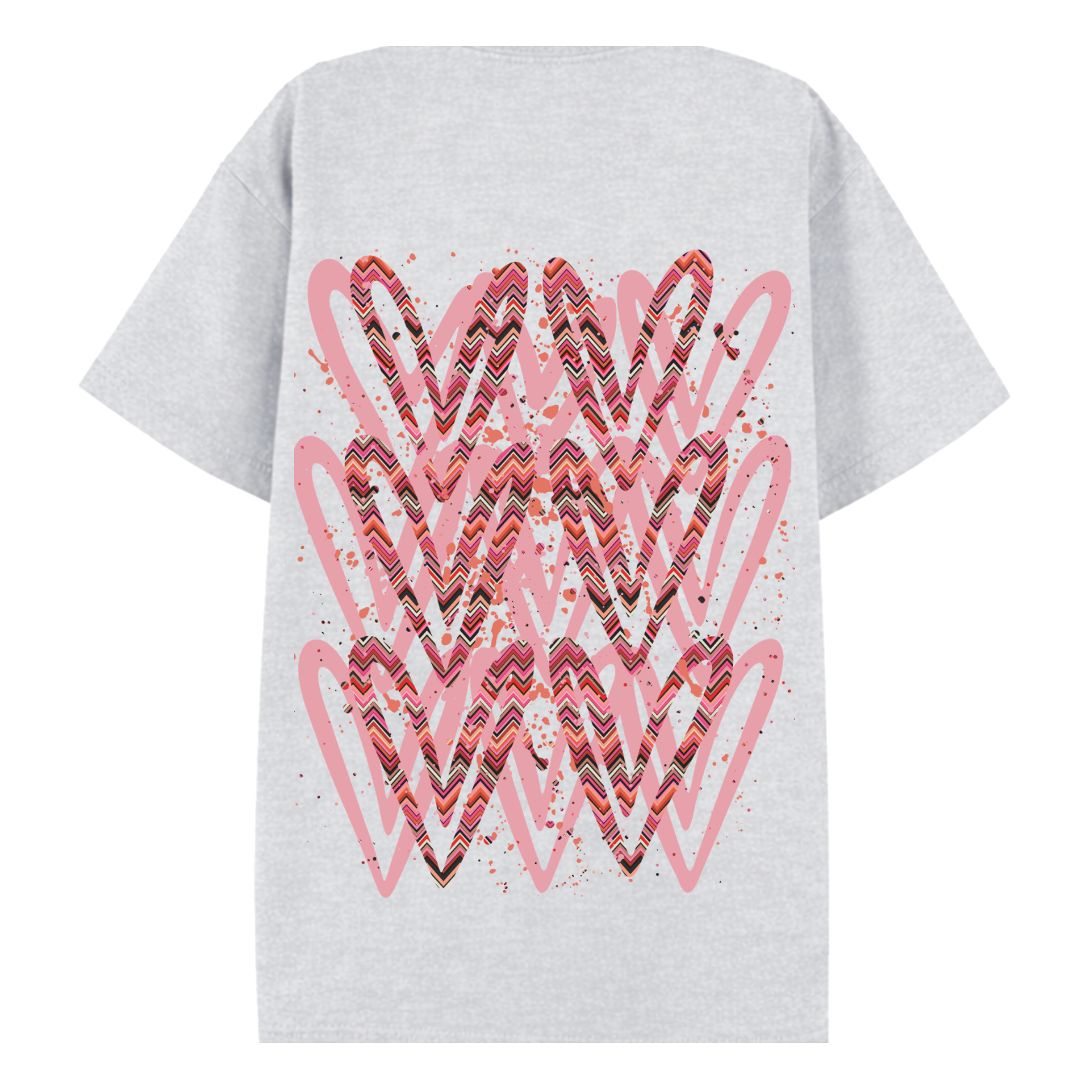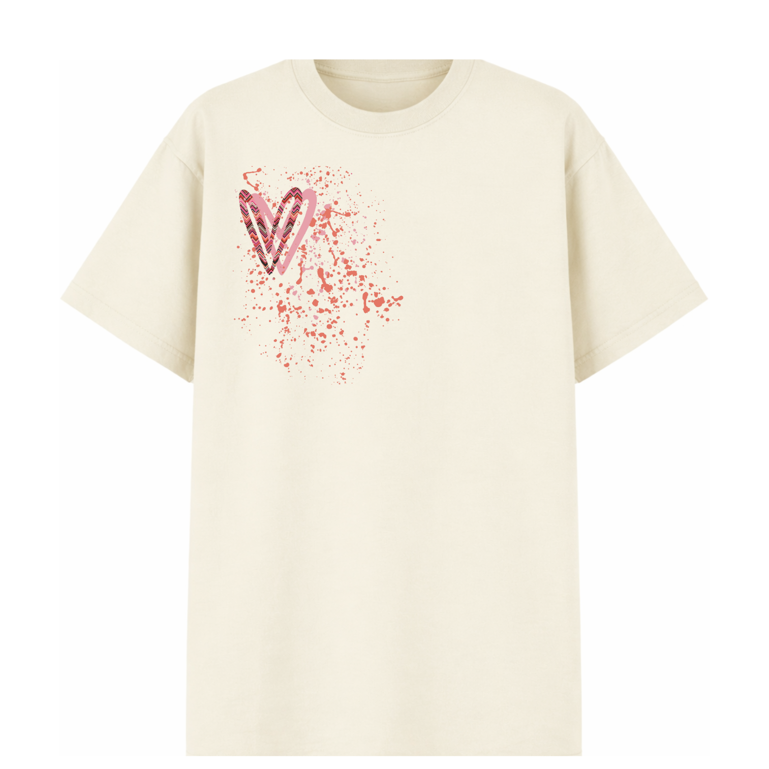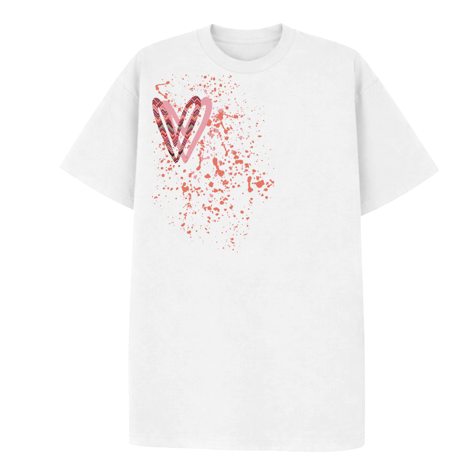 Coral Zig Zag Heart Printed T-shirt Adult