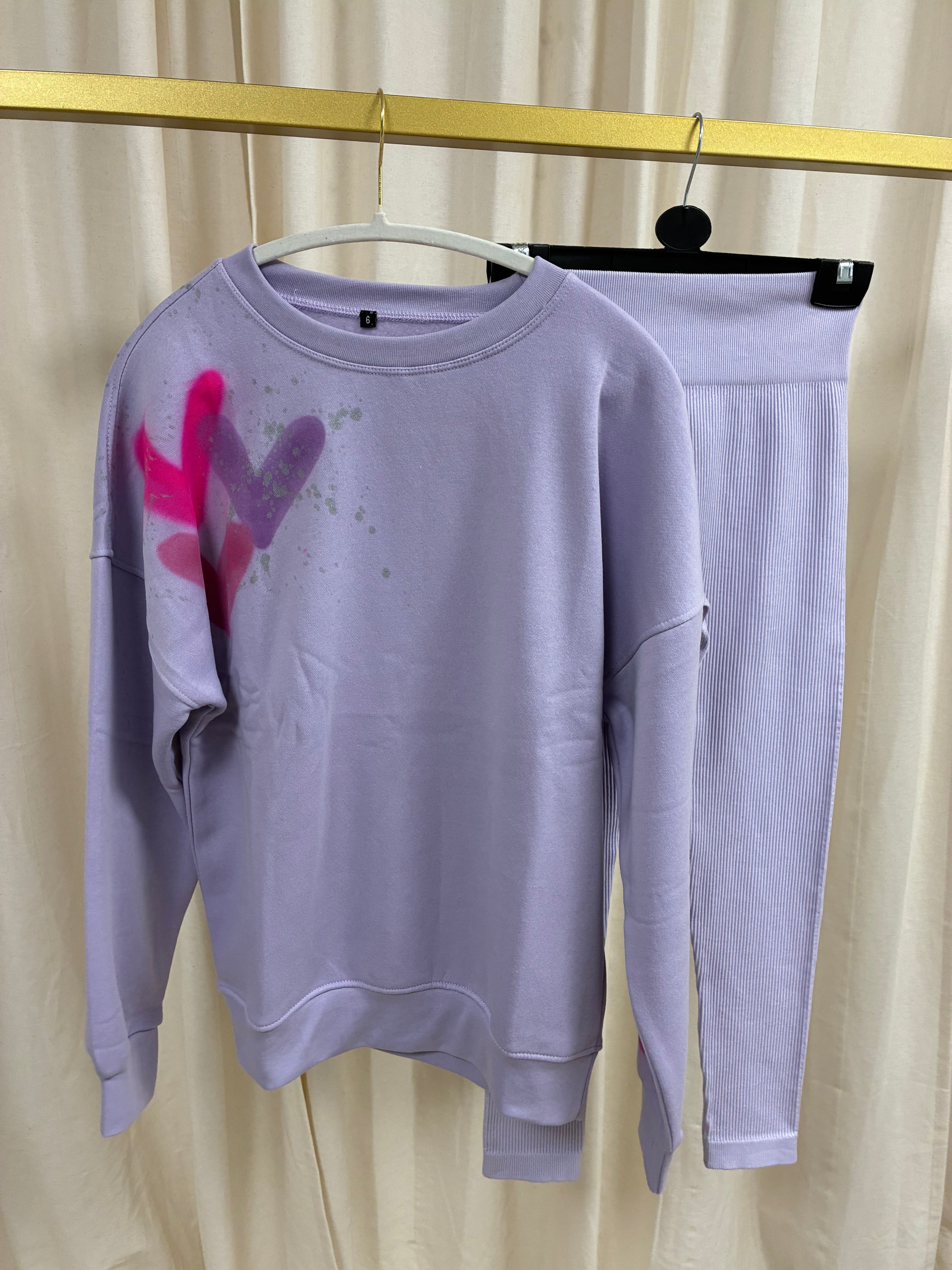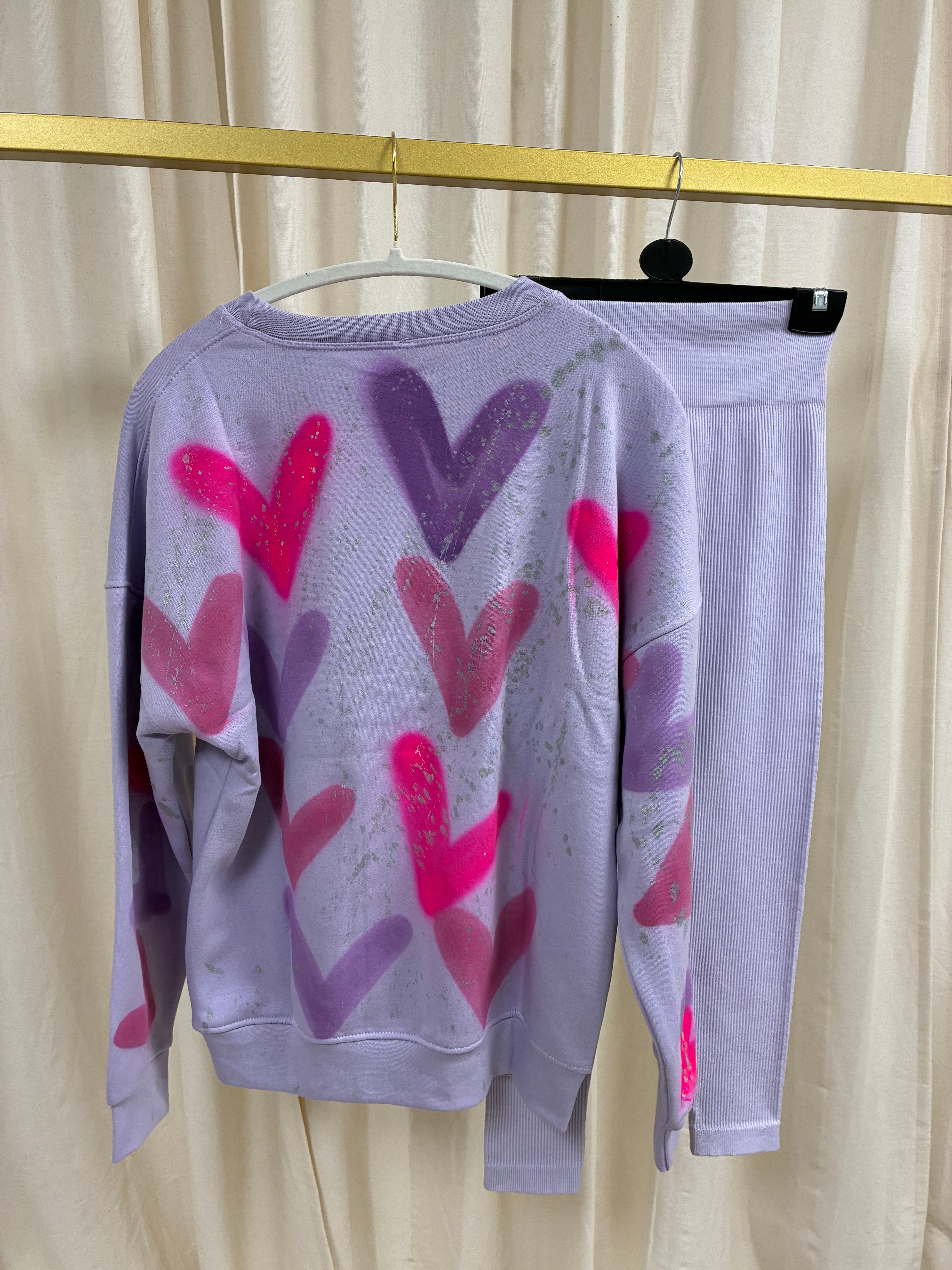 Lilac/Pink Heart Spray Painted Sweatshirt & Leggings Kids
