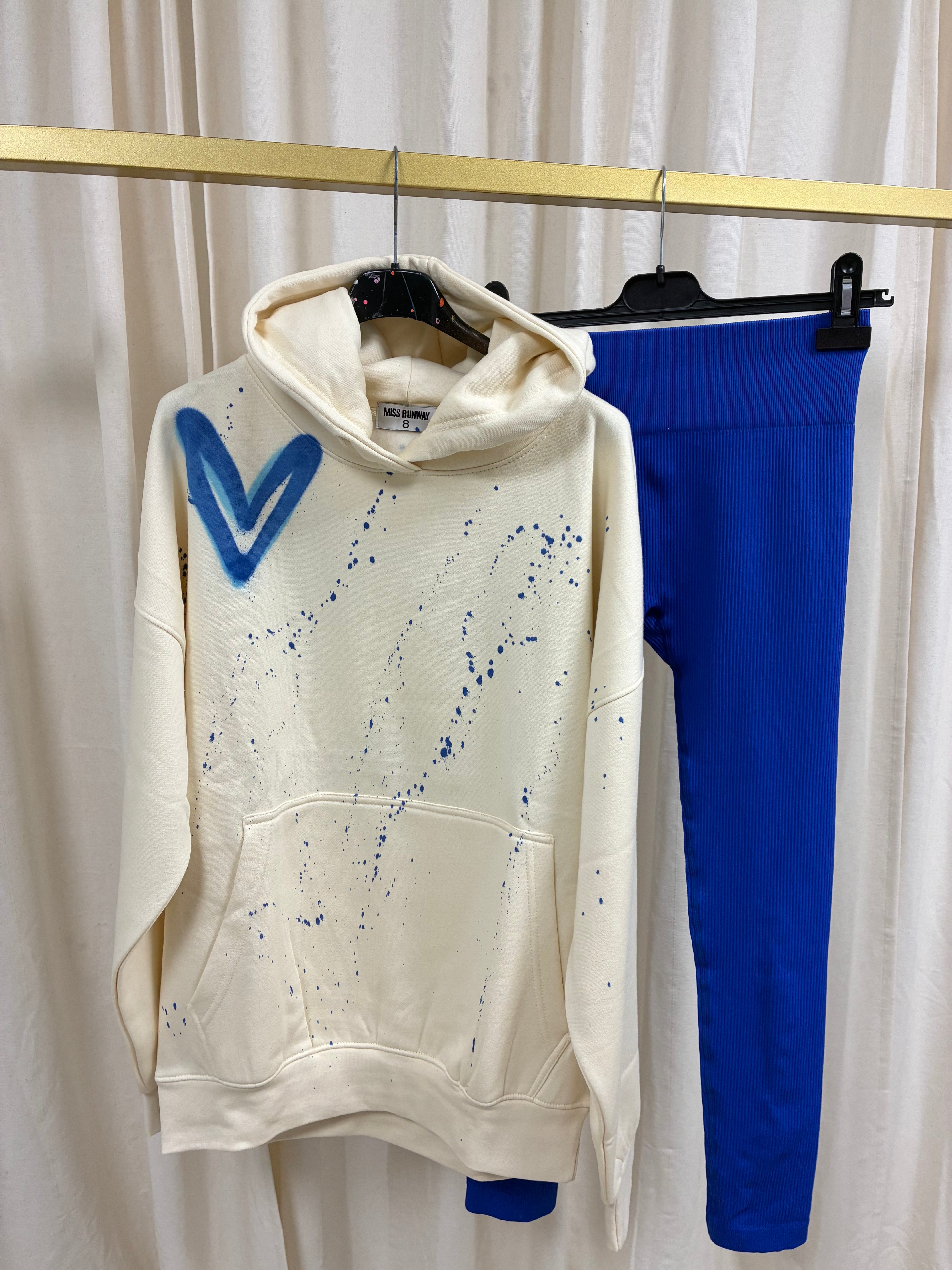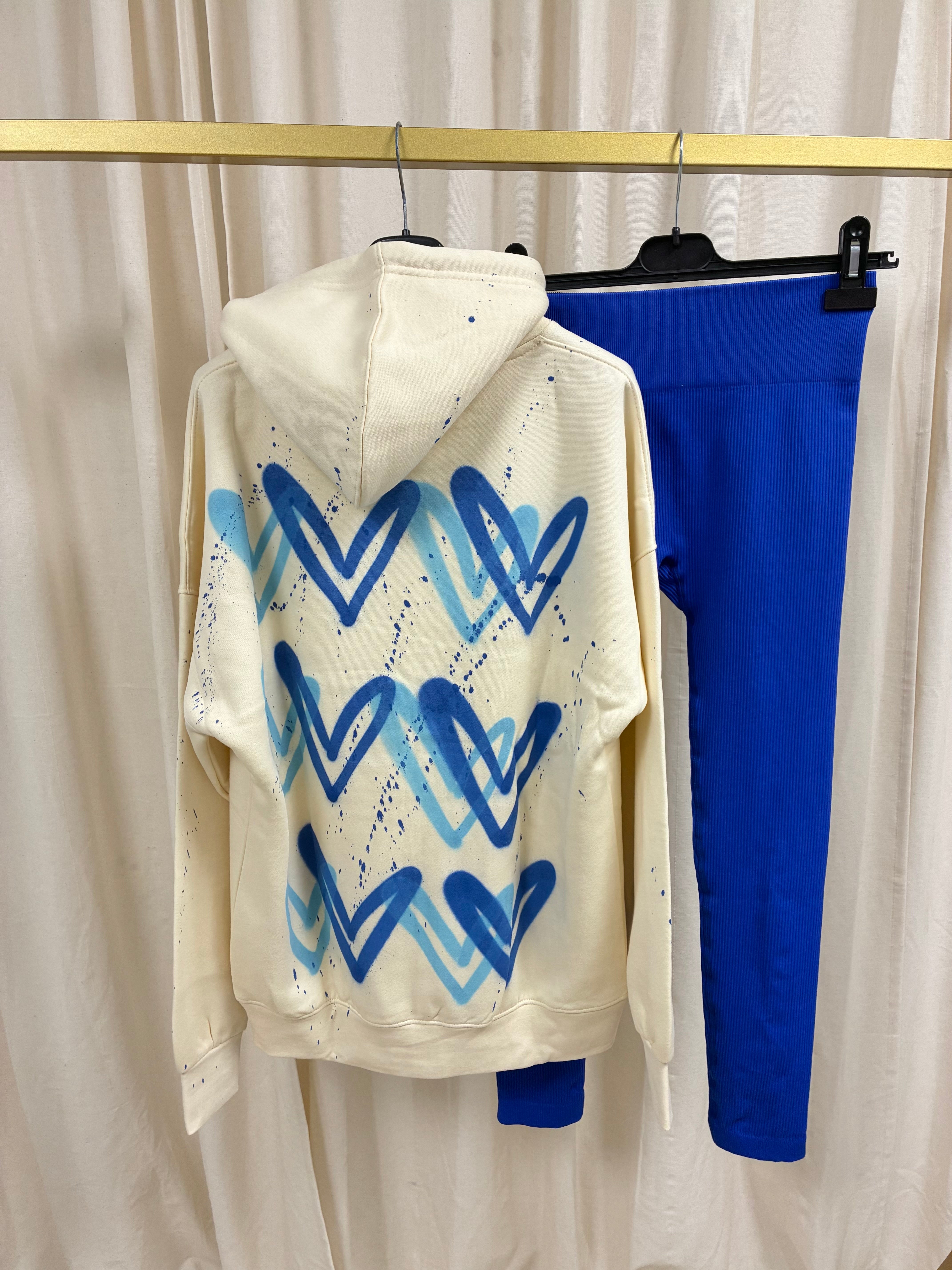 Royal Blue Heart Spray Painted Cream Hoodie & Leggings Kids