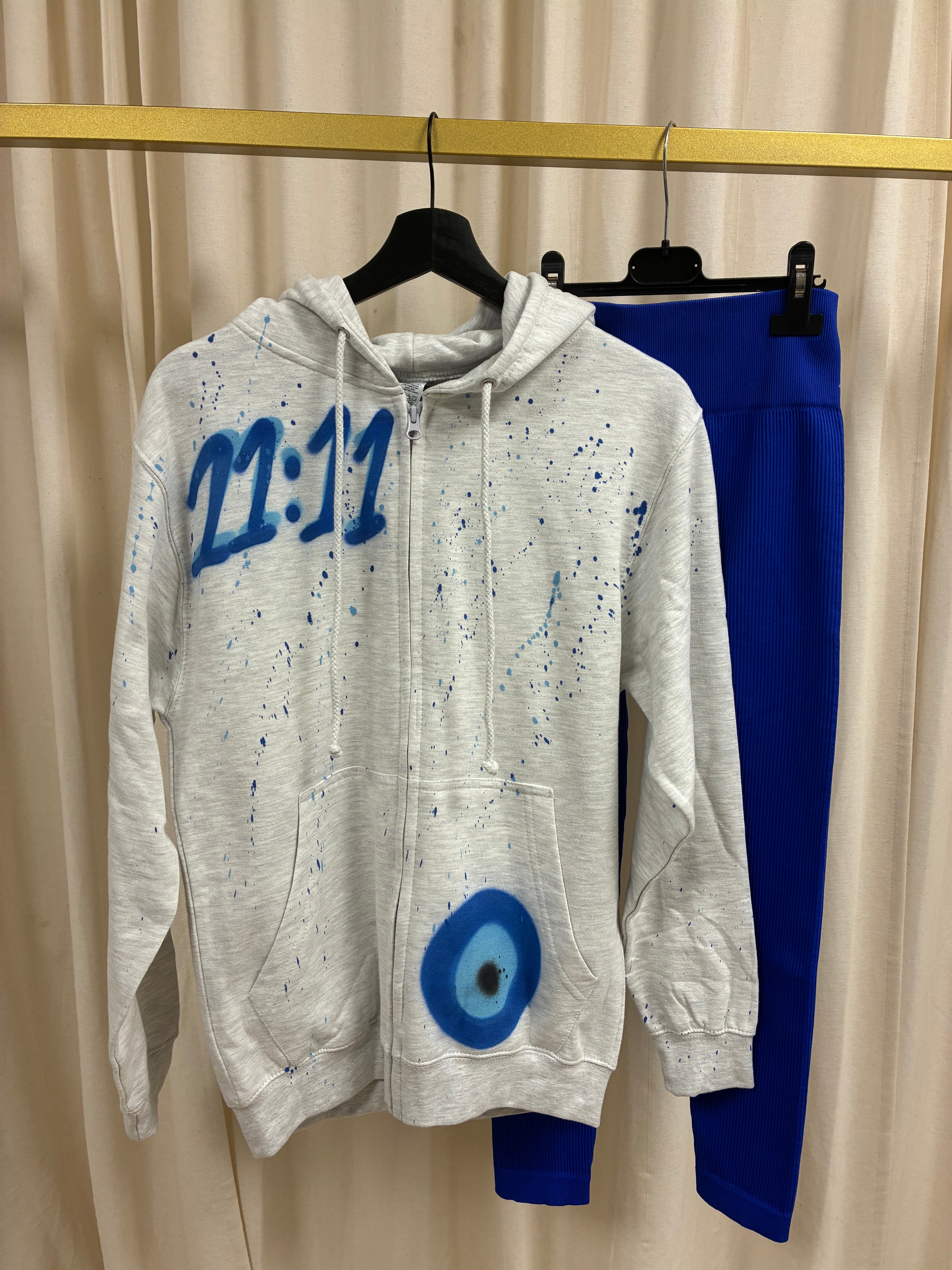 11:11 Spray Painted Zip Up Ash Grey Hoodie & Leggings Kids