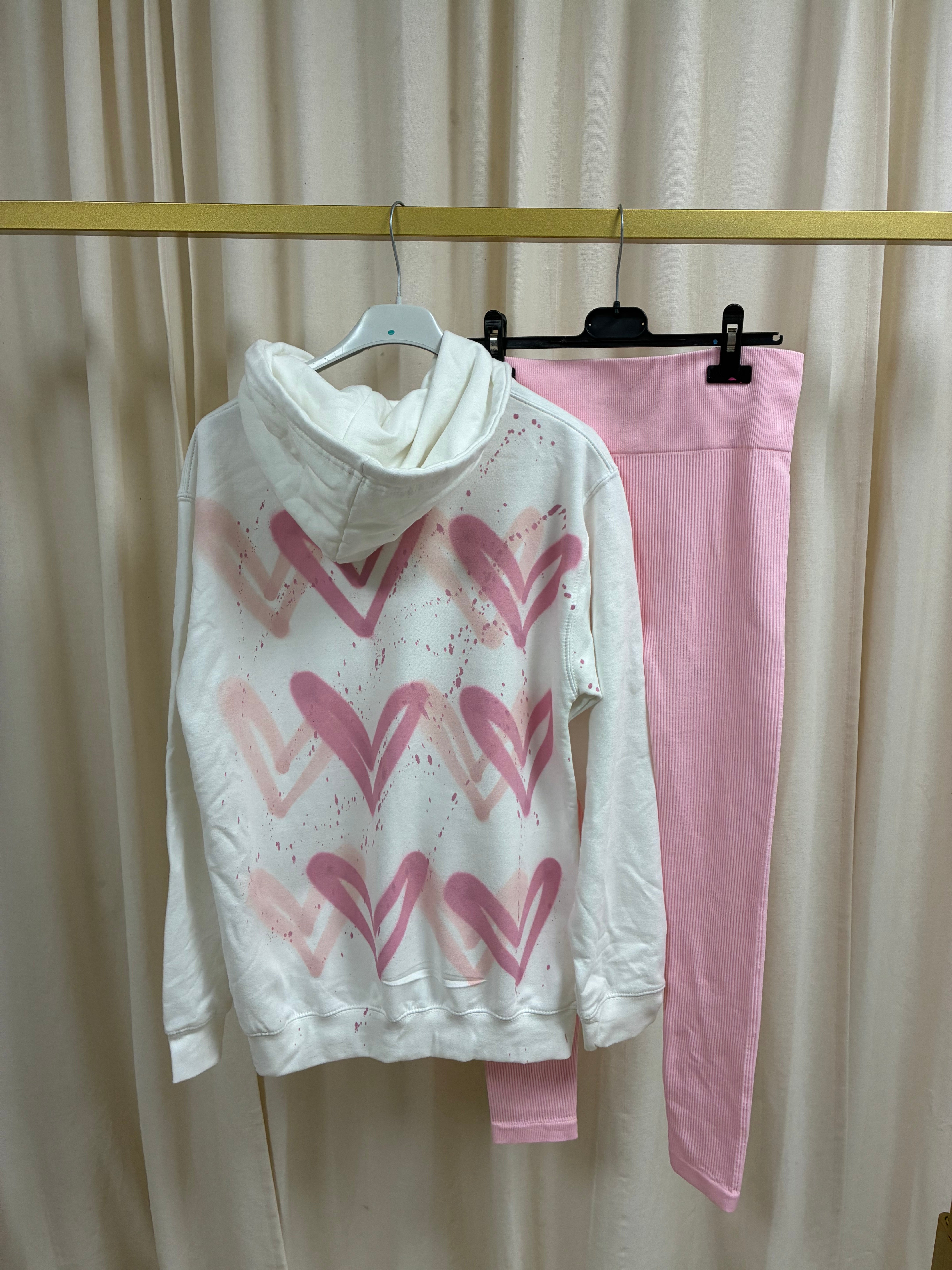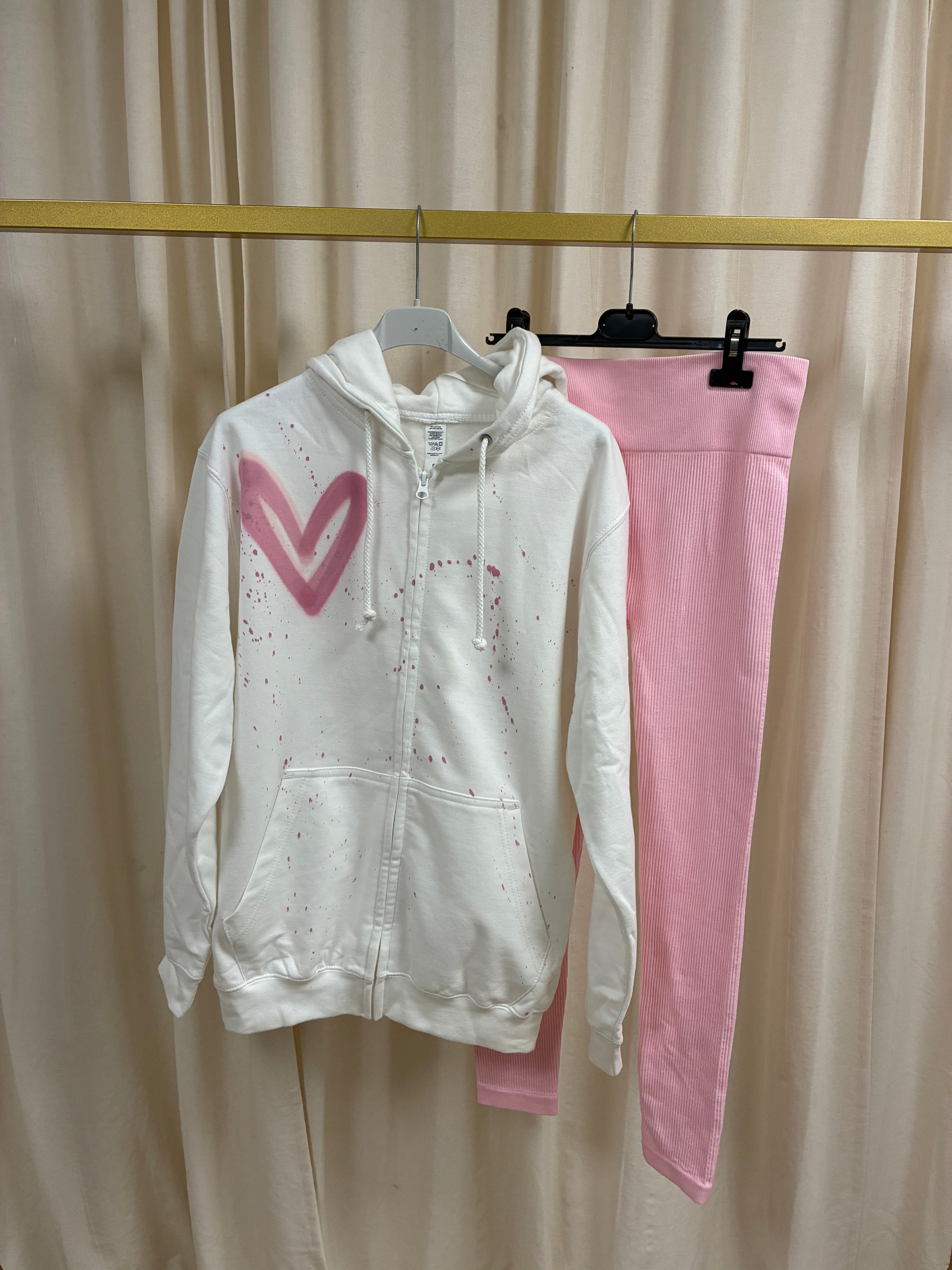 Pink Hearts Spray Painted Zip Up Hoodie & Leggings Adults