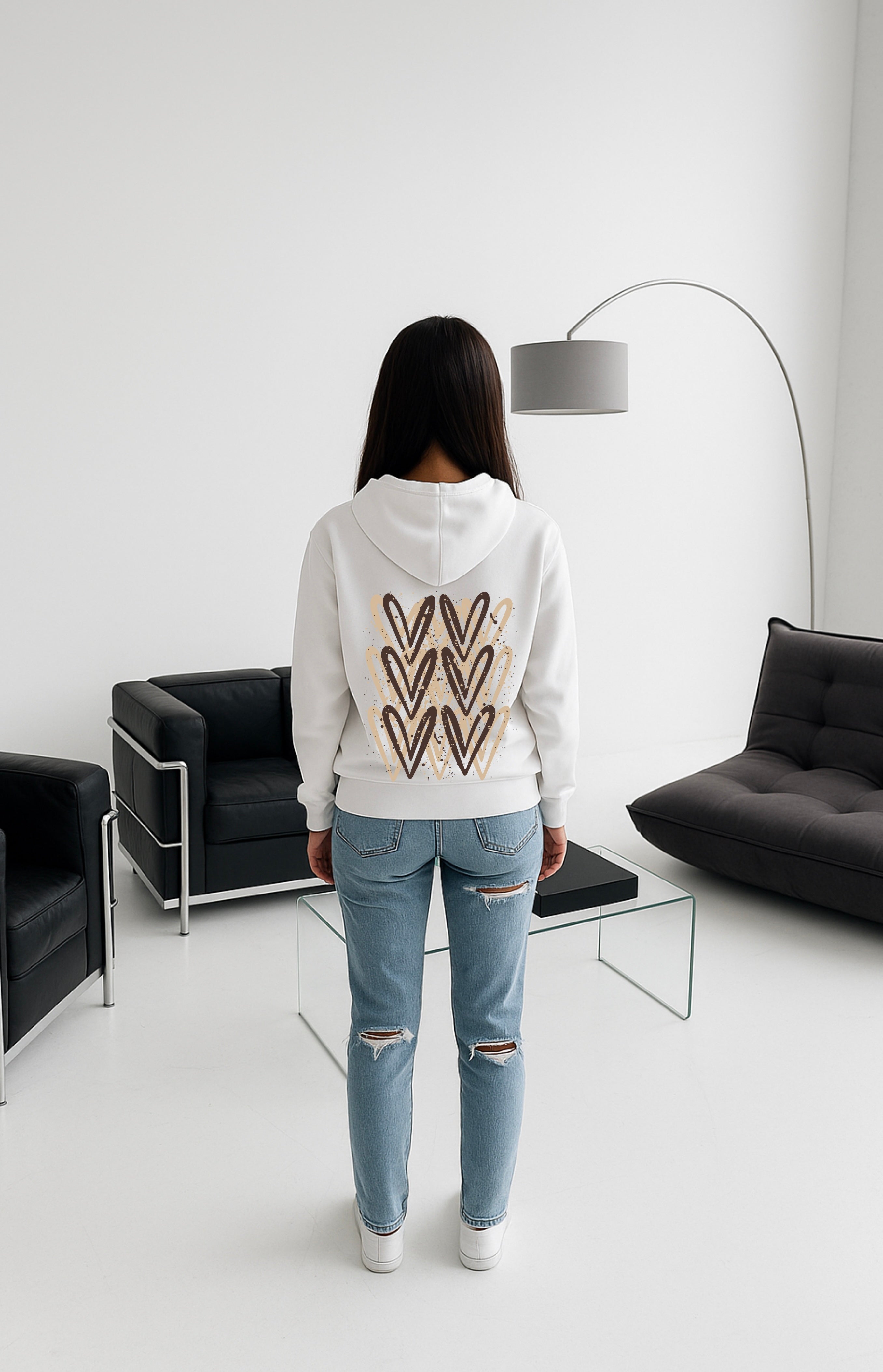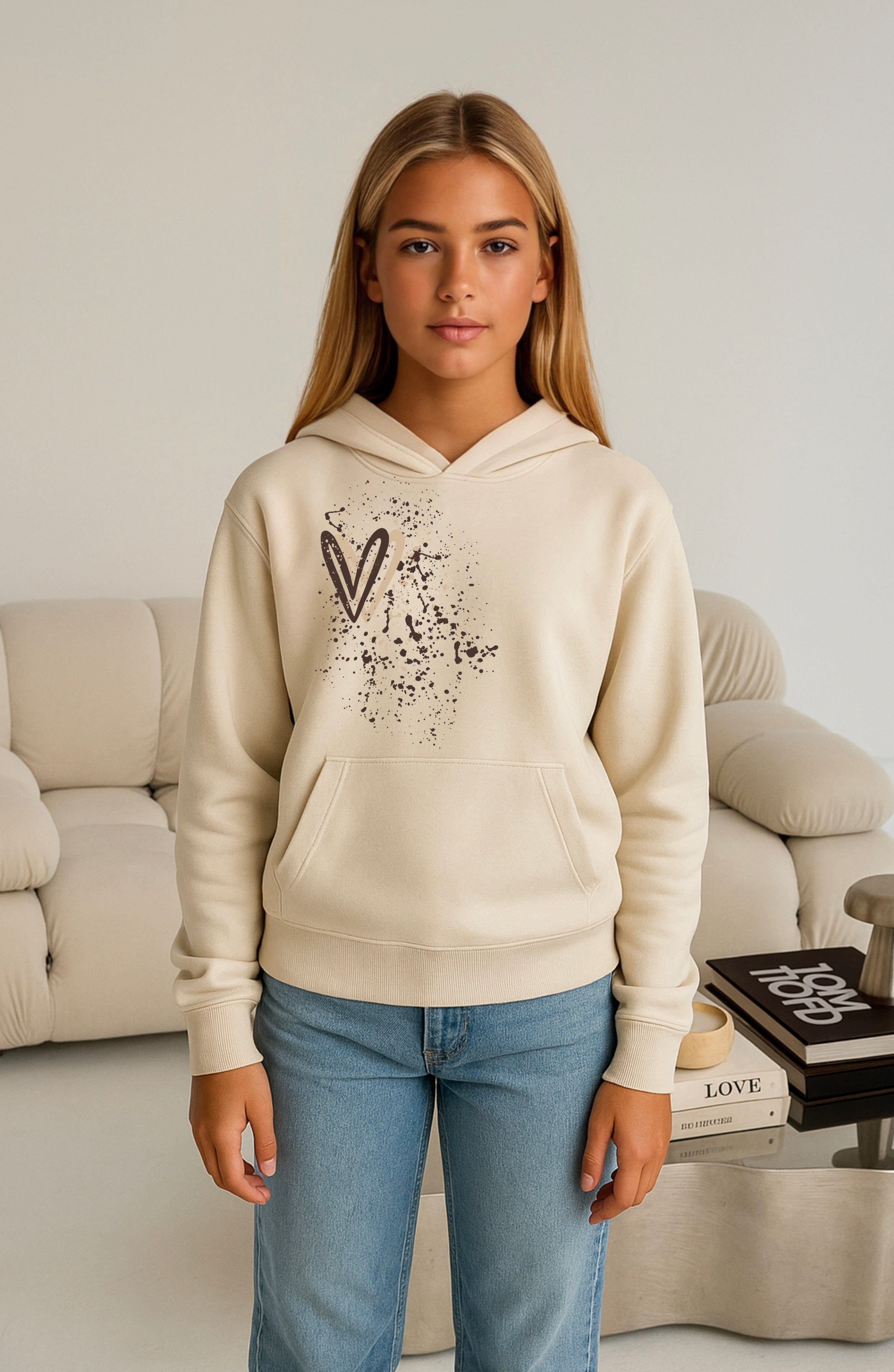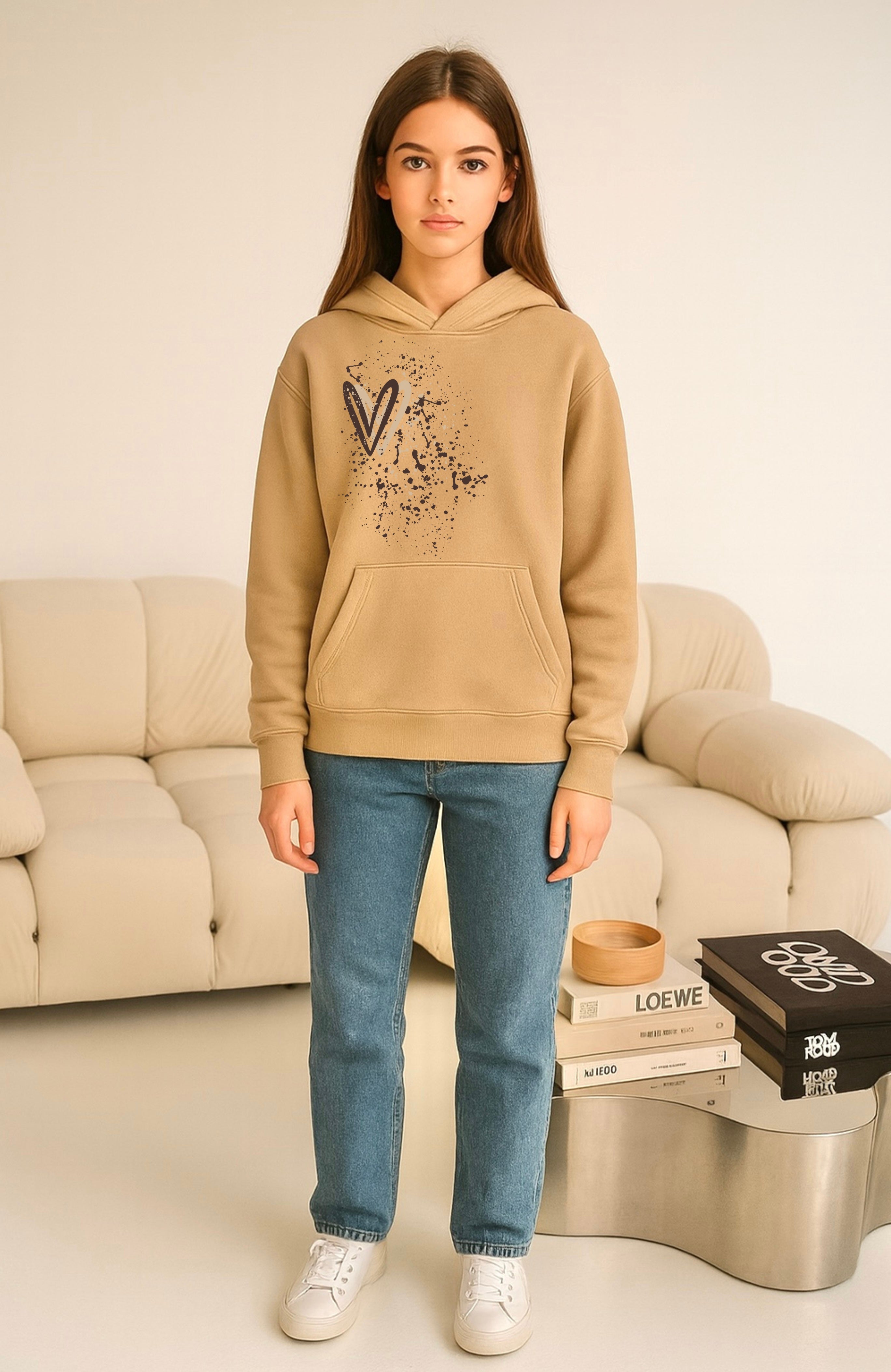 Beige/Brown Heart Printed Hoodie