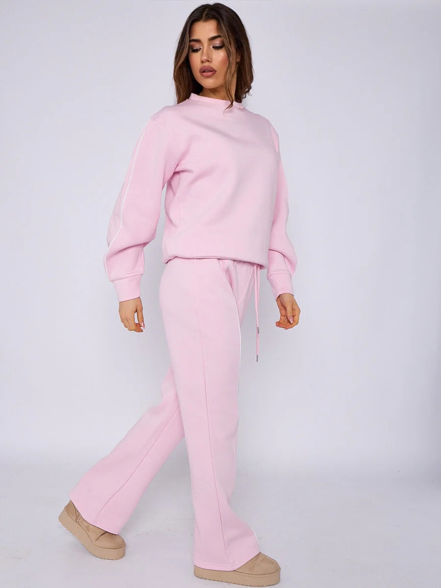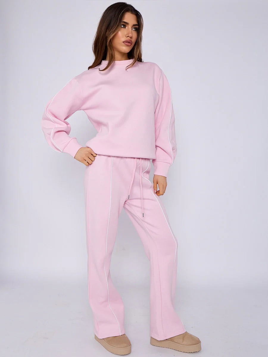 Sleeve Piping Sweatshirt & Jogger Set Long Sleeve Round Neck Piping Detail Wide Leg Elasticated Waist Co-ordinate 50% Cotton &...