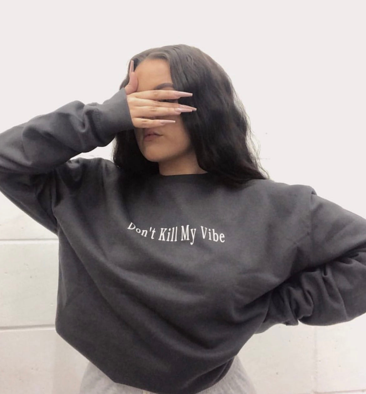 Product form Don't Kill My Vibe Sweatshirt The perfect addition to your casual wardrobe. £35.00 Size Size chart XS (4-6) S (8-10) M (12-14) L (14-16) XL (16-18) XXL (20-22) XXXL (22-24) Quantity Add to cart Guaranteed secure & safe checkout.