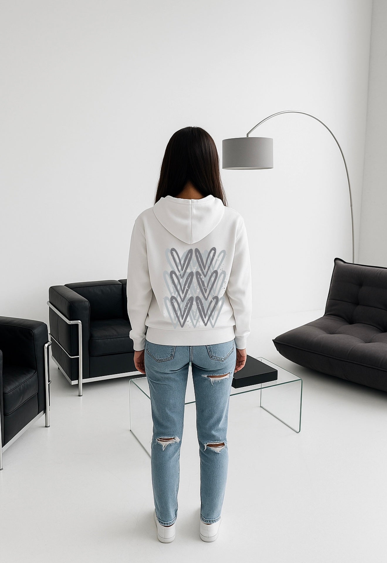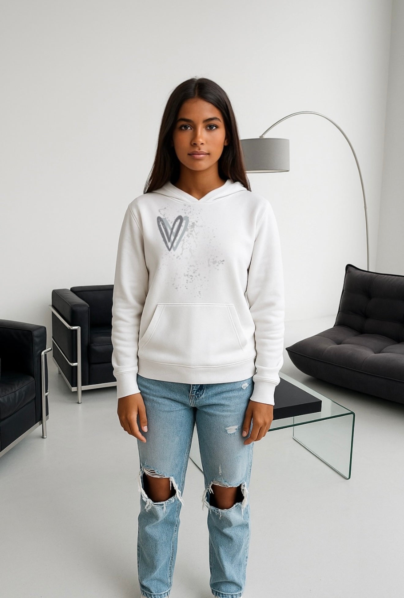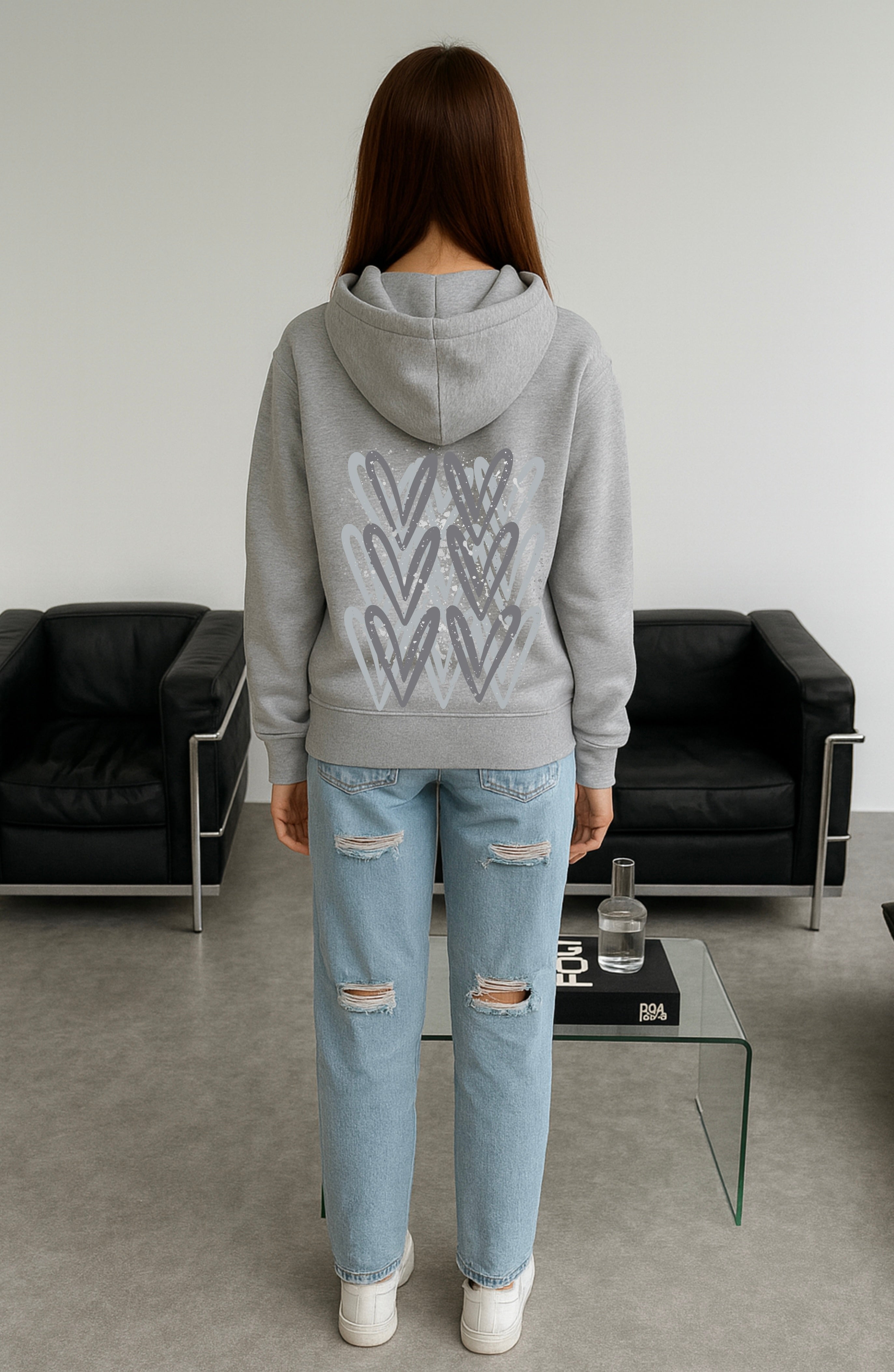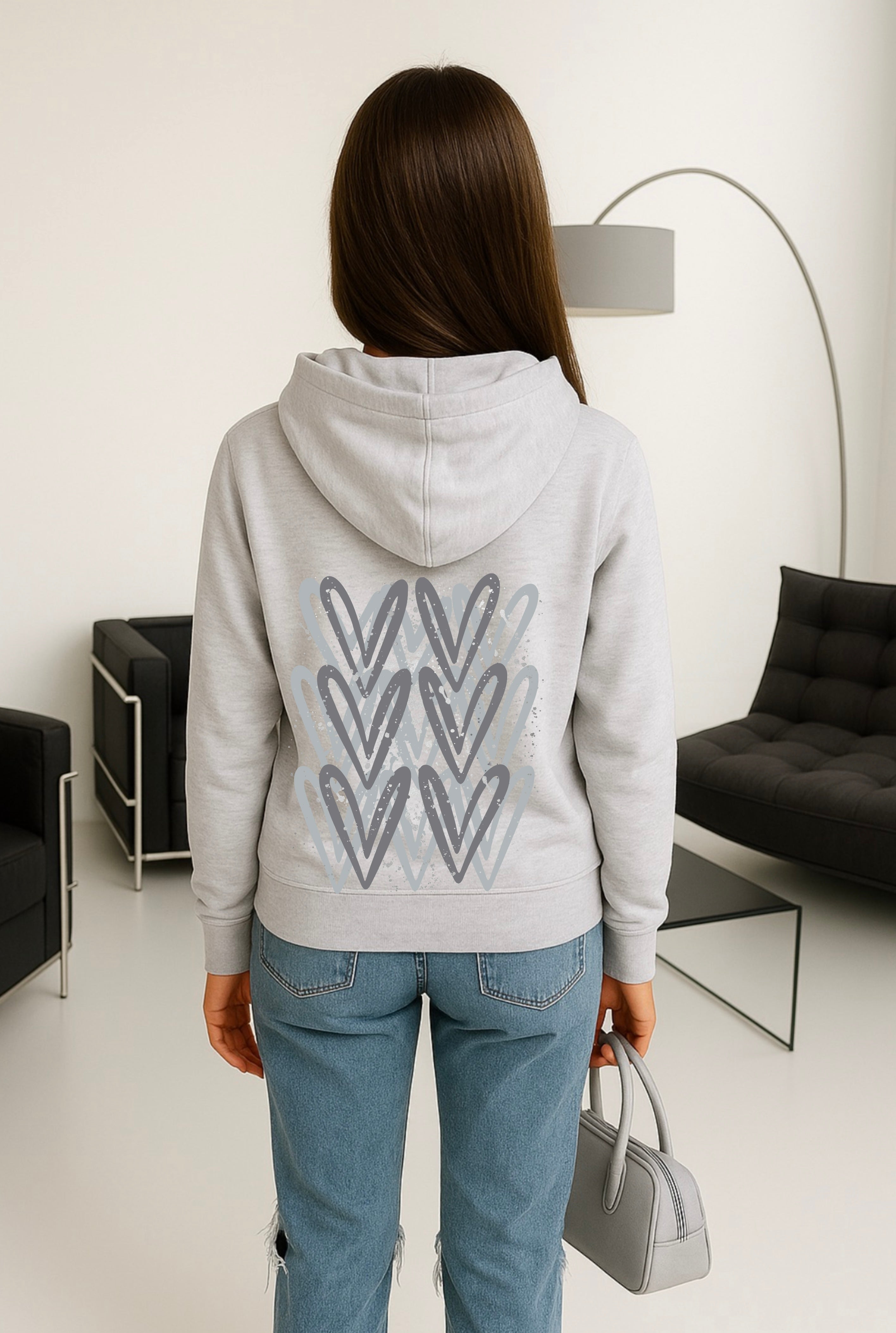 Grey Heart Printed Hoodie