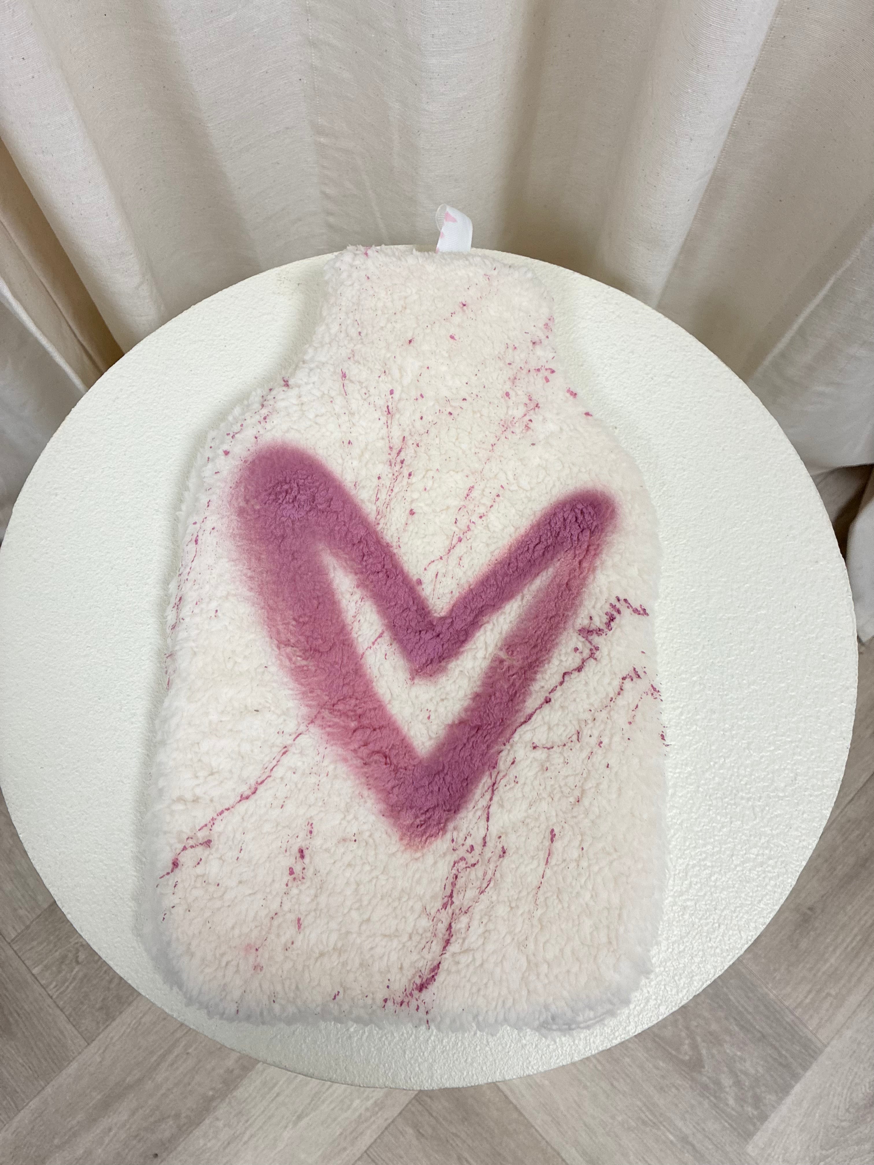 Crafted with precision, this hot water bottle features a distinctive pink heart design created through professional spray painting techniques. The durable rubber construction provides reliable heat retention for extended comfort, making it an ideal companion for cold evenings or therapeutic warmth. The artistic spray-painted finish adds a contemporary aesthetic to your home wellness routine. Perfect for soothing aches, enhancing relaxation, or simply enjoying cosy moments. A functional piece that combines practical heating benefits with modern design appeal.
