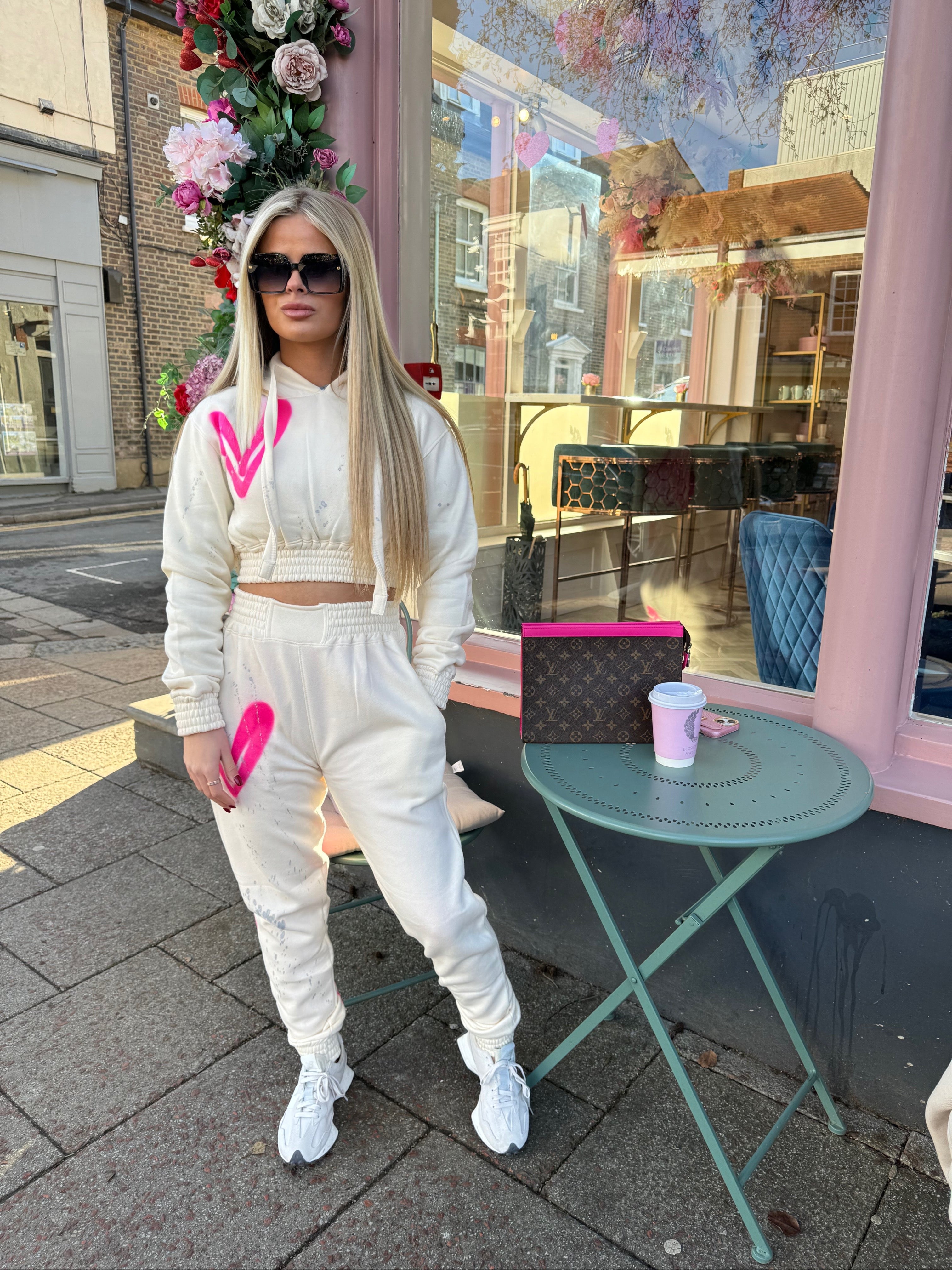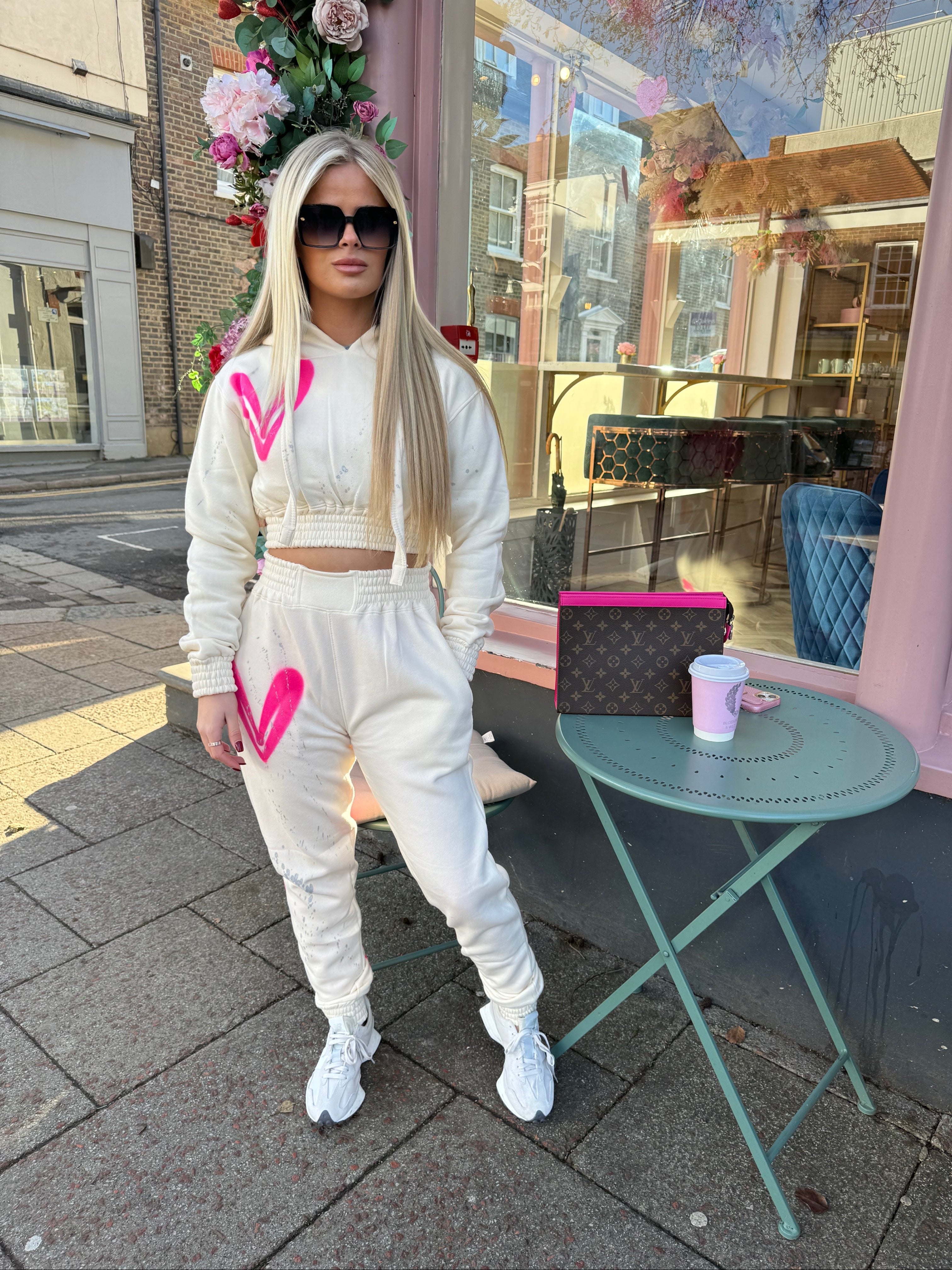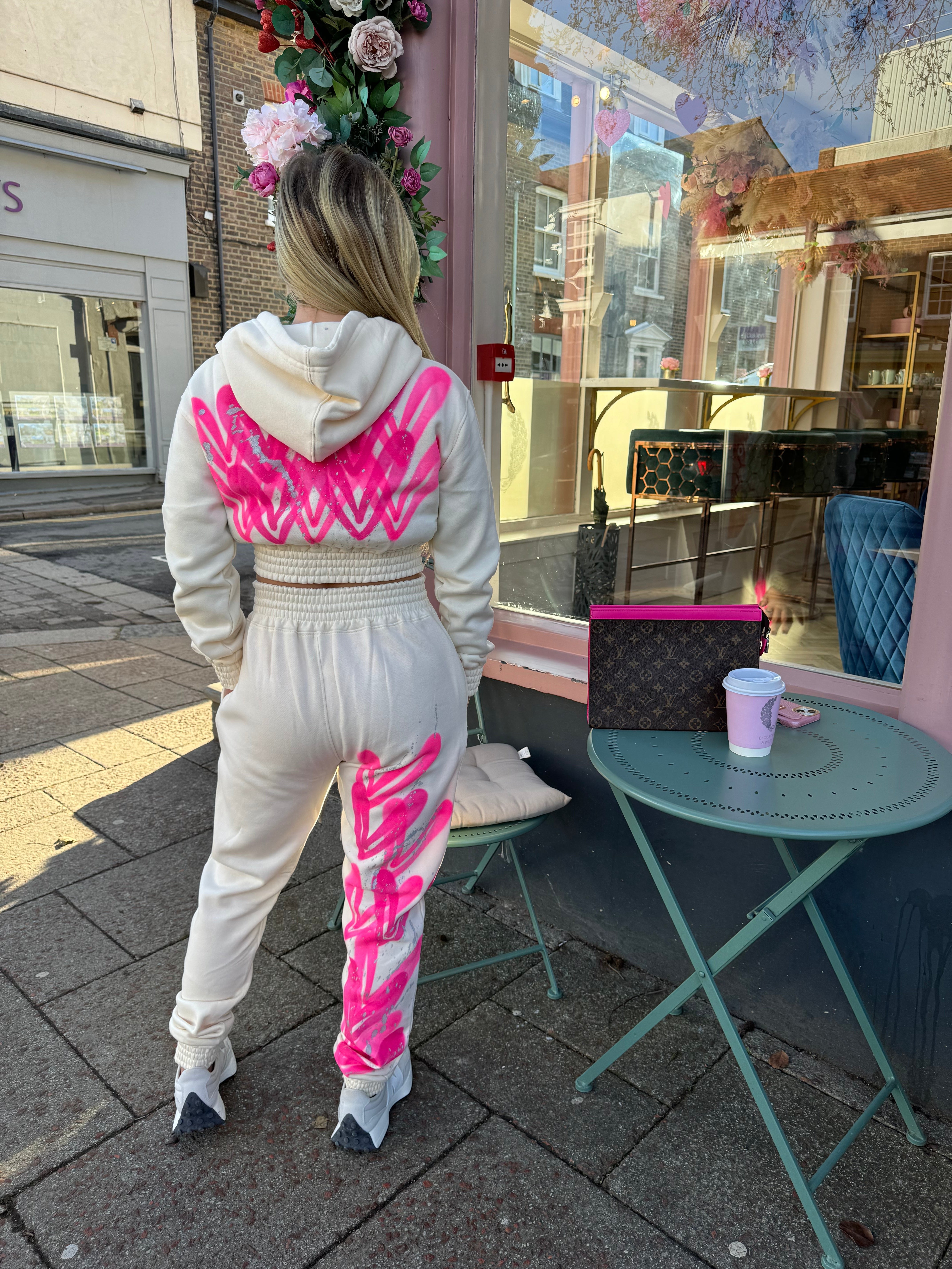 Hot Pink Hearts Spray Painted Cropped Tracksuit Kids